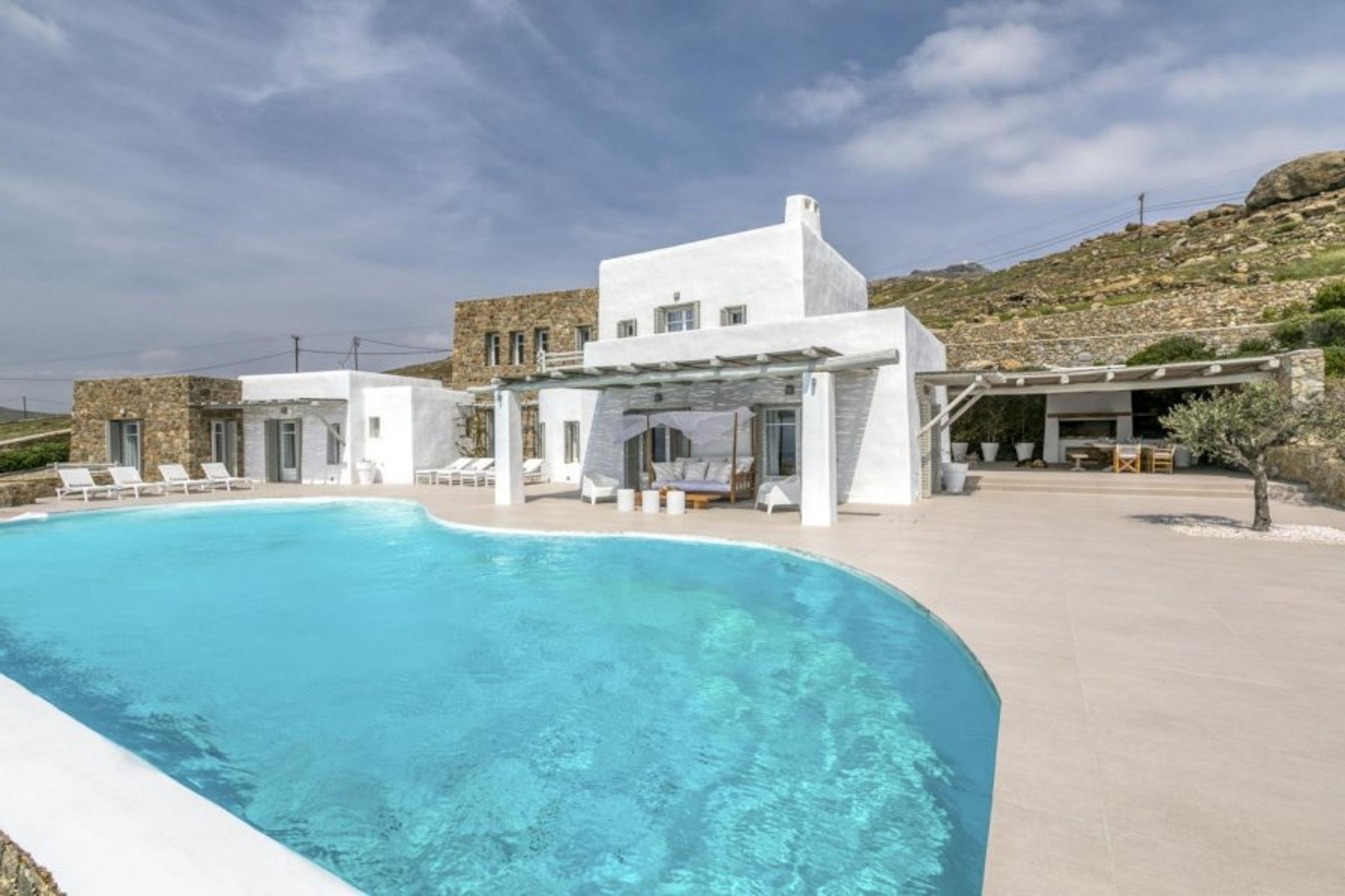 The villa has a private swimming pool with views of the surroundings, as well as sun loungers, making it the ideal place to unwind!