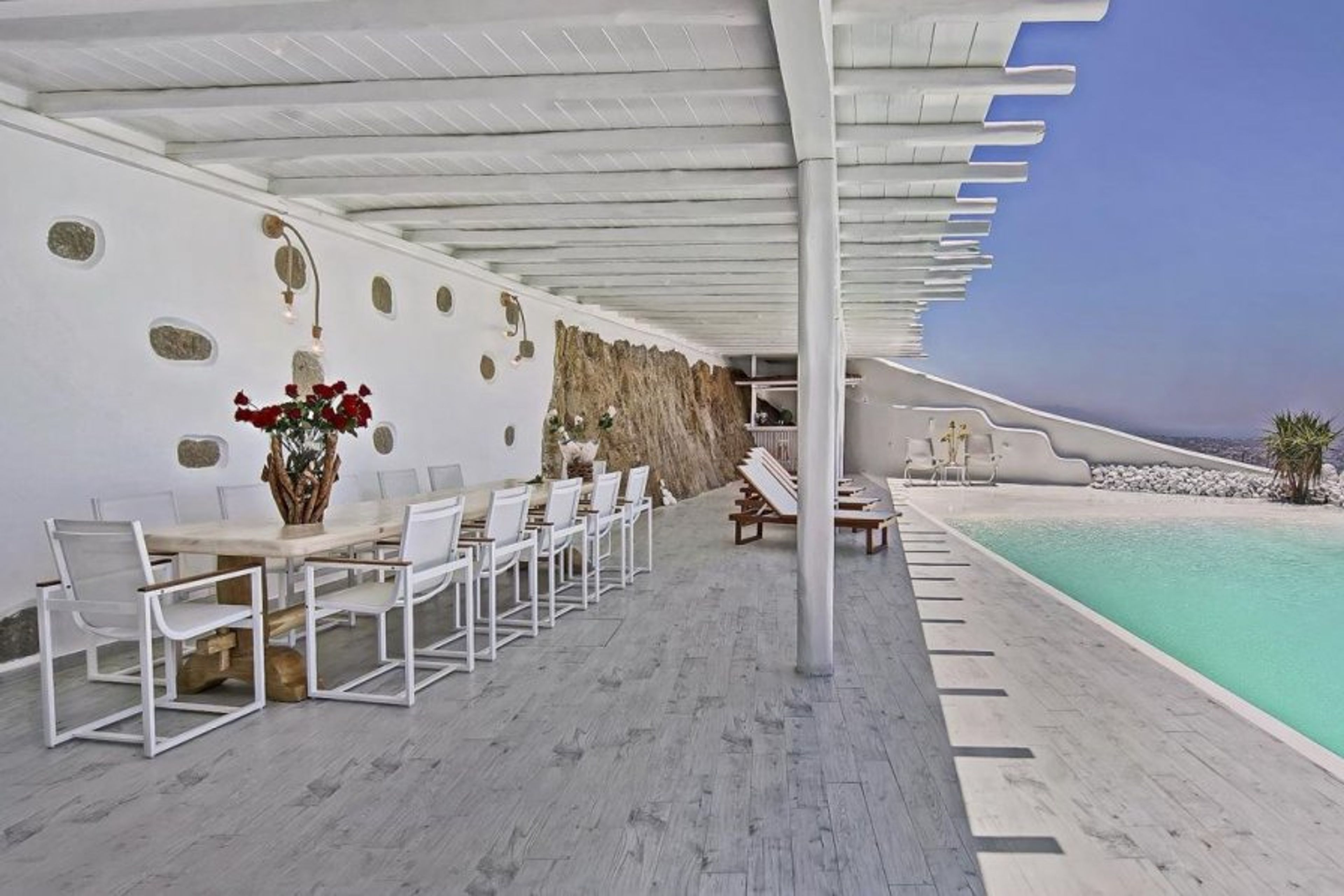 Villa is a luxury property located on a rocky hill in Fanari, the island's northernmost location, 8.3 kilometers from Mykonos town and less than a 15-minute drive from the beach!