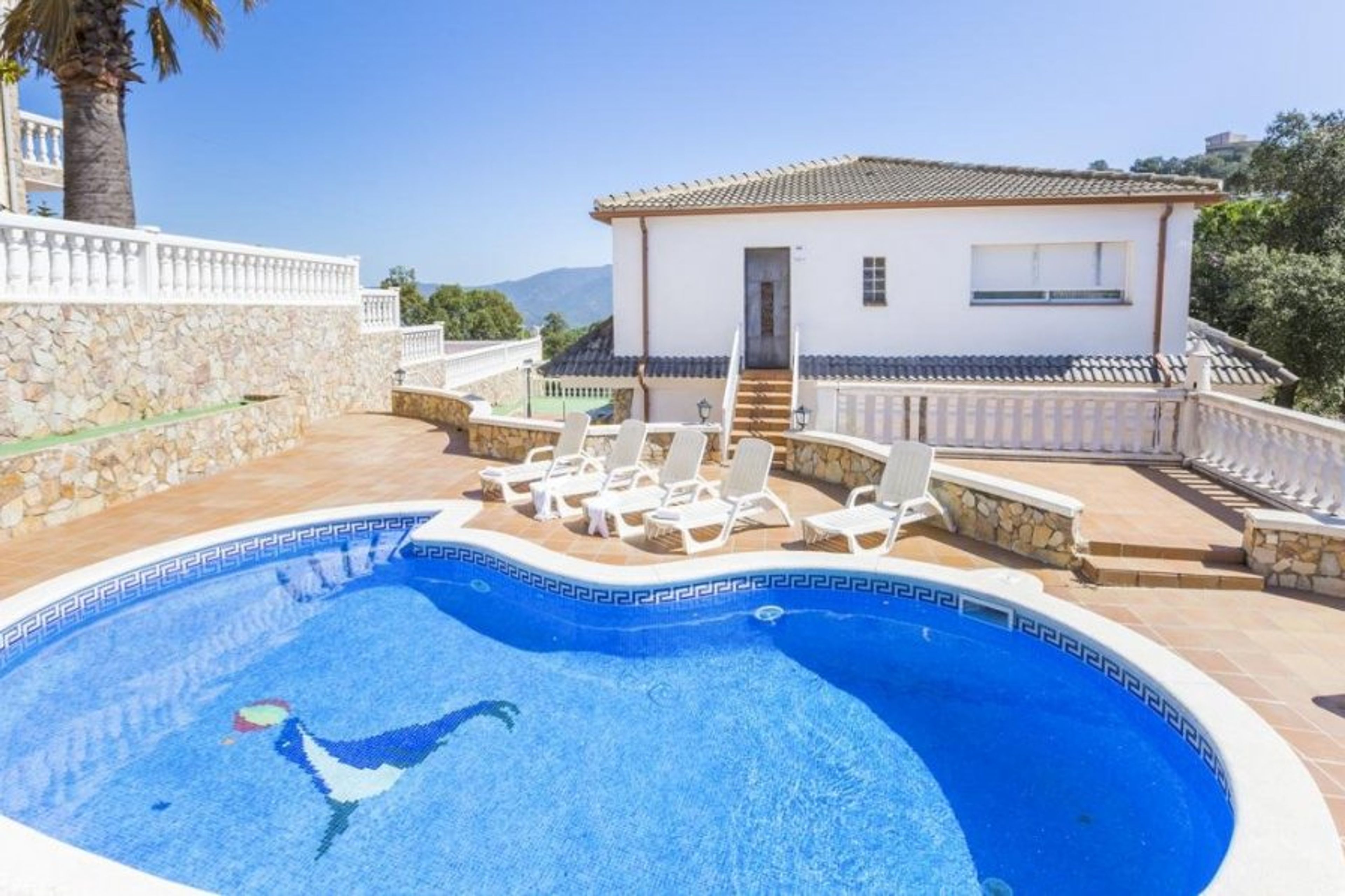 This is a traditional house (200 m2 + 800 m2 for plot) located 3,5 km from the beach Cala Canyelles and 6 km from the centre of Tossa de Mar, (4 Km from the centre of Lloret de Mar), in the quiet residential area of Serra Brava. There are 6 bedrooms and 4 bathrooms, and it can accommodate up to 14 people