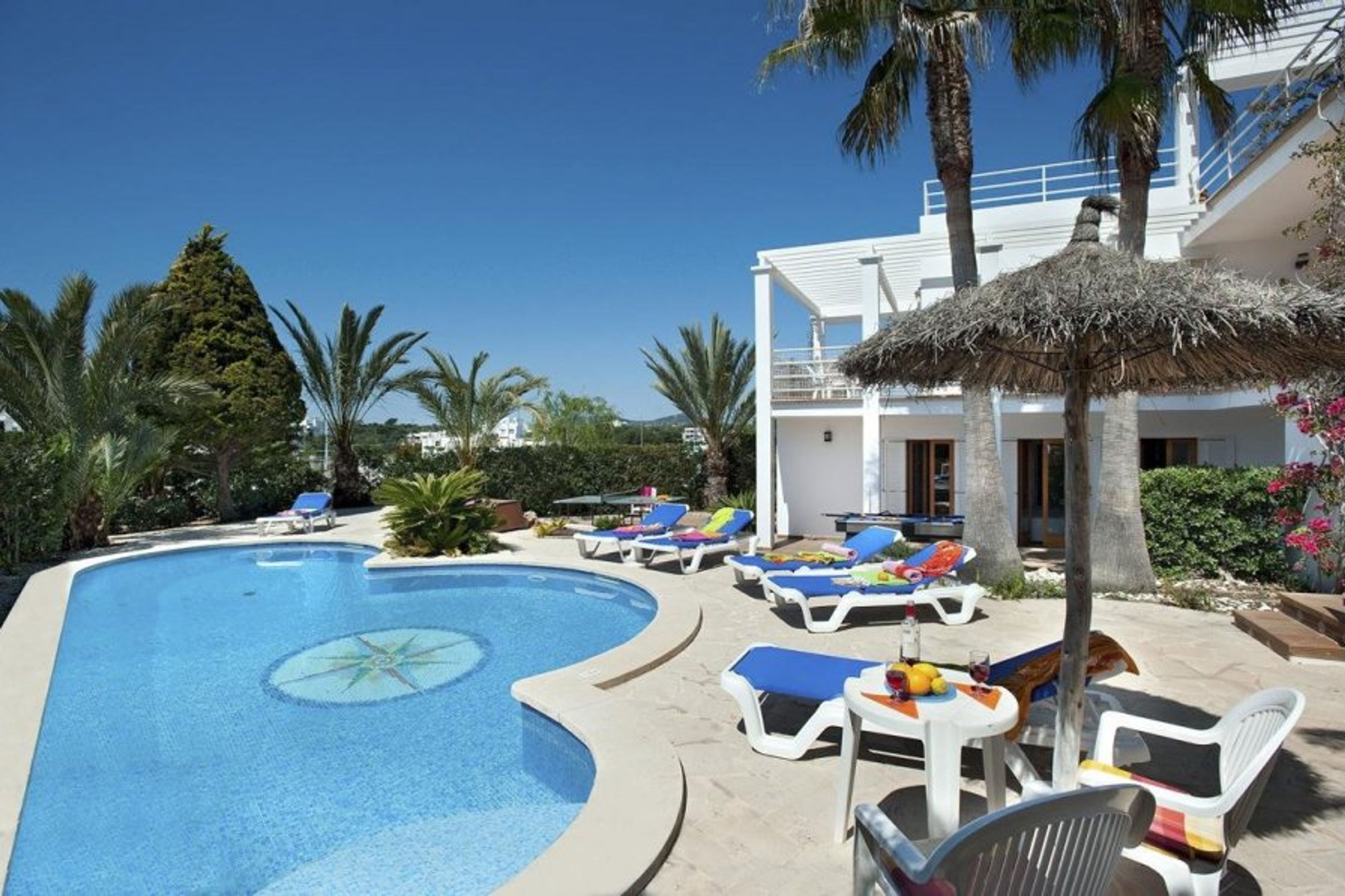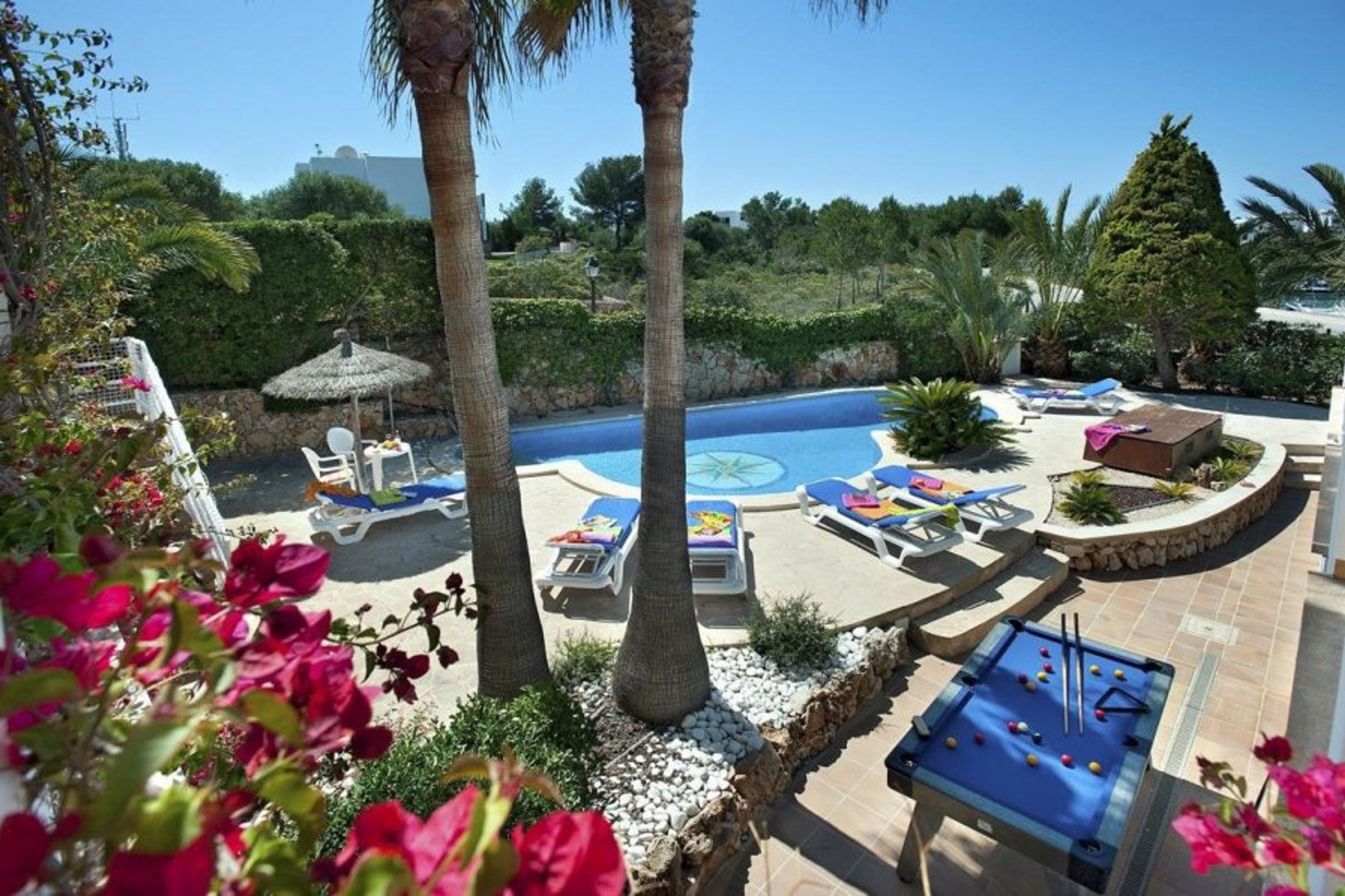 The 8-person villa with a private pool is available for rent close to the Cala Dor marina.
