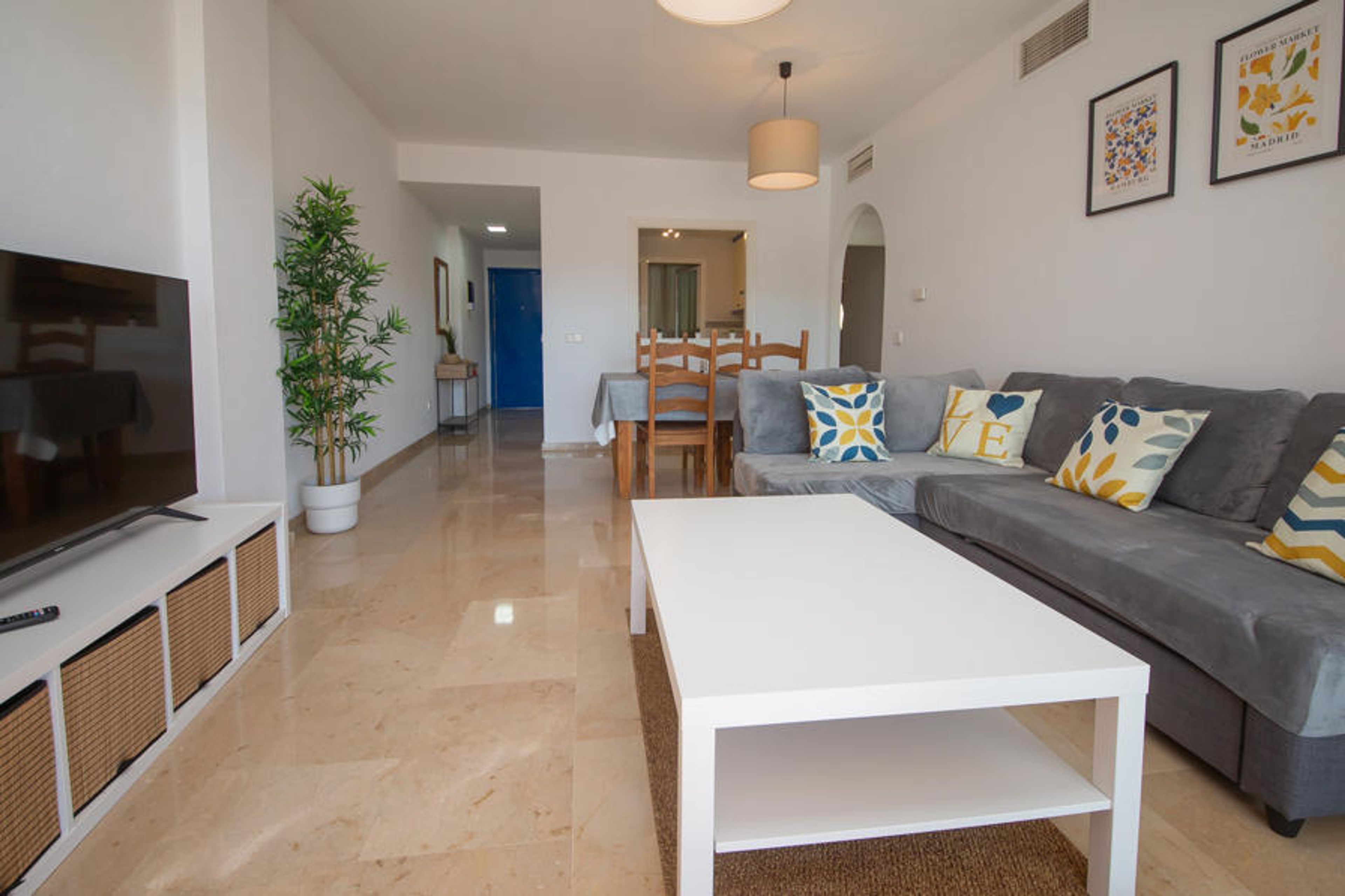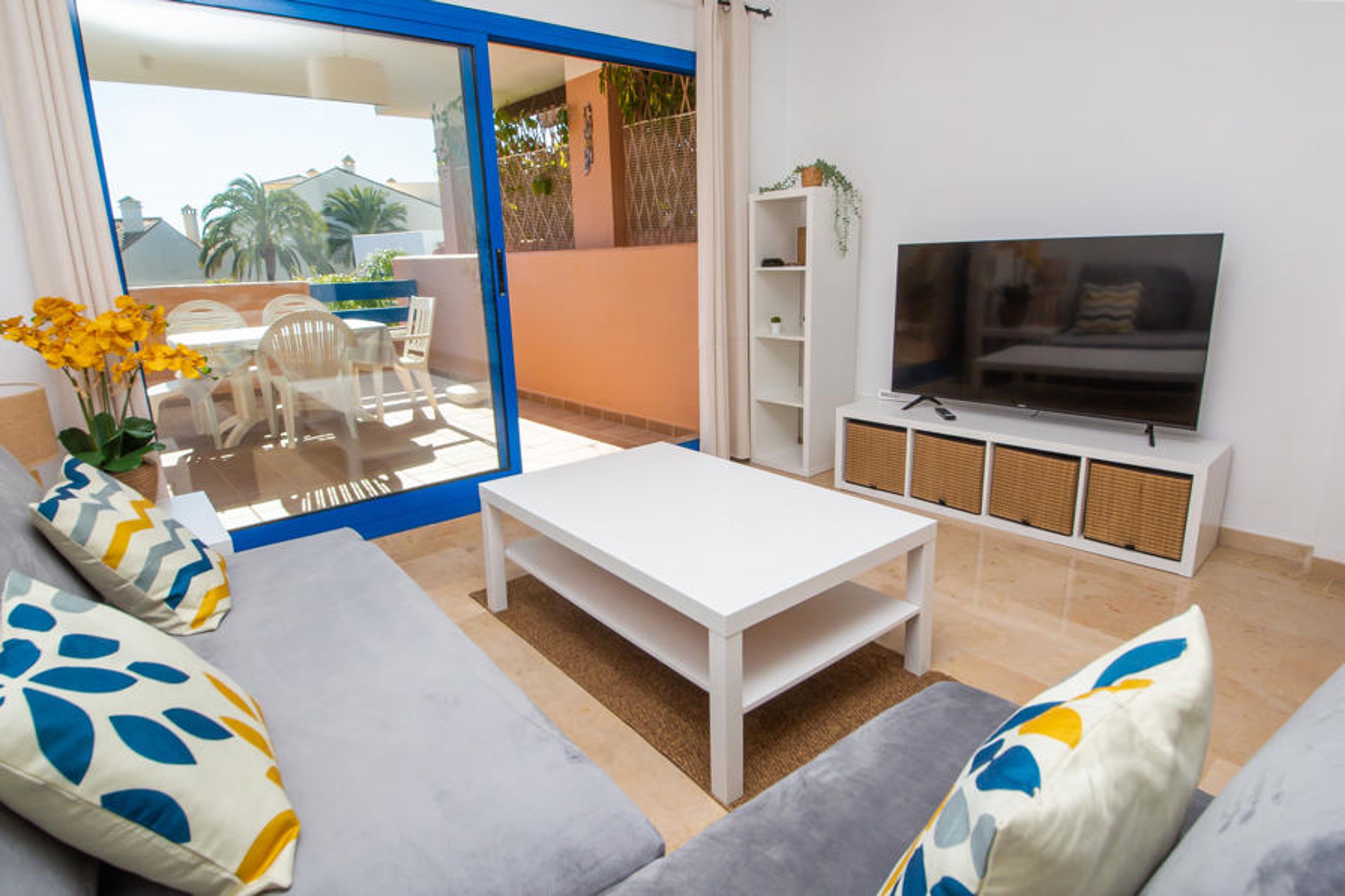 Two bedroom, two bathroom apartment in Duquesa Suites. The apartment has a large terrace with views to the sea, Estepona coast and the community gardens, furnished with a table and chairs for outside dining. Very well furnished lounge with patio doors to the terrace. The apartment also has it´s own WiFi connection, air conditioning and an underground parking space.