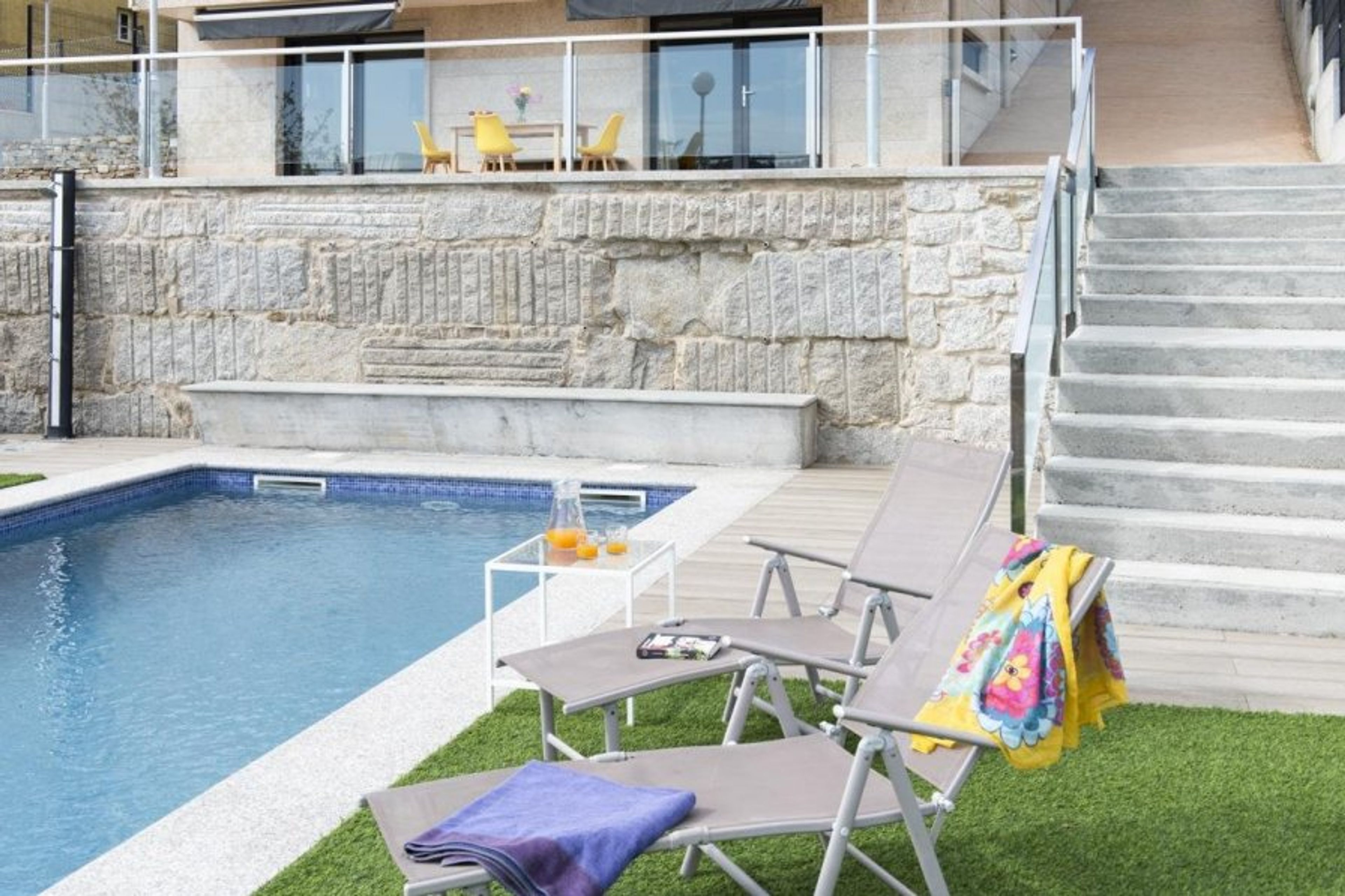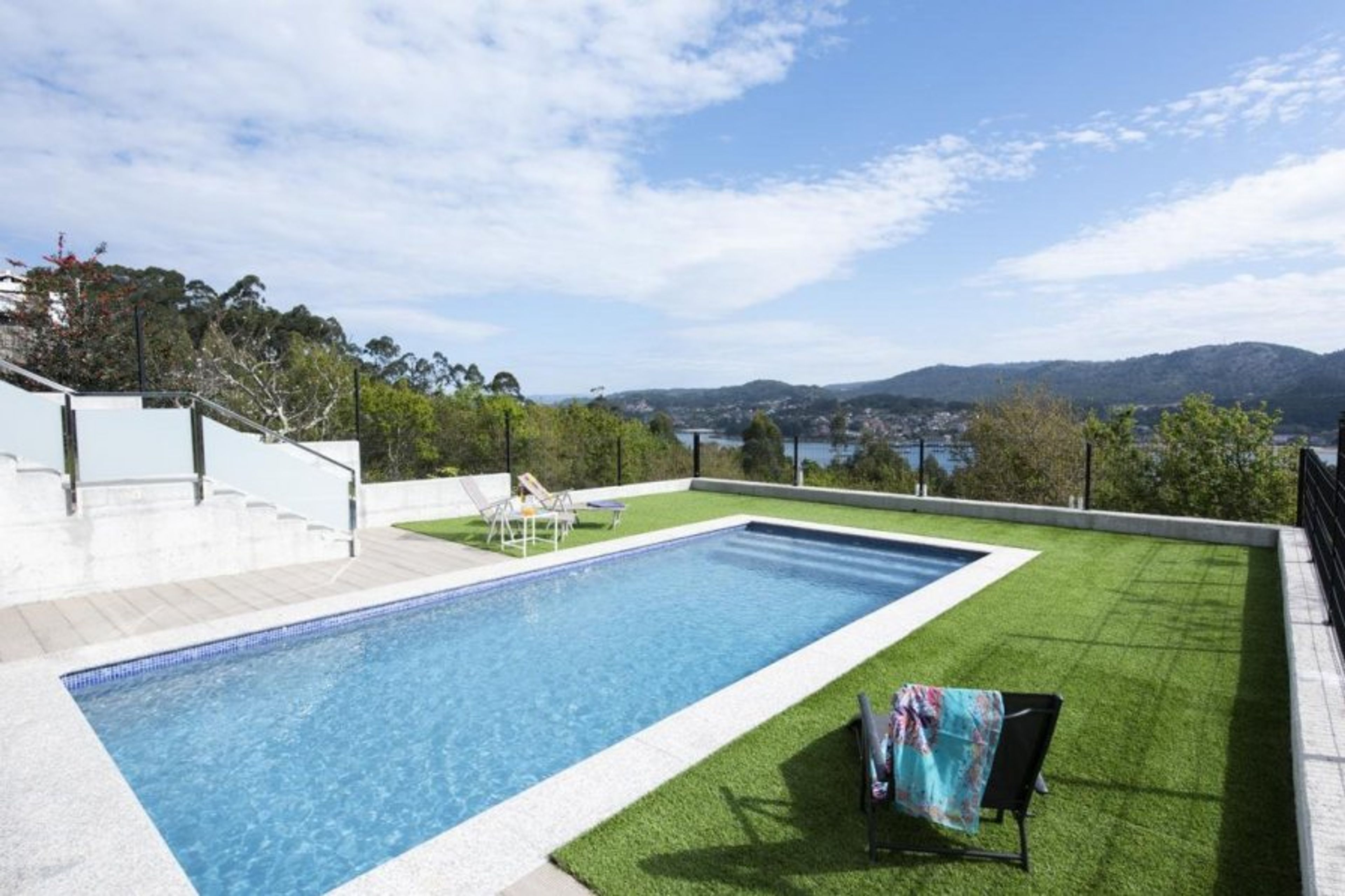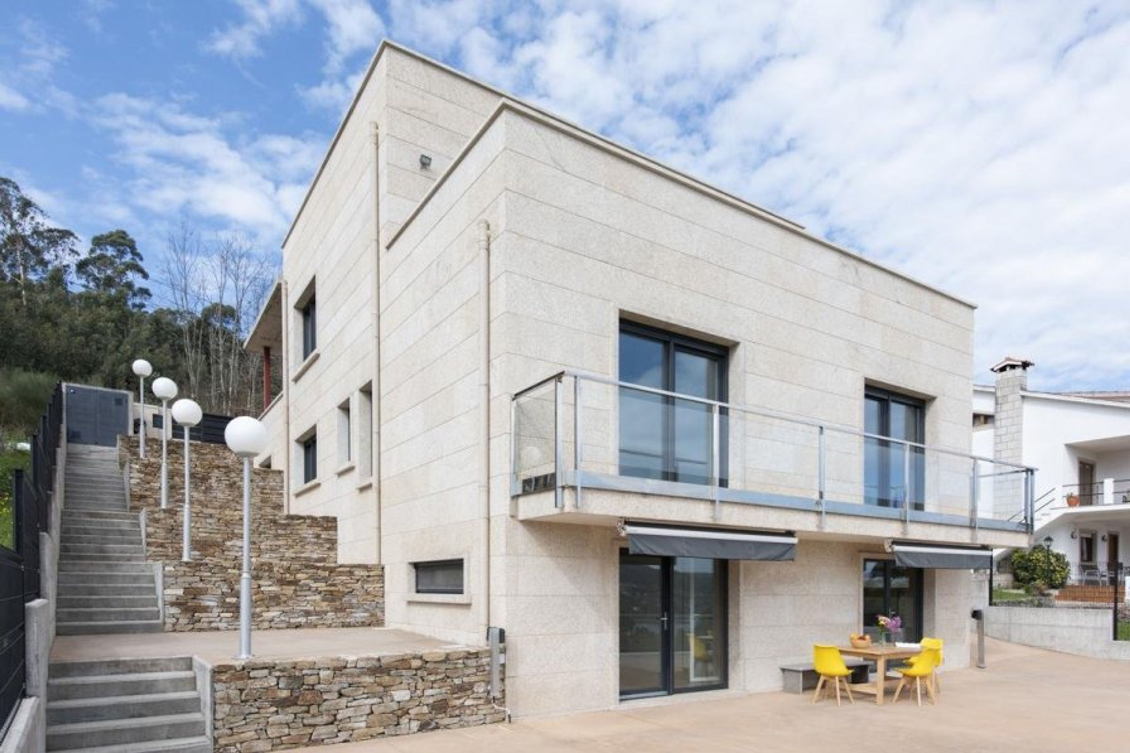 A contemporary, straightforward, six-bedroom, four-bathroom villa with a pool and expansive views of the sea is located in the Galicia area of Spain.