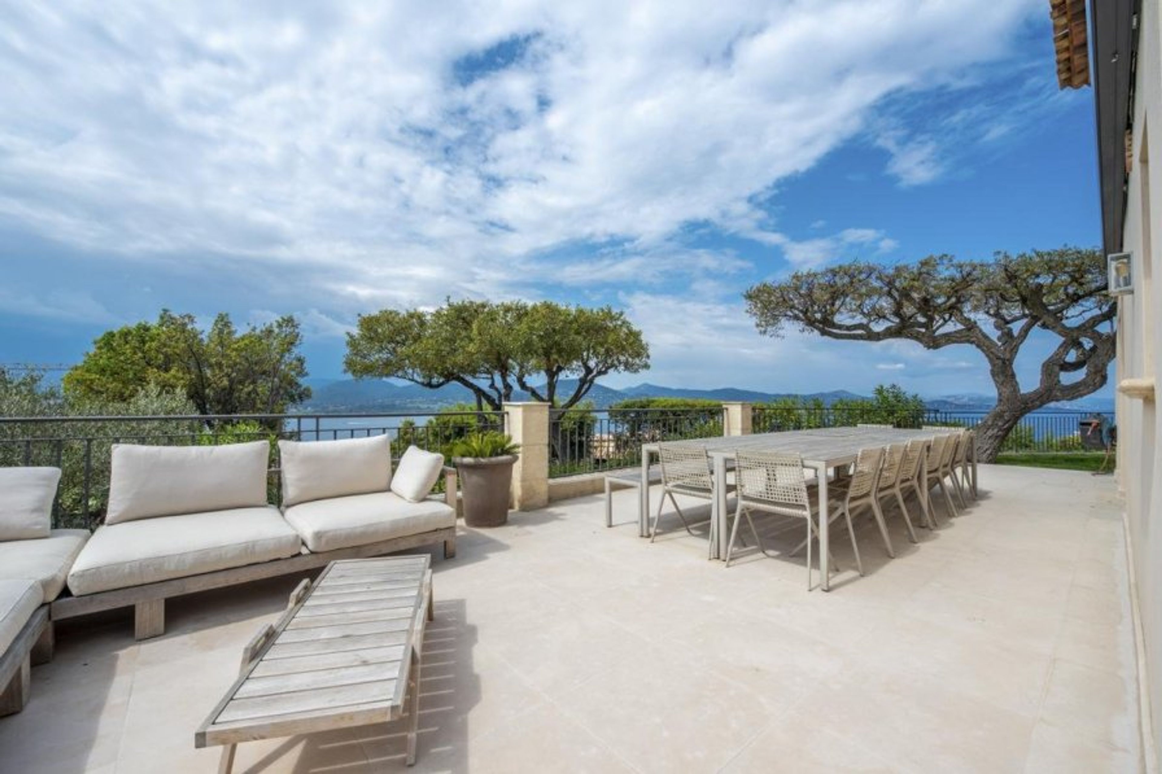 From several locations in the garden, including the sizable terrace with a dining area and comfortable outdoor sofas, you can take in the breathtaking sea views.