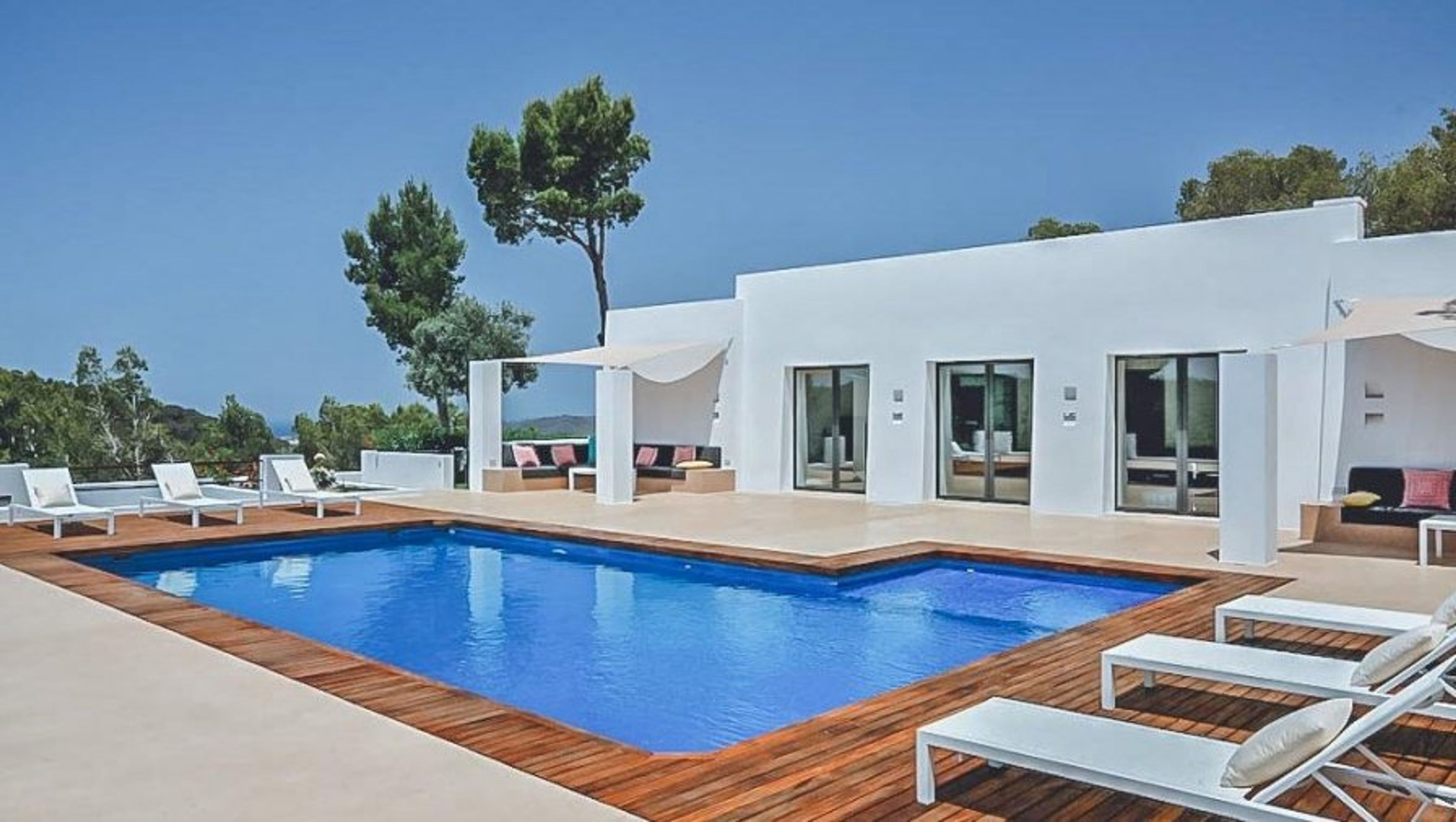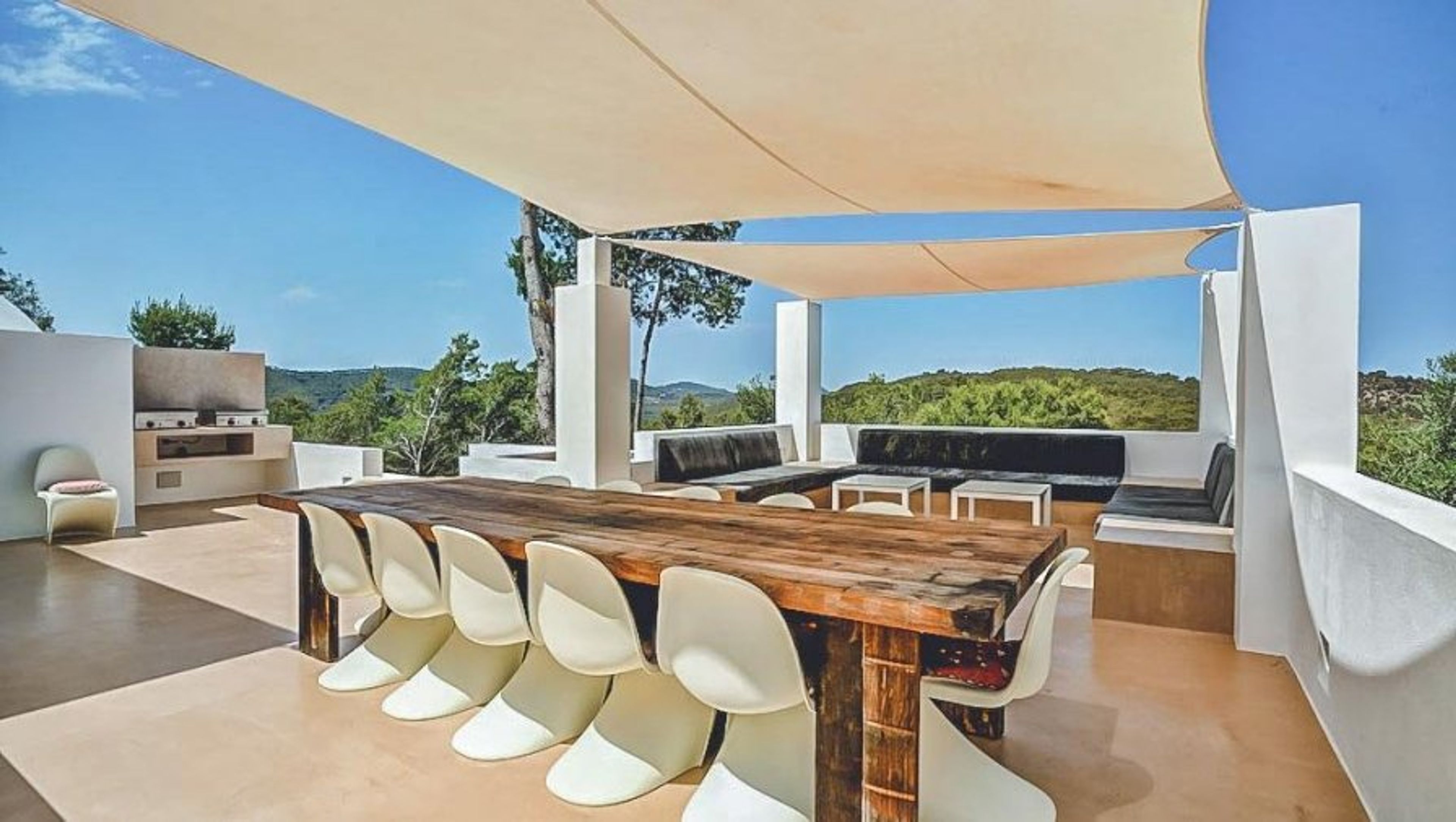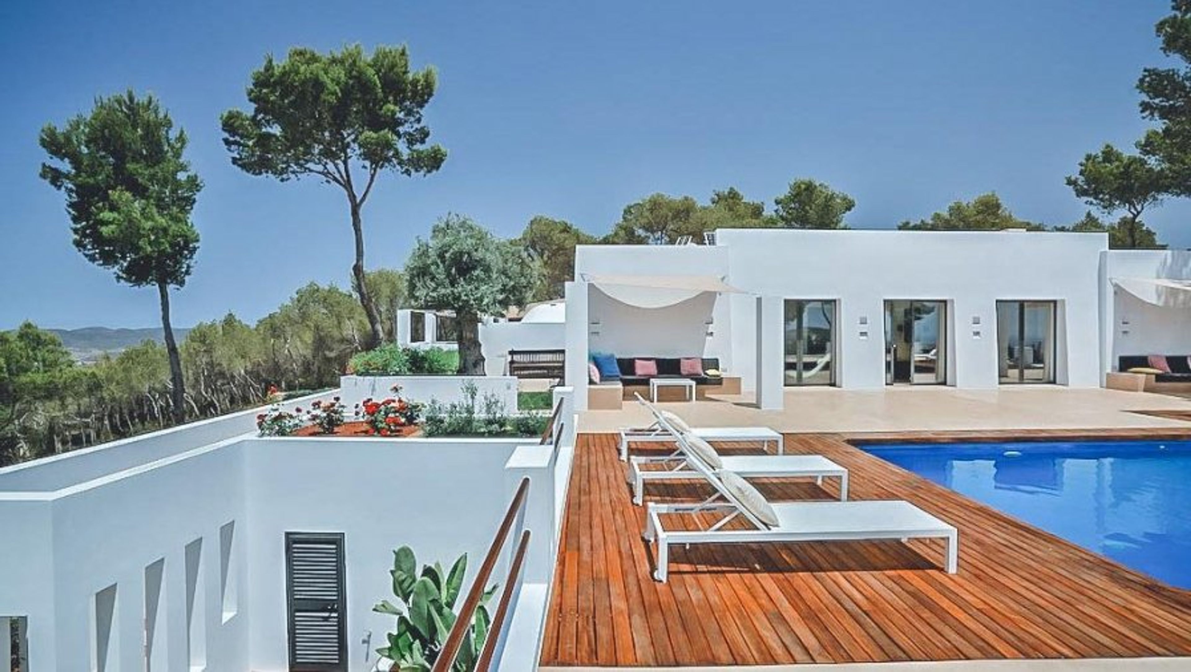 This house has clean architectural lines, roomy living spaces, and cozy patios, which give it a cozy atmosphere while maintaining a grandiose vantage point to take in the stunning natural surroundings, distant sea view, and dazzling lights of Ibiza Town.