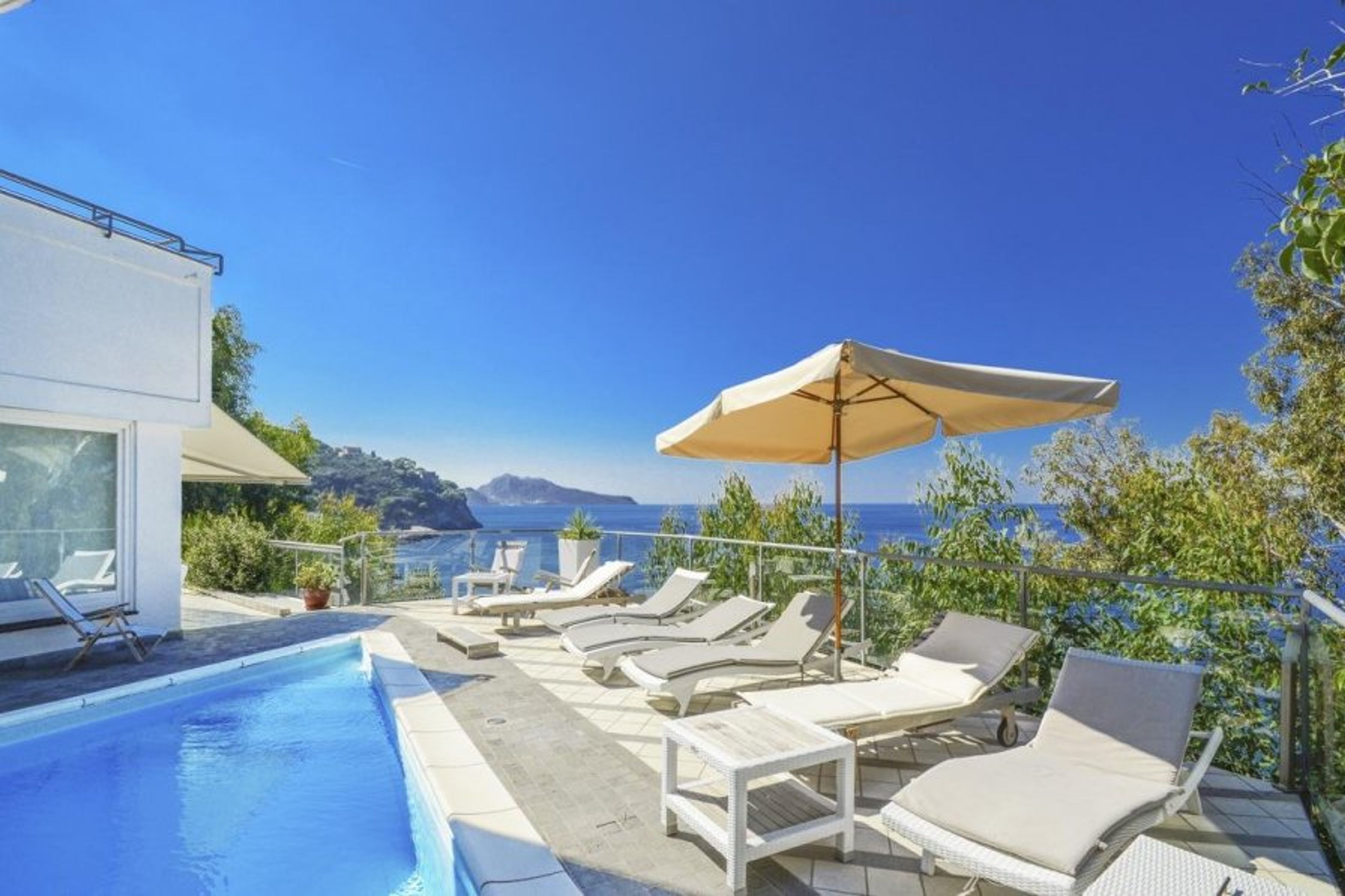The property is a two-storey villa with five bedrooms and two bathrooms, sleeping 12 guests. It has a spectacular terrace with a private pool and loungers to enjoy the sun.