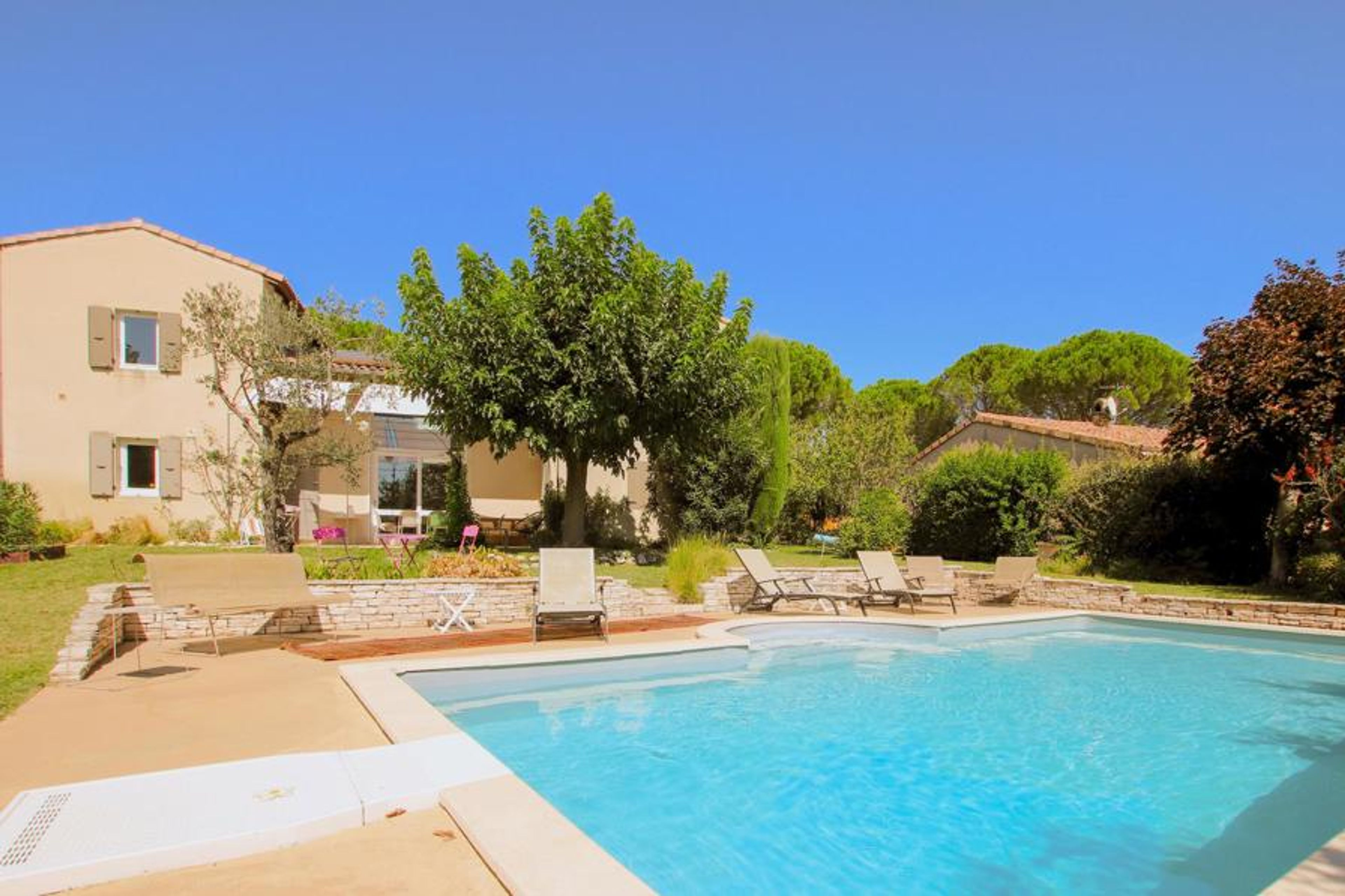 On the hills of the medieval village of Sauzet, on the edge of nature, lies this beautiful modern villa. Look forward to your vacation in this fantastic and spacious vacation home.