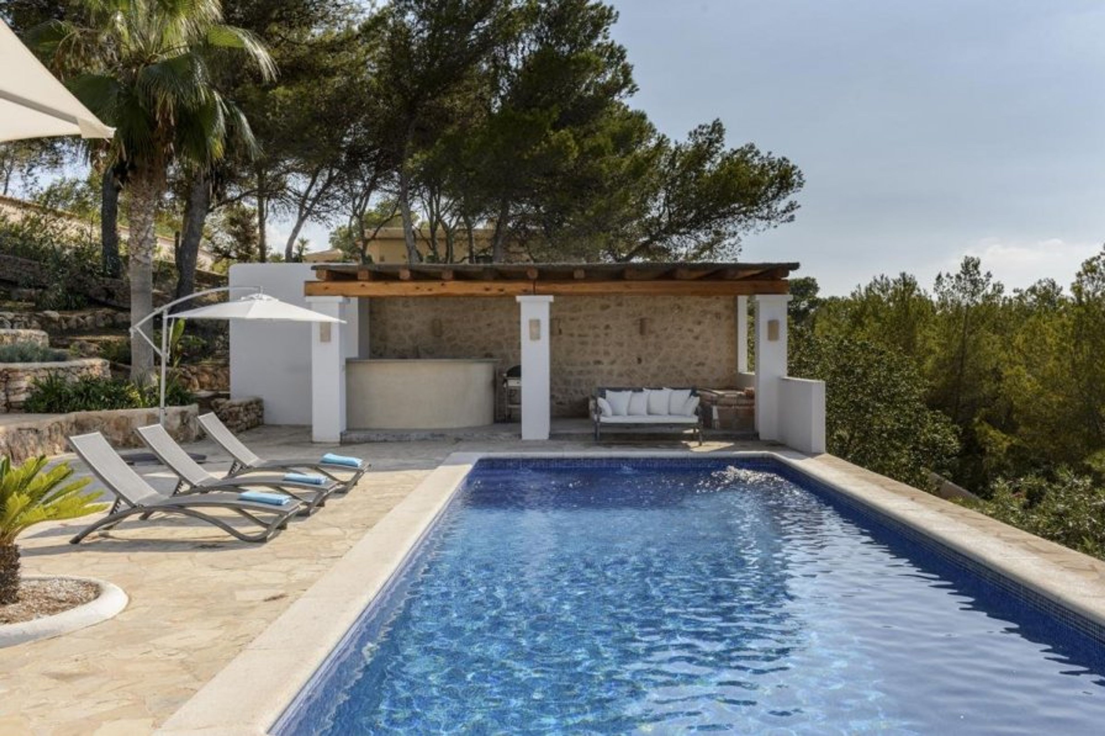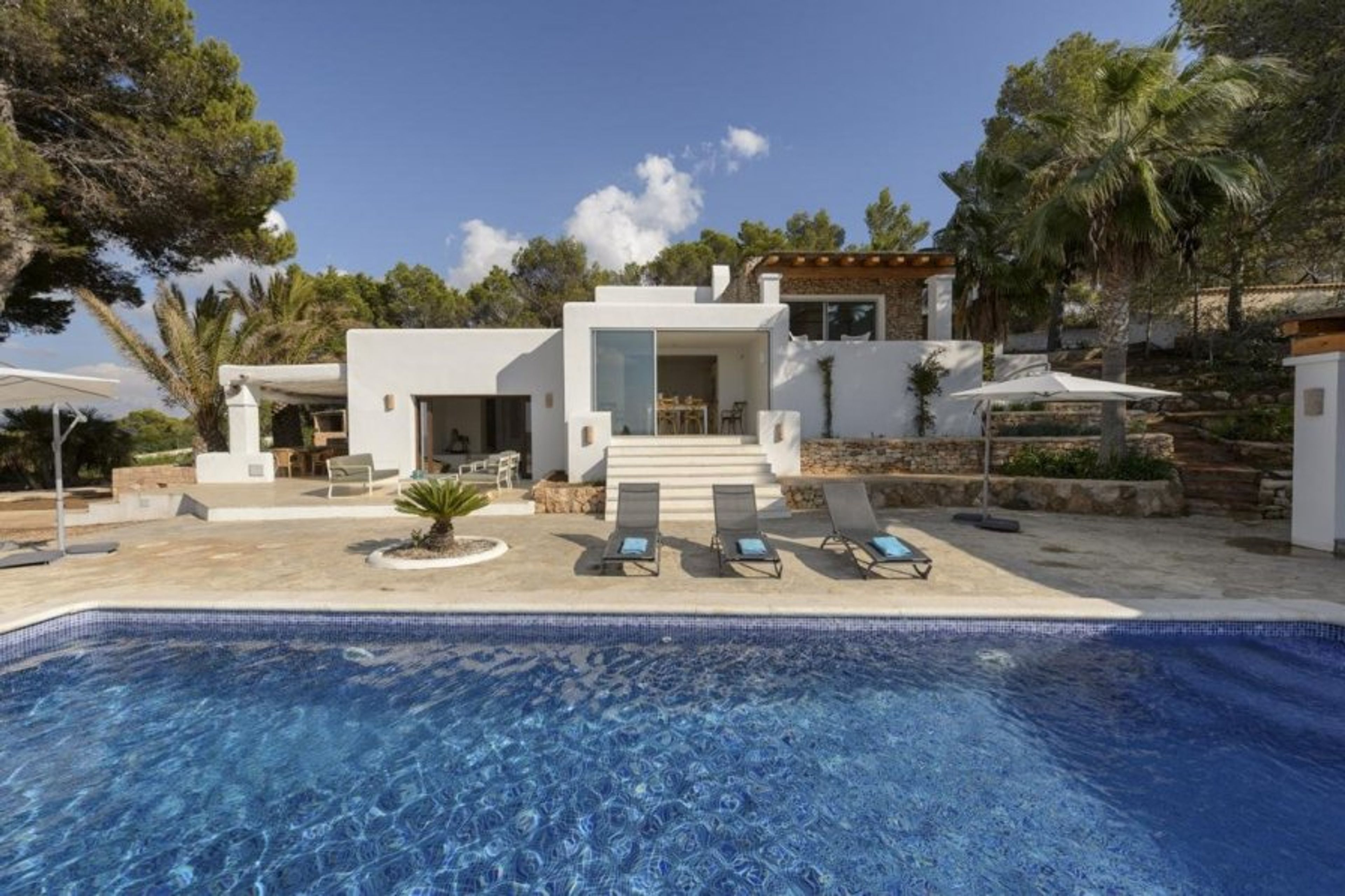 This is a modern 5-bedroom villa sleeping 10 guests close to the popular beach of Cala Bassa.