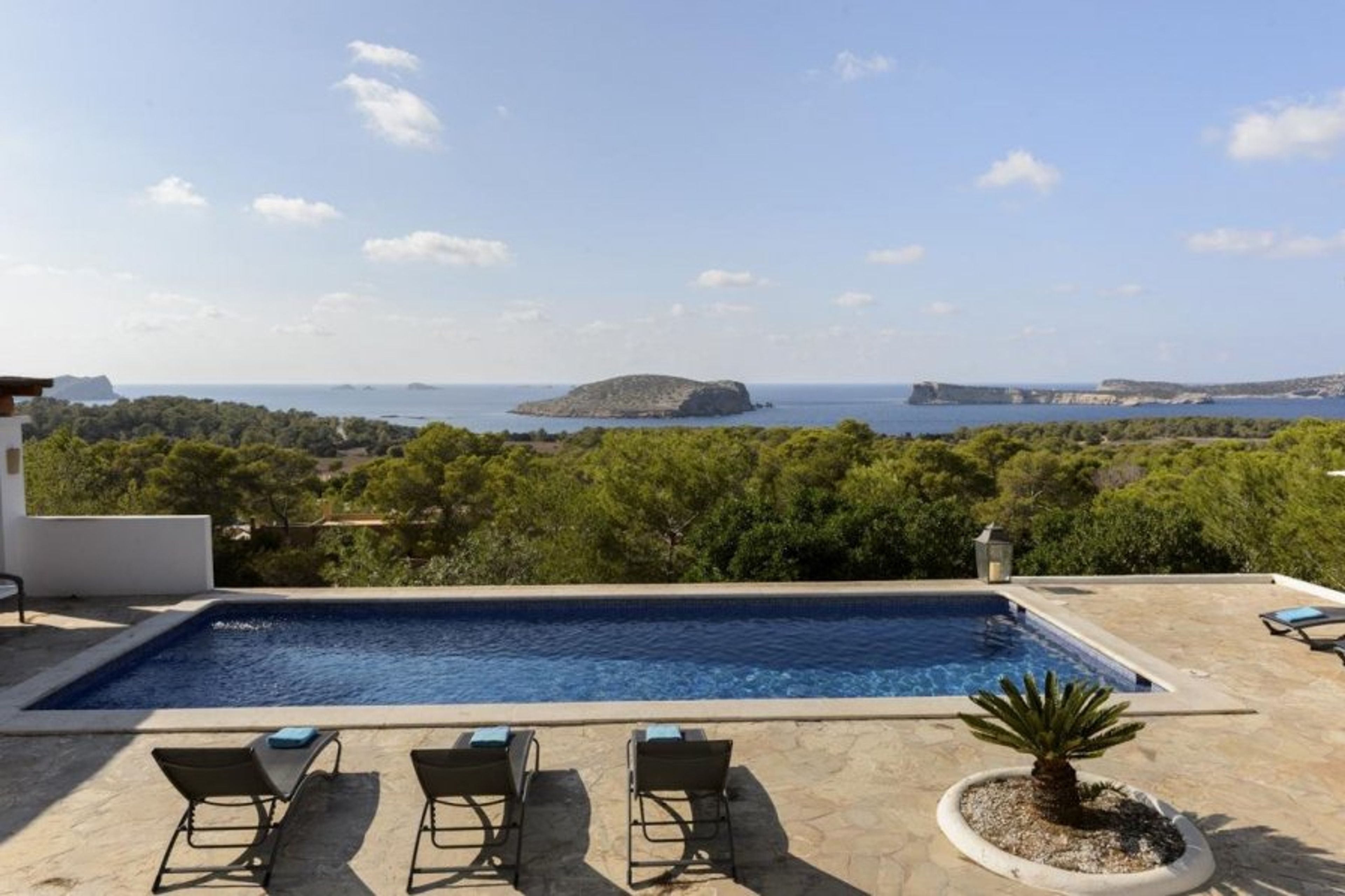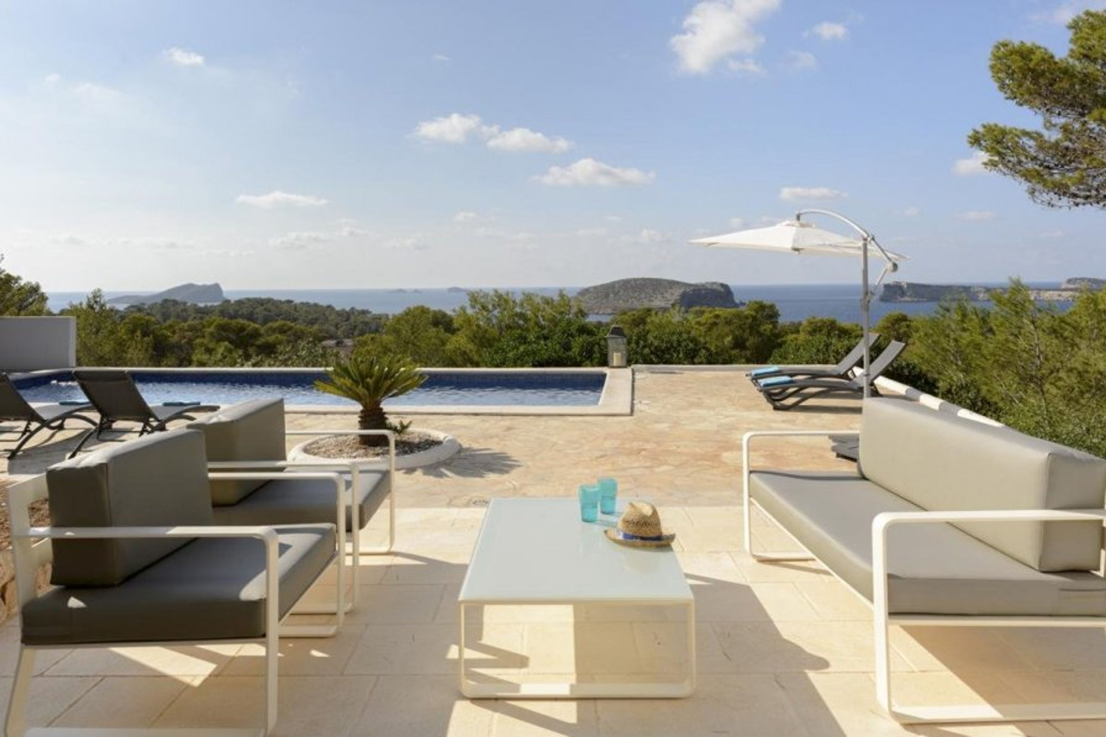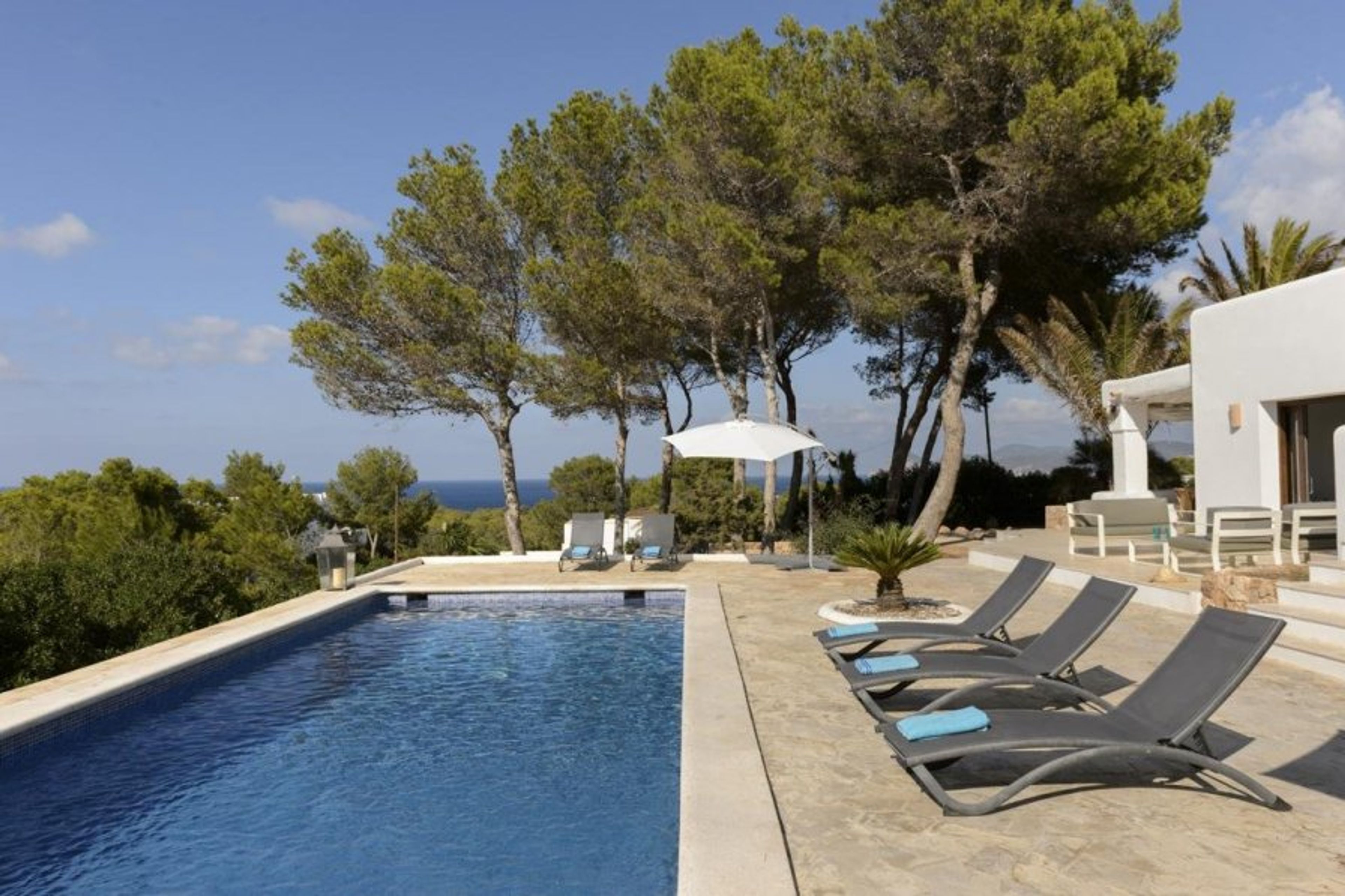 Cosmic Villas is delighted to present this luxurious holiday home close to popular sandy beaches with spectacular views of the sea from every corner, surrounded by shady pine trees.
