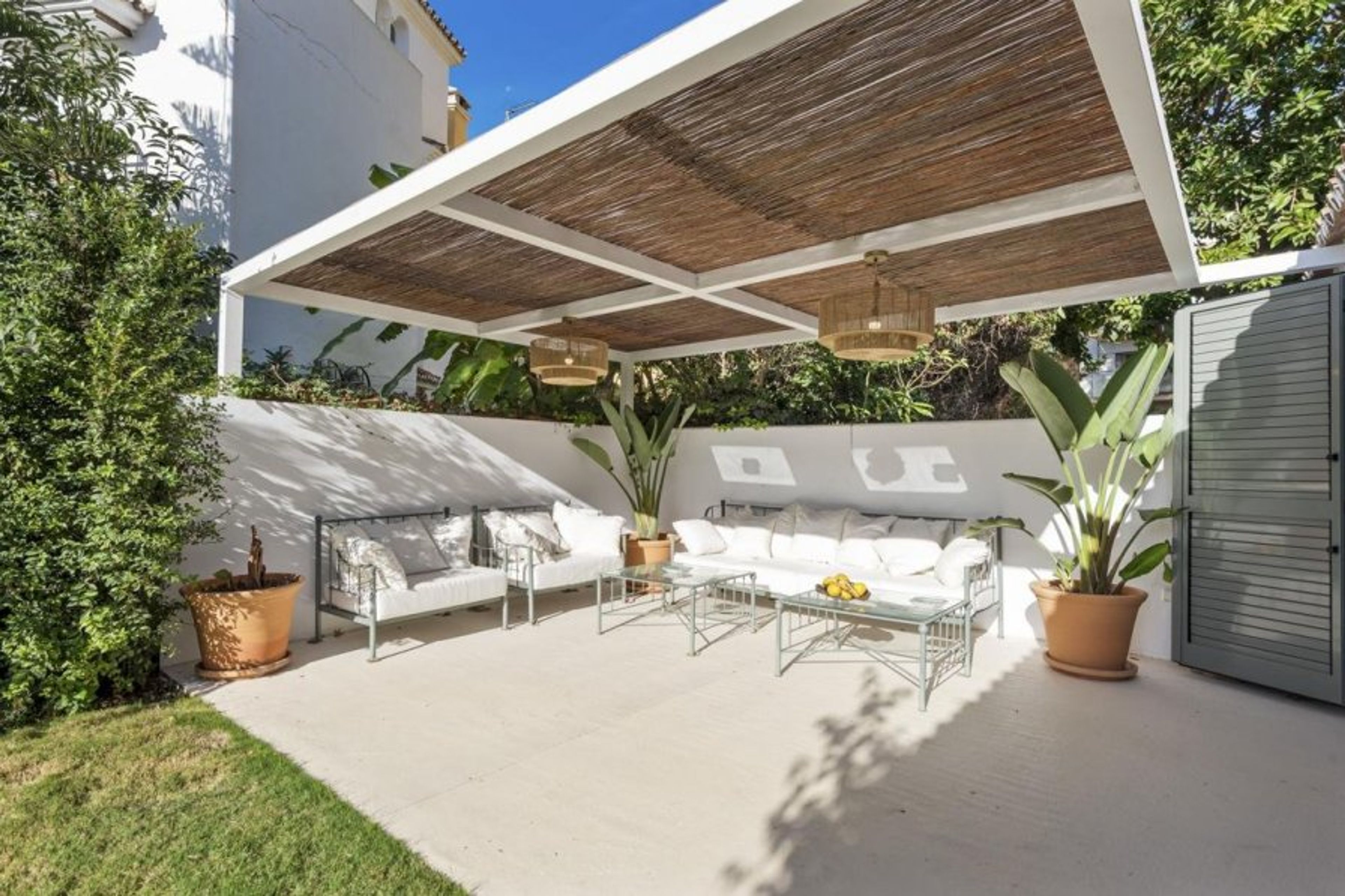 Seating area on a covered terrace;