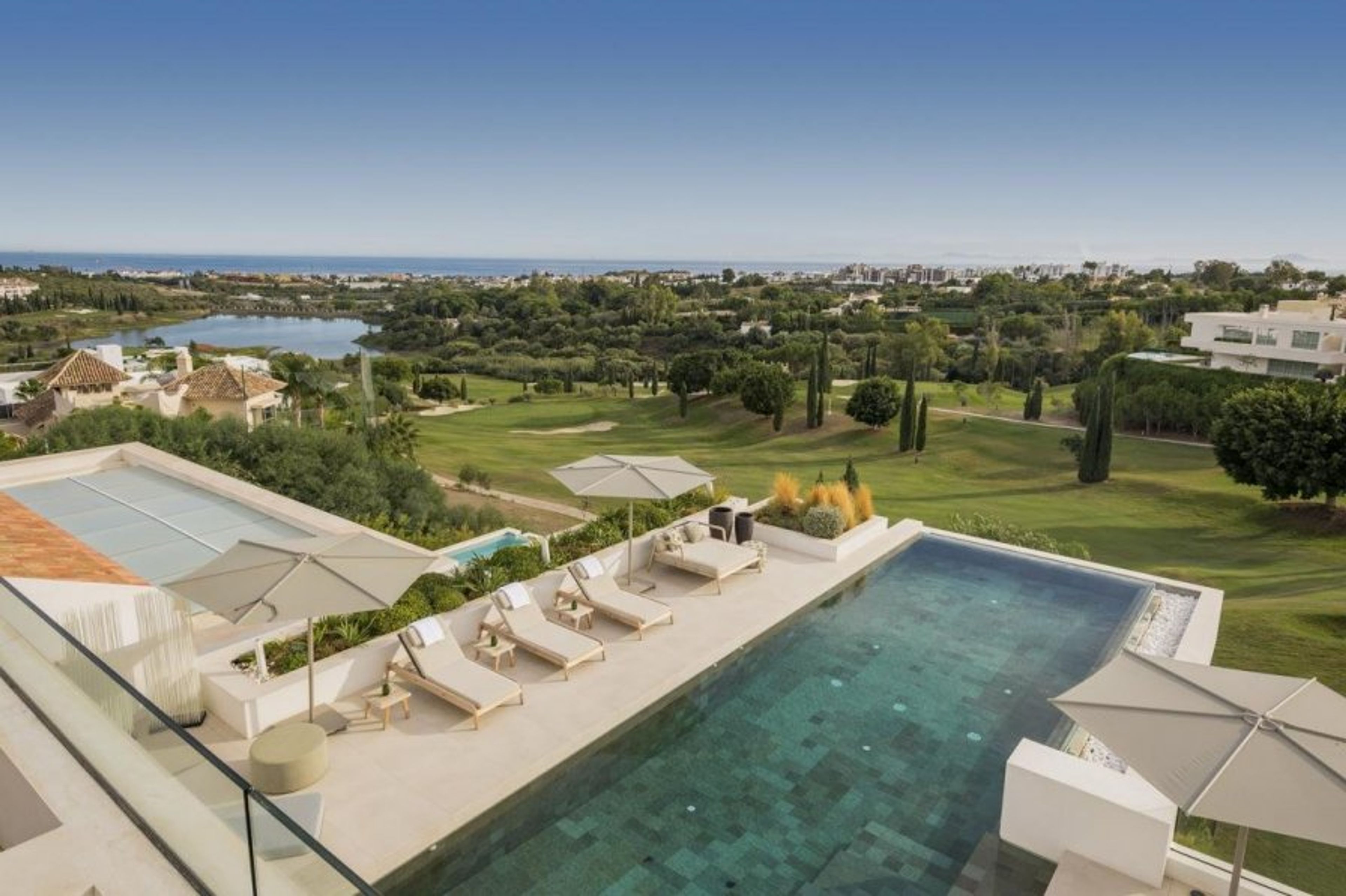 It is located in Marbella. This villa's outside is truly lovely, including a sizable pool that looks out toward the nearby idyllic landscape.