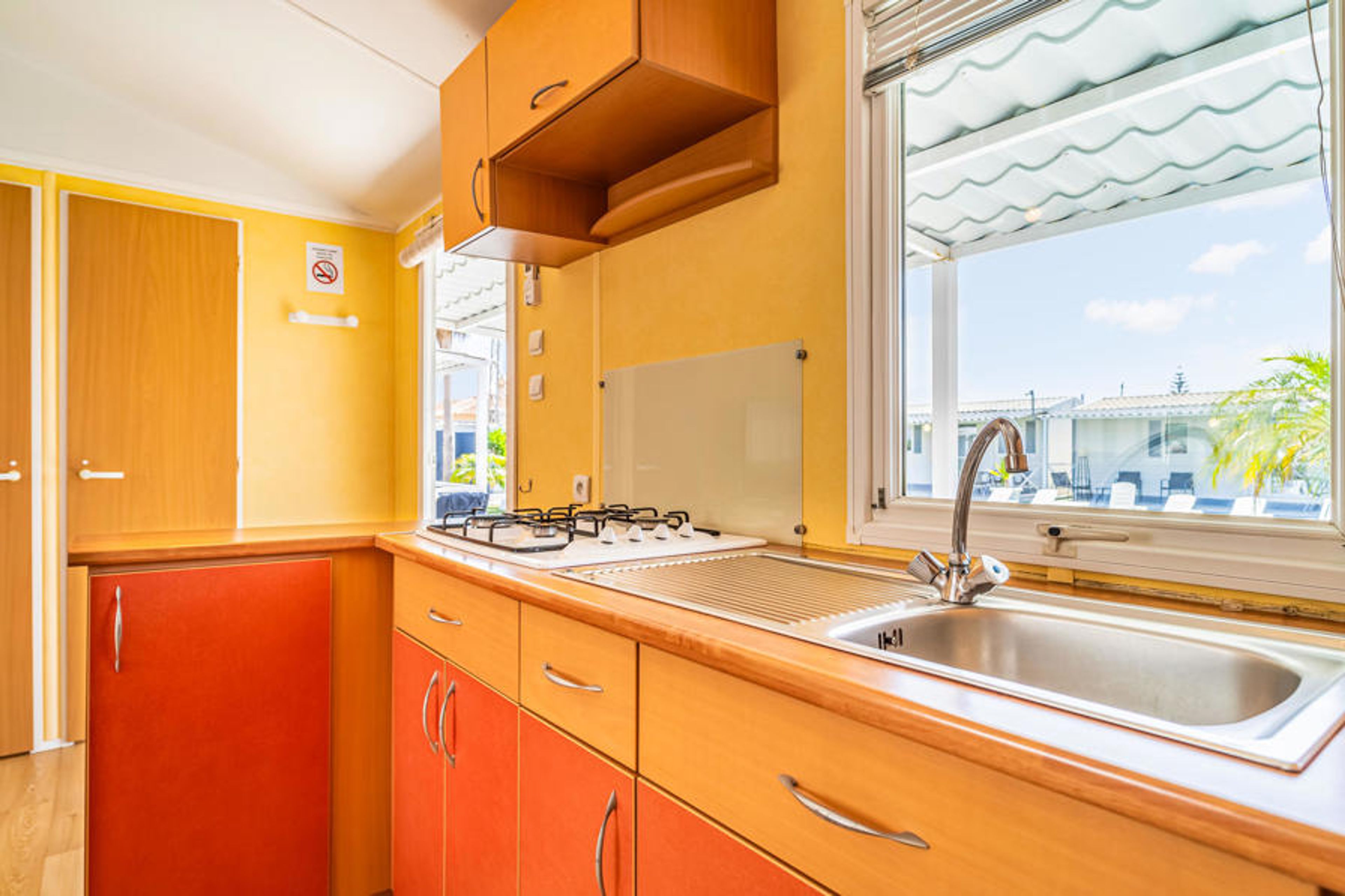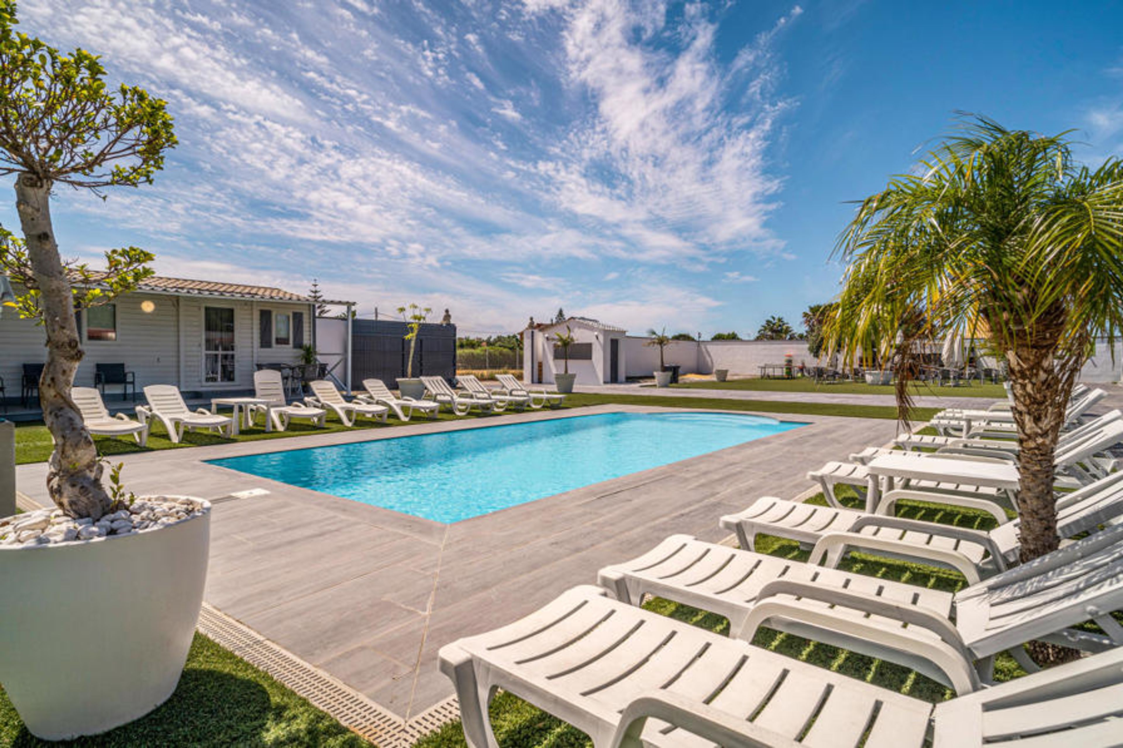 Welcome to the house that welcomes you in a complex with several bungalows and is the ideal place for a vacation as a couple or family with many activities. The functional and colorful interior makes the house the ideal base for your trips to the beach and the surrounding area. Relax on the sofa in the evening, exchange ideas about what you have experienced or already make plans for the next day. The first coffee in the morning tastes especially good outdoors. Enjoy the first rays of the sun on the veranda before having fun with the whole family in the shared pool.
