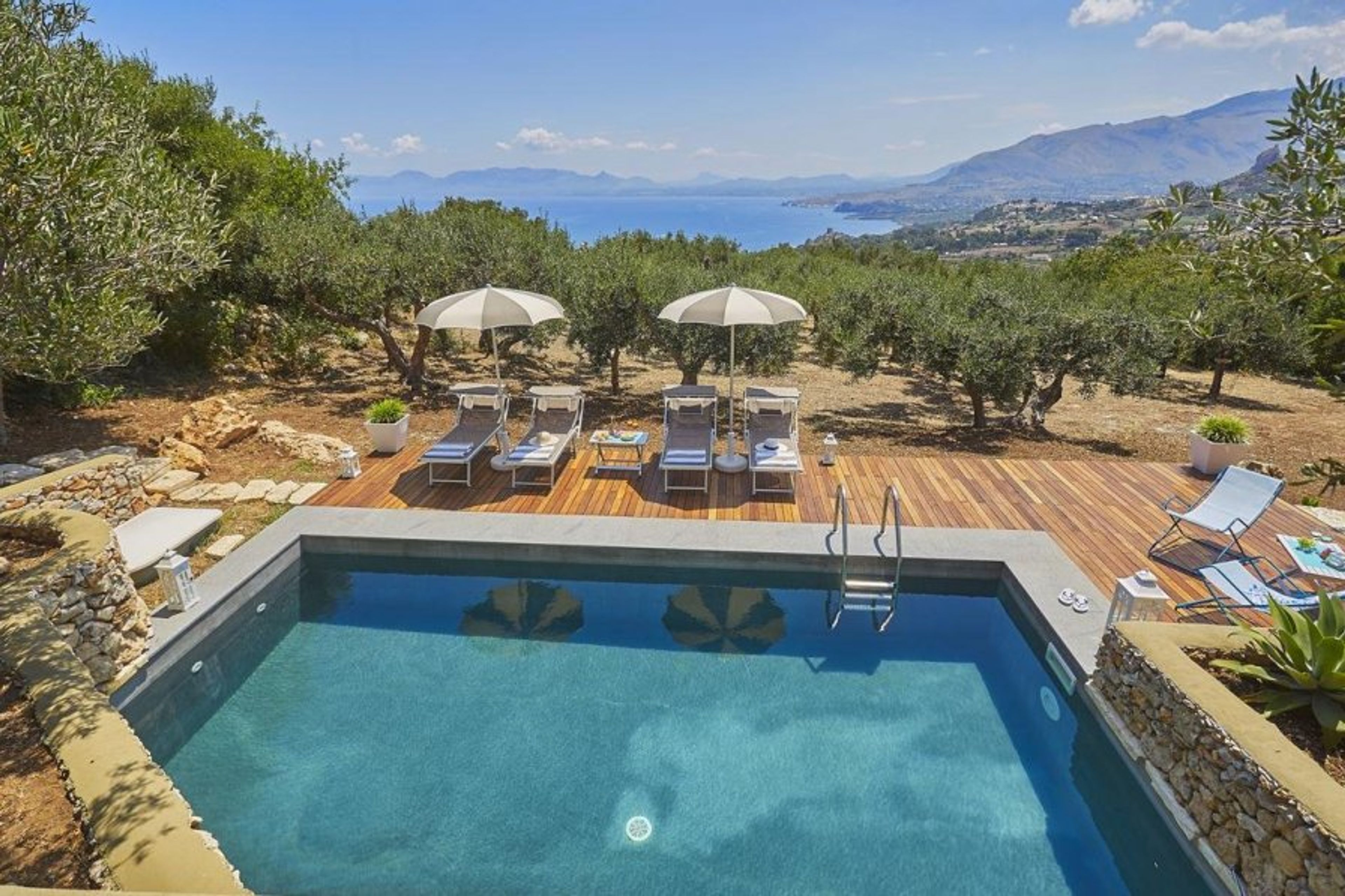 Cosmic Villas is pleased to showcase this magnificent villa overlooking the bay of Castellammare del Golfo, surrounded by mountains and large olive orchards.