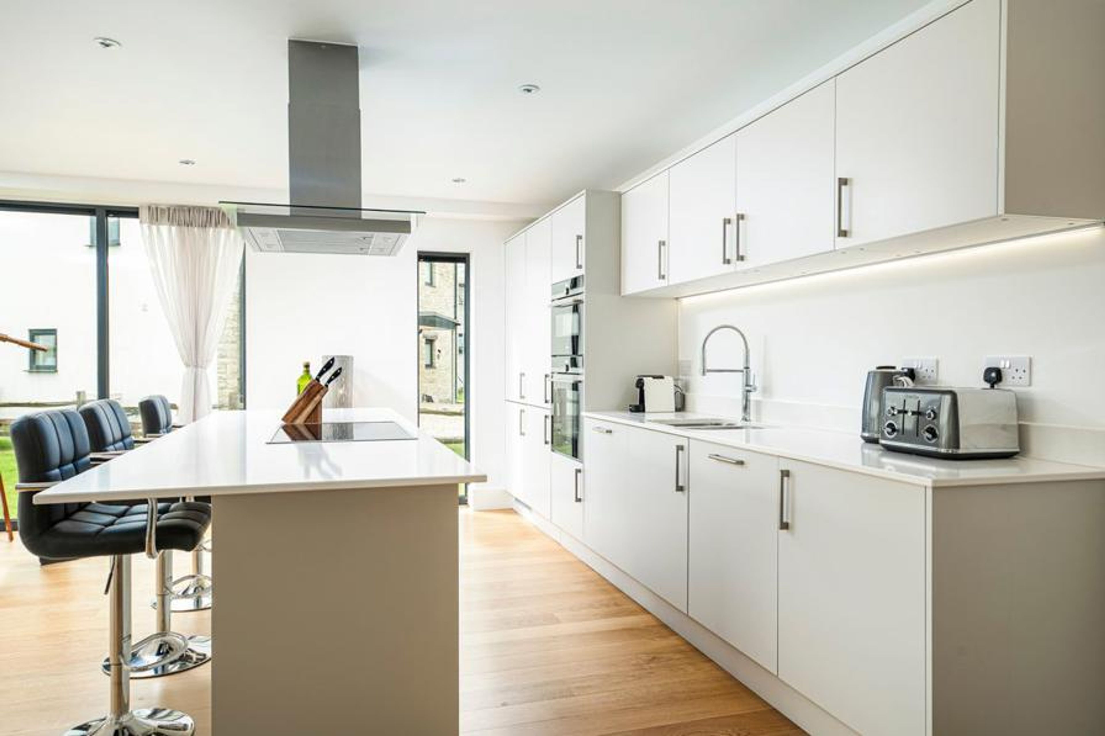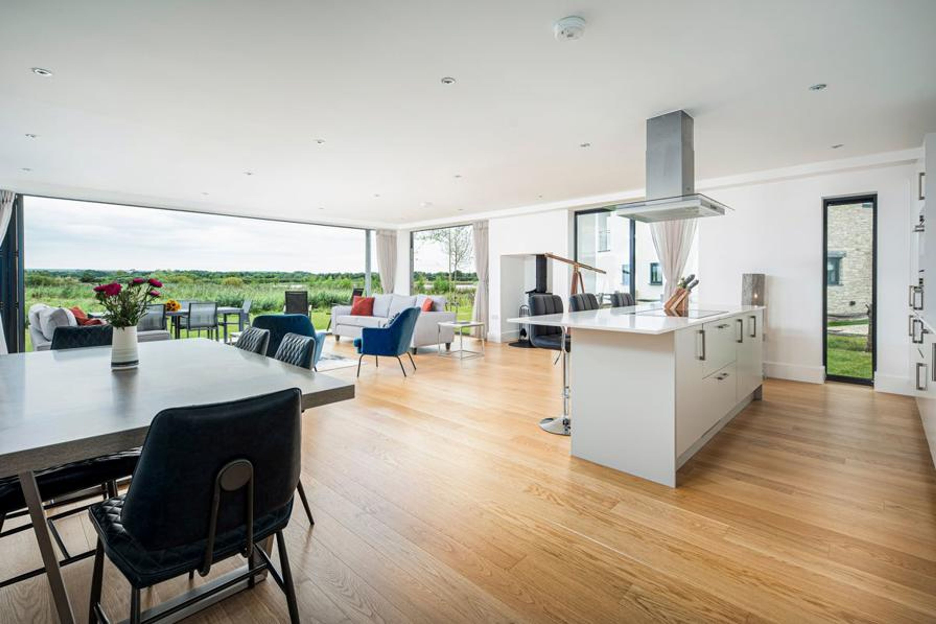 Occupying an idyllic spot on the estate, The Great Escape is a thoughtfully designed home that blends seamlessly with its environment. Inside a contemporary retreat awaits, adorned with modern comforts and stylish furnishings. Relax in the spacious open-plan living areas, complete with plush sofas, a flat screen TV, and a cosy fireplace. Large windows and doors invite the outdoors in, while the private lakeside decking offers a perfect setting for al fresco dining. Take in panoramic views from the rooftop terrace, or take part in various watersports and resort activities.