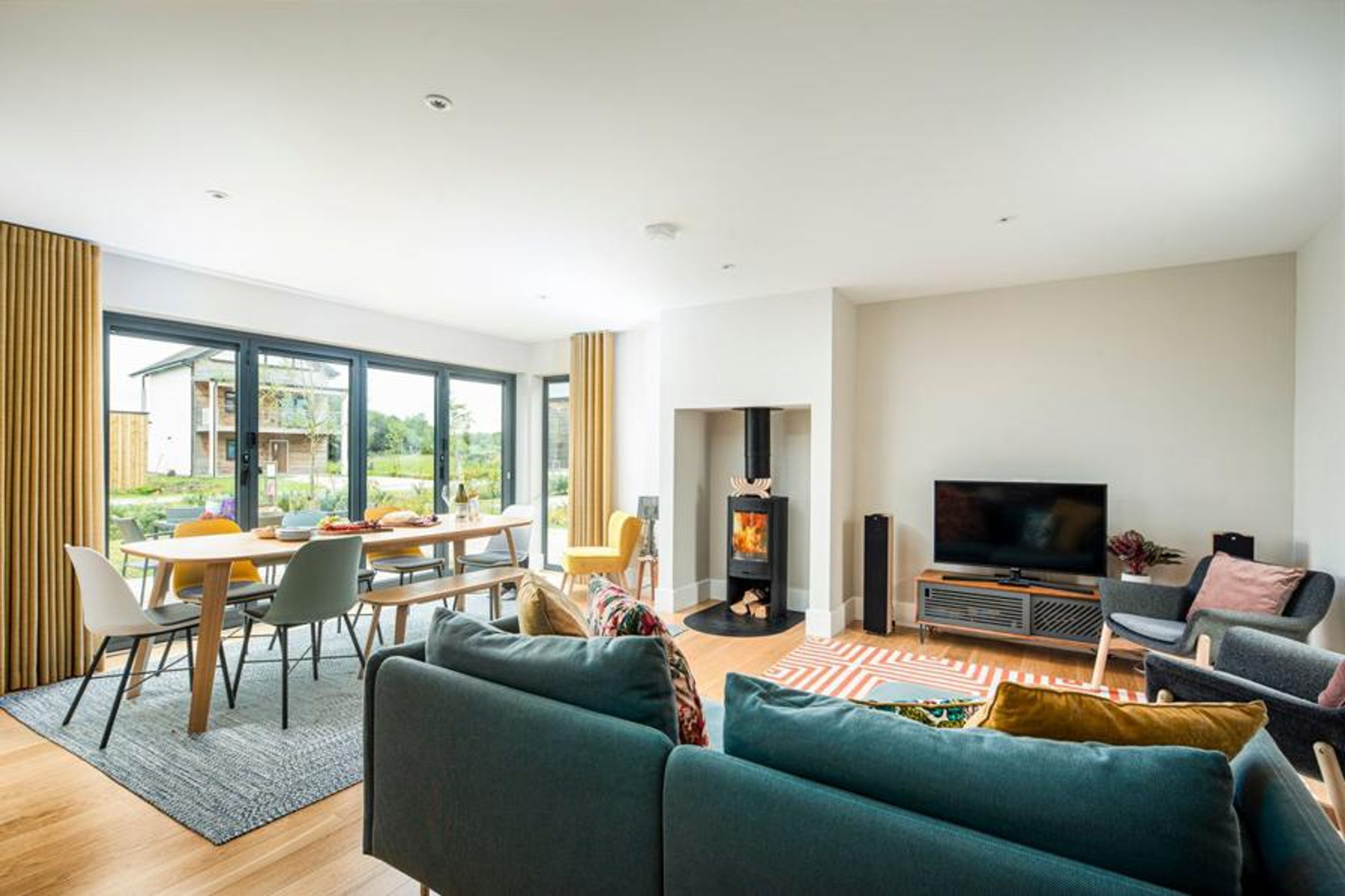 - Open plan kitchen, dining and living area with access to outdoor decking