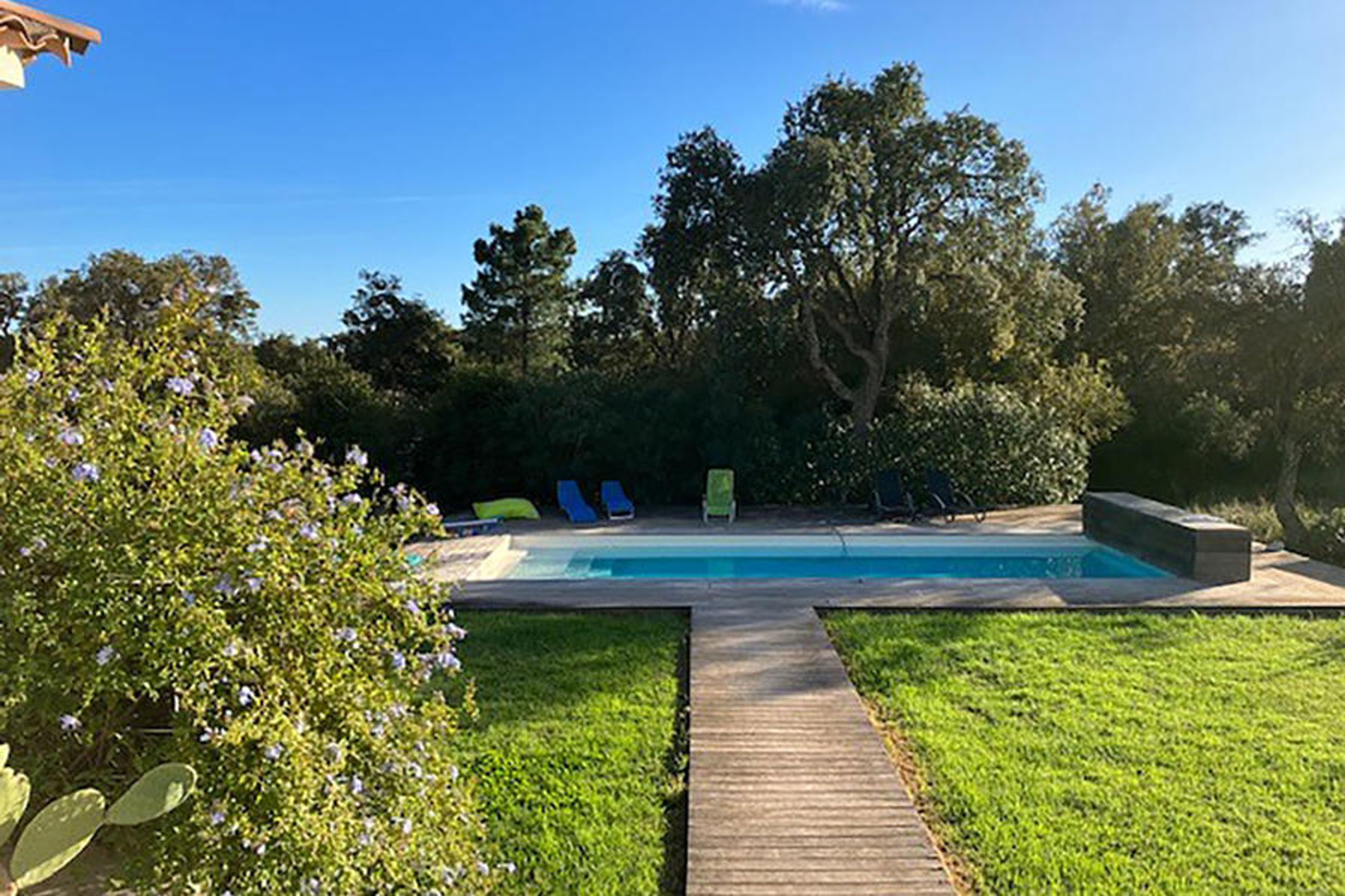 Villa. In the district of Mangia Gatta, on the outskirts, 4 km from the centre of Sainte Lucie de Porto-Vecchio, in a secluded position, 700 m from the sea, 700 m from the beach, direct access to the beach. Private: natural state property, swimming pool angular (10 x 4 m, depth 70 - 180 cm, seasonal availability: 15.Apr. - 15.Sep.) with shutter cover. In the house: air conditioning. Motor access (via unmade road). Parking on the premises. Supermarket 4 km, restaurant 1 km, bakery 4 km, bus stop 4.1 km, sandy beach "Plage de Fautea" 1 km. Nearby attractions: Centre ville Porto-Vecchio 20 km, Centre ville Solenzara 19 km. Hiking paths: Aiguilles de Bavella 40 km. Please note: car recommended.