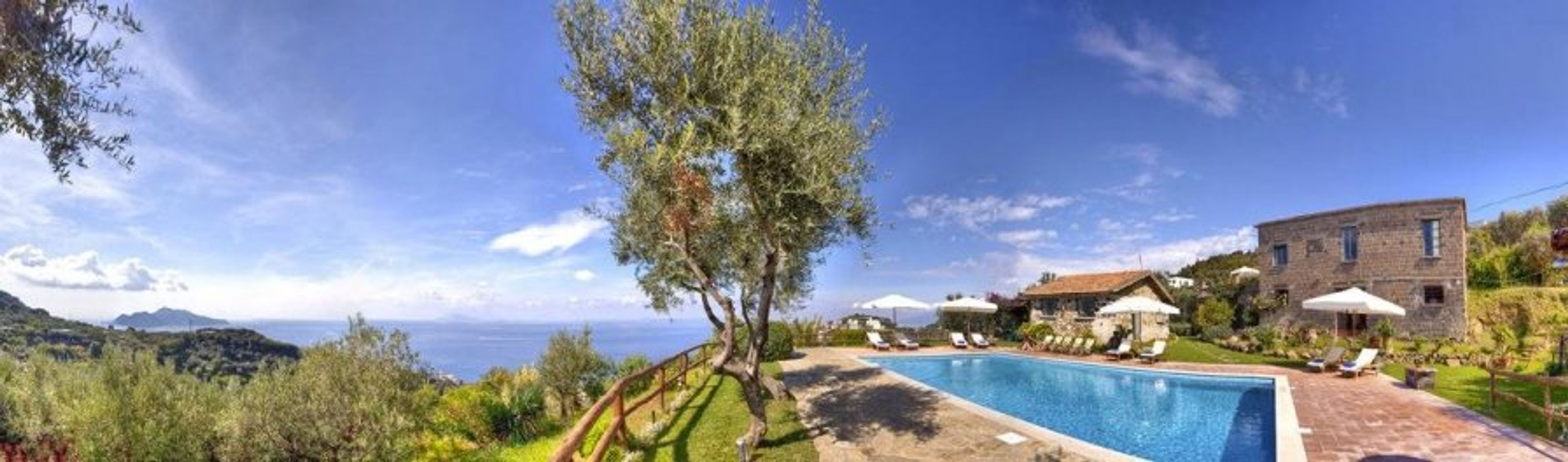 This former farmhouse offers you a fantastic pool and balcony with views of the sea and the Island of Capri, as well as three exquisite apartments with seven bedrooms.