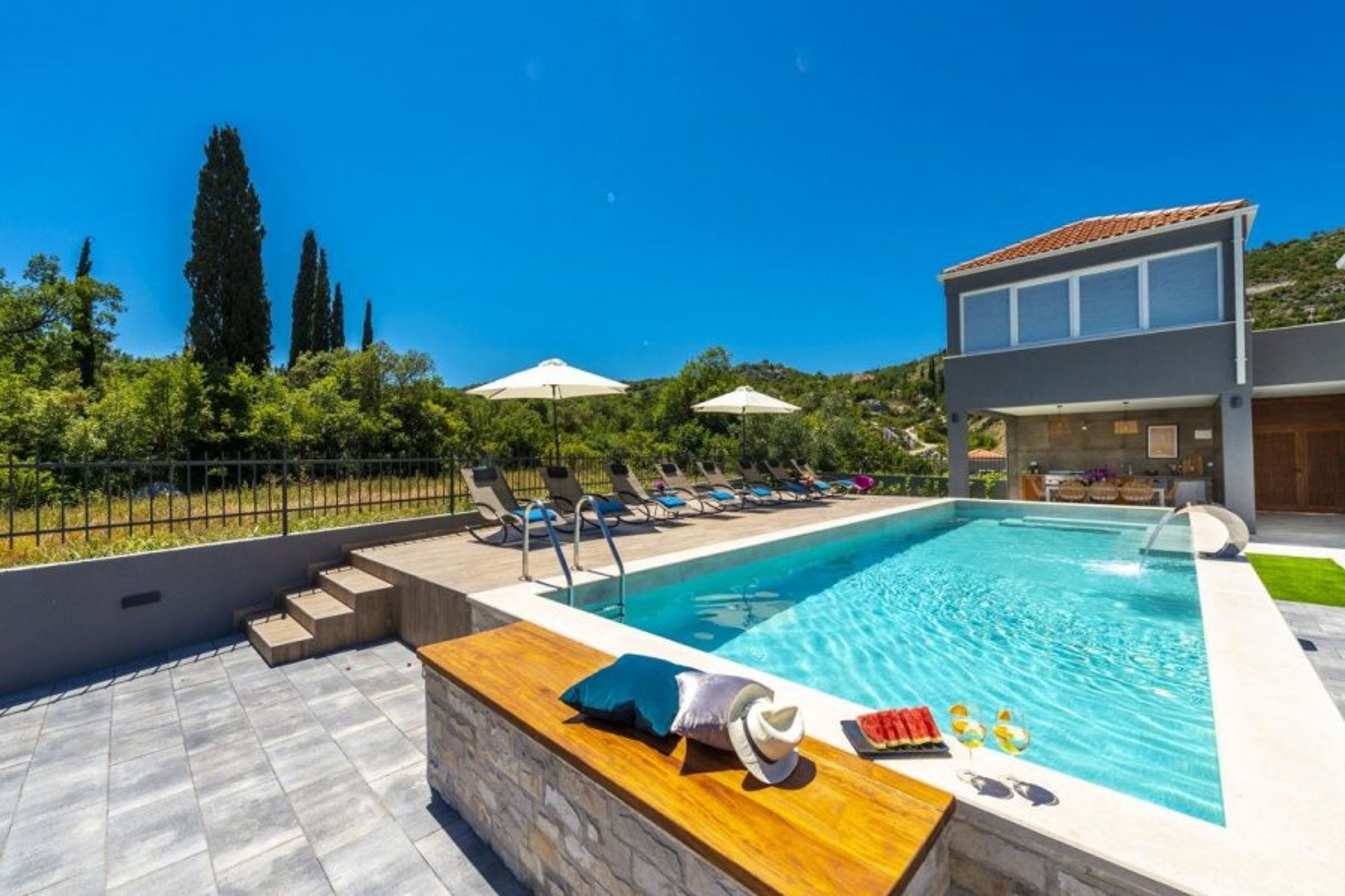 Just 8 kilometers to the east of the magnificent ancient town of Dubrovnik is this gorgeous, modern property, tucked away in glorious scenery in the quiet, genuine village of Brgat Donji.