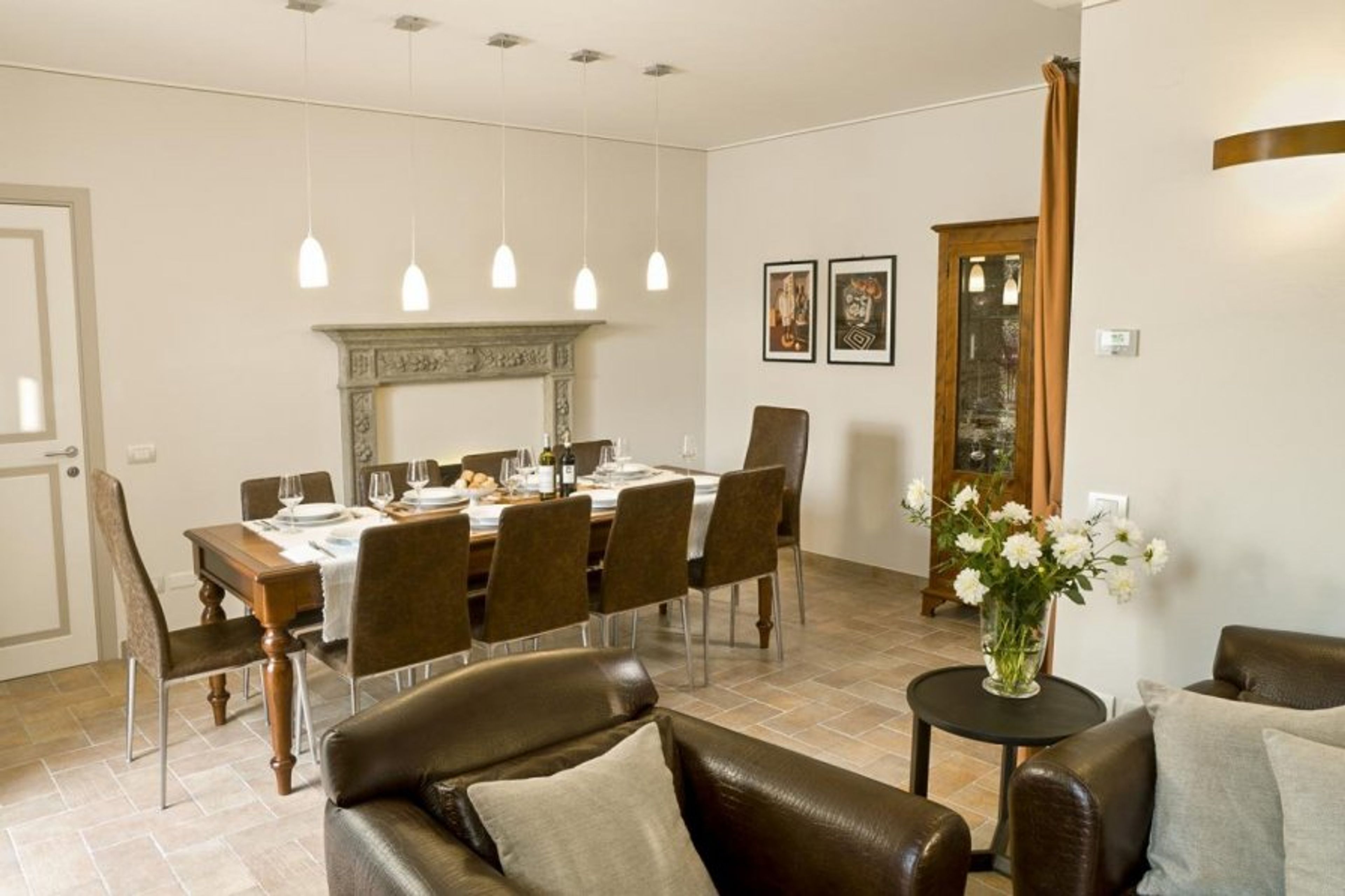 The accommodations in the villa are located over three different floors, and the main entrance opens onto the villa's second floor