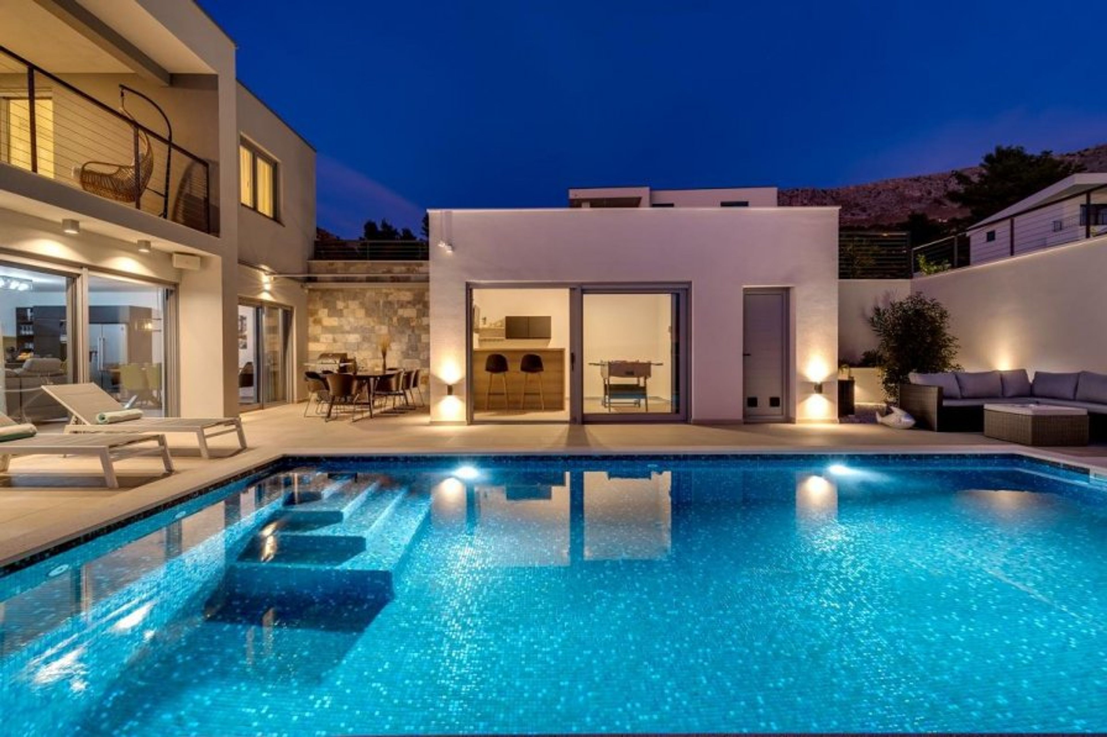 This contemporary home, which sleeps eight guests comfortably, is set on a hillside in the upper part of the village of Podstrana and is proudly offered by Cosmic Villas.
