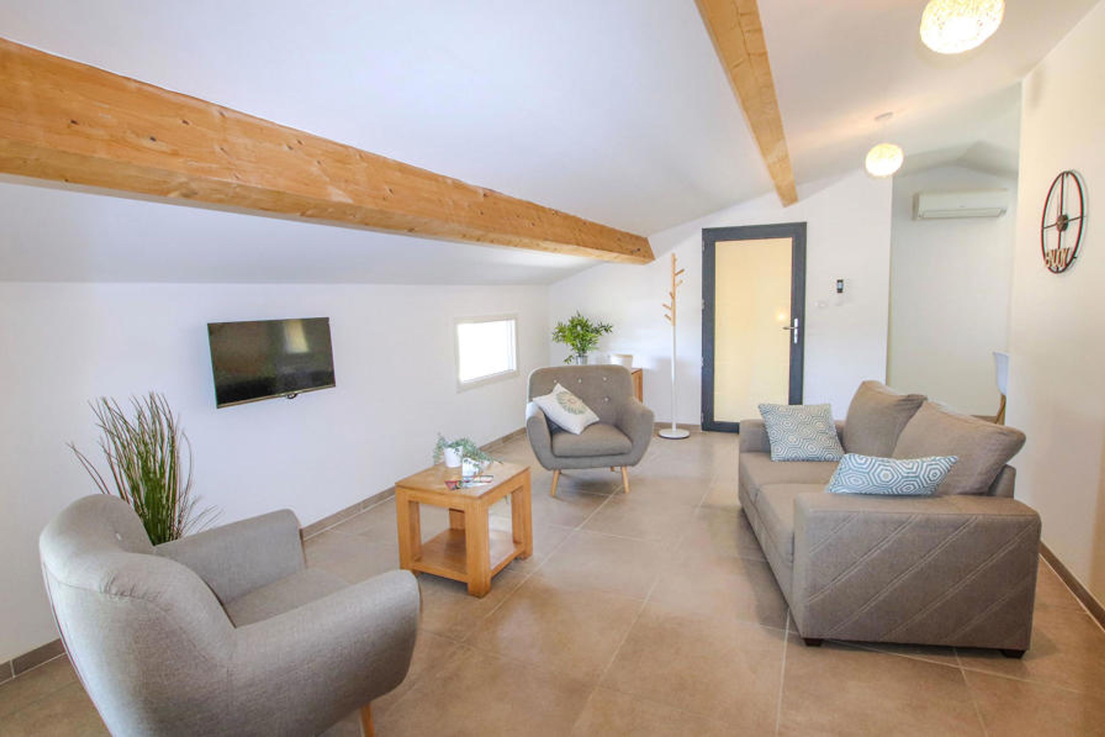 On the outskirts of the charming village of Montboucher sur Jabron, adjacent to a traditional Provençal farmhouse, lies this beautiful modern house with lovely private pool and large sun terrace surrounded by lavender fields. The well-kept and refined interior is cozy, warm and clear and consists of noble materials that are welcoming, relaxing and comfortable and will make you feel truly at home.