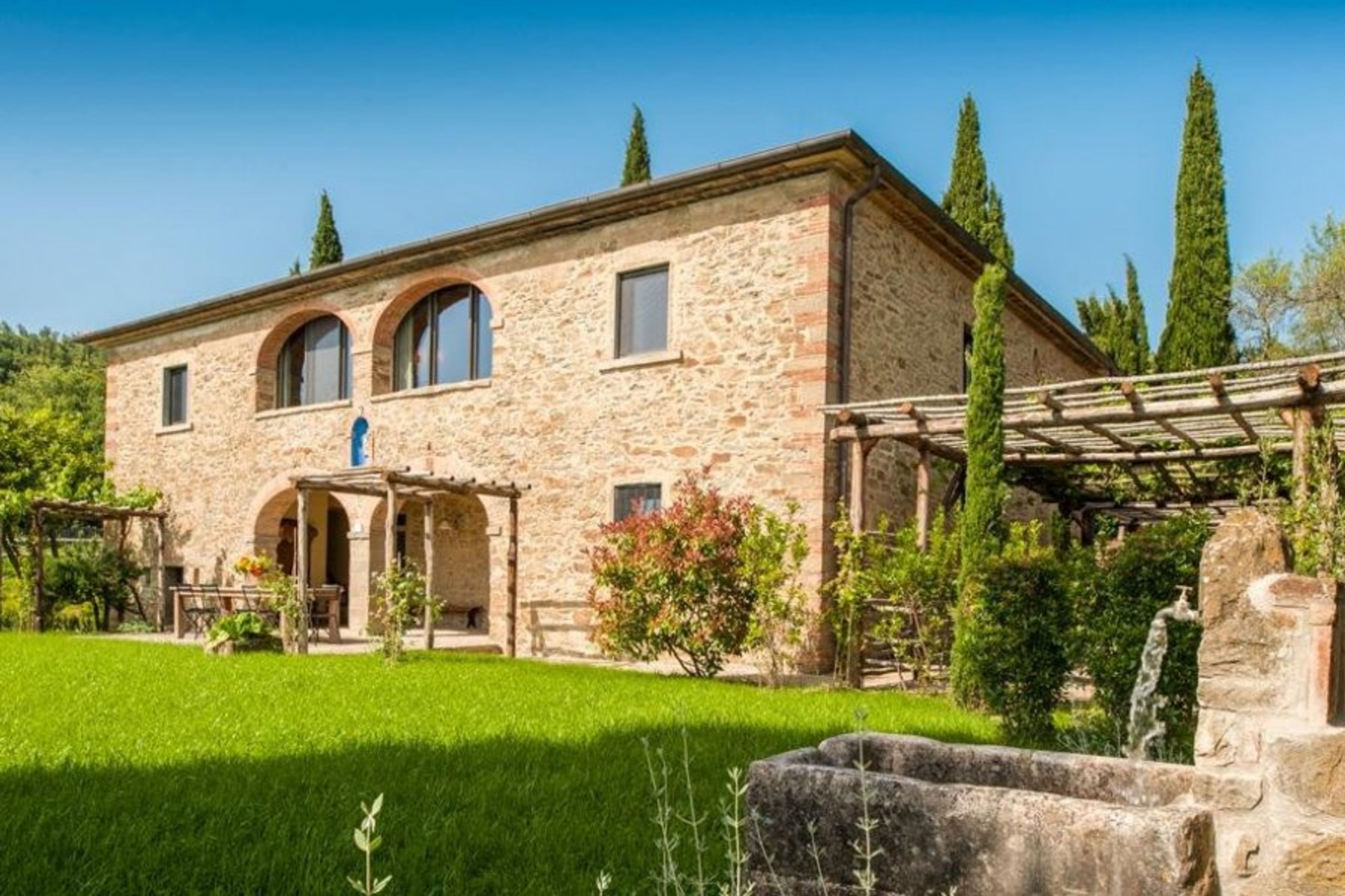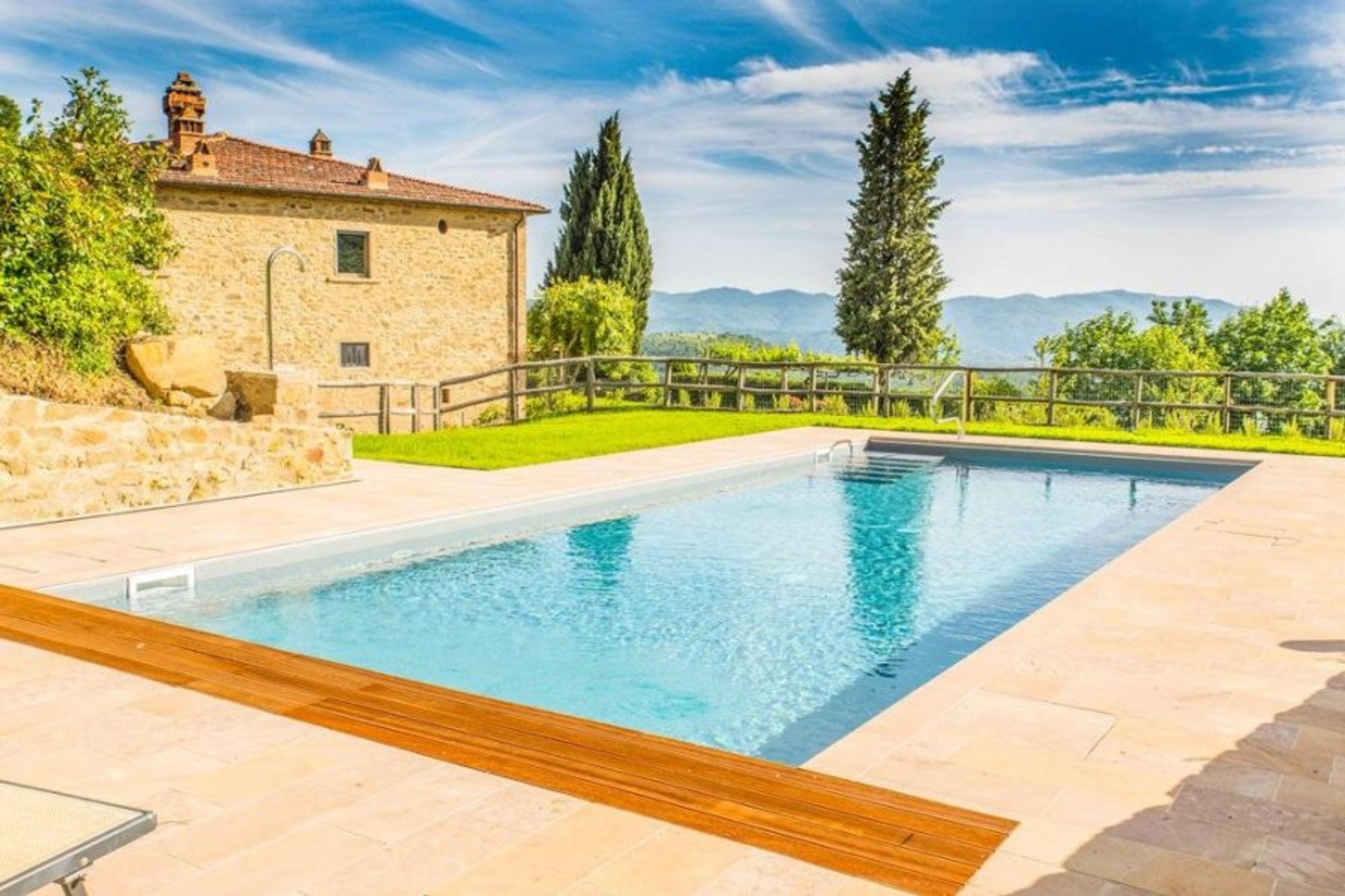 Cosmic Villas is pleased to showcase this stunning stone property set within 5000m2 of lush gardens with views of the rolling Tuscan hills. The house was built in the late 1800s.