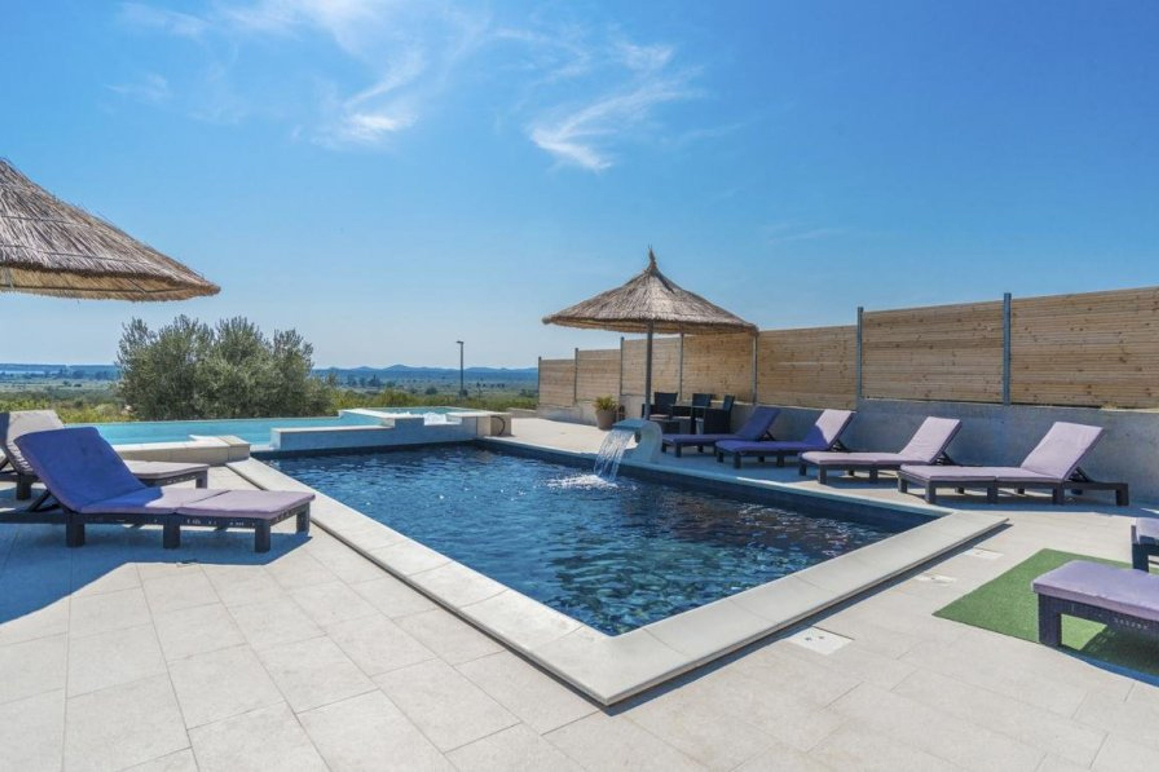 Beautiful views of Lake Vrana and the pool area, which has separate pools for adults and children as well as a whirlpool for six people, are available from the terrace on the top floor.