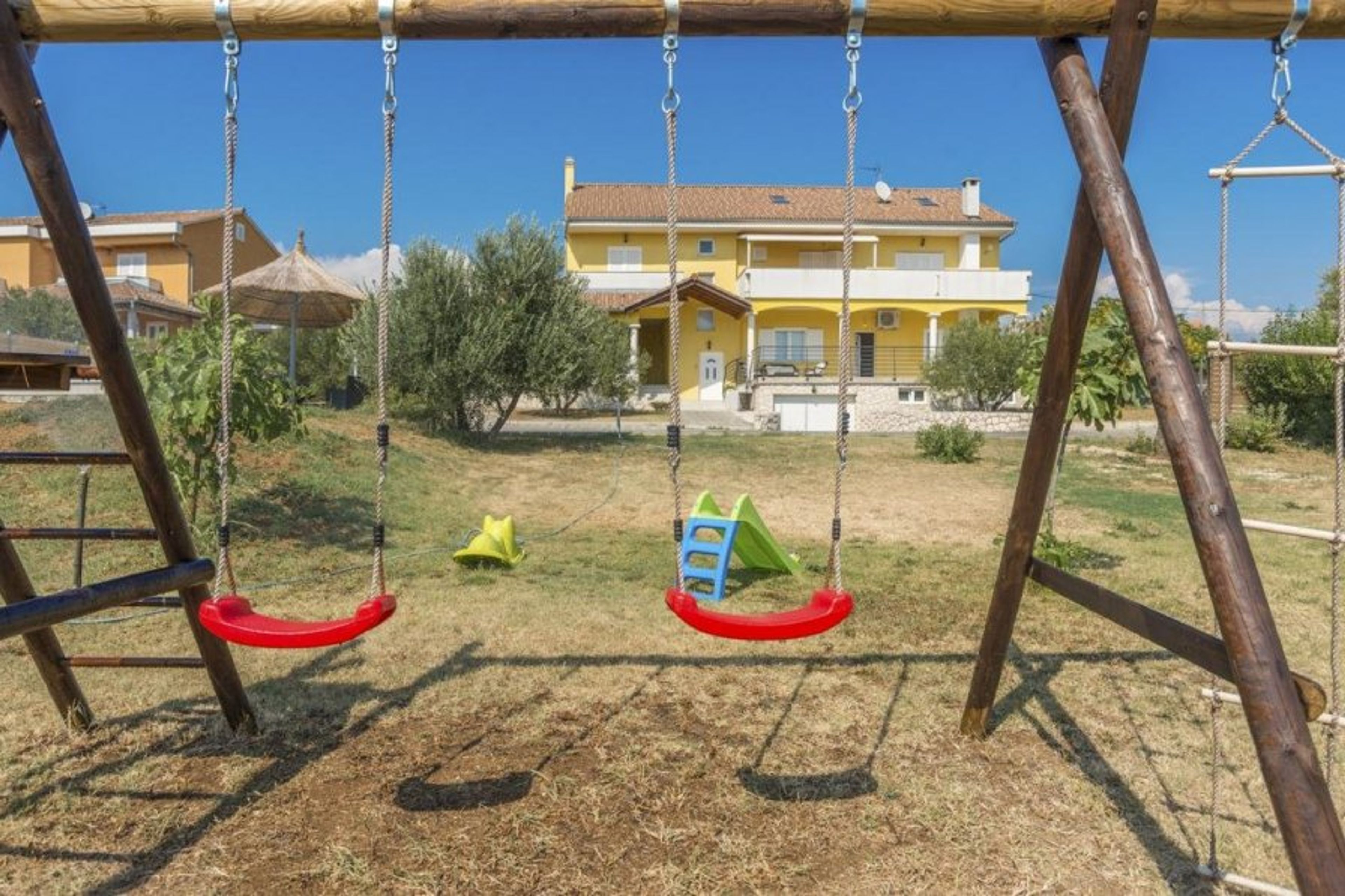 There is a small playground area with a swing set, a small seesaw, and a slide that young children will enjoy, as well as lots of room for running around and playing that is safely gated in and away from the pool area.