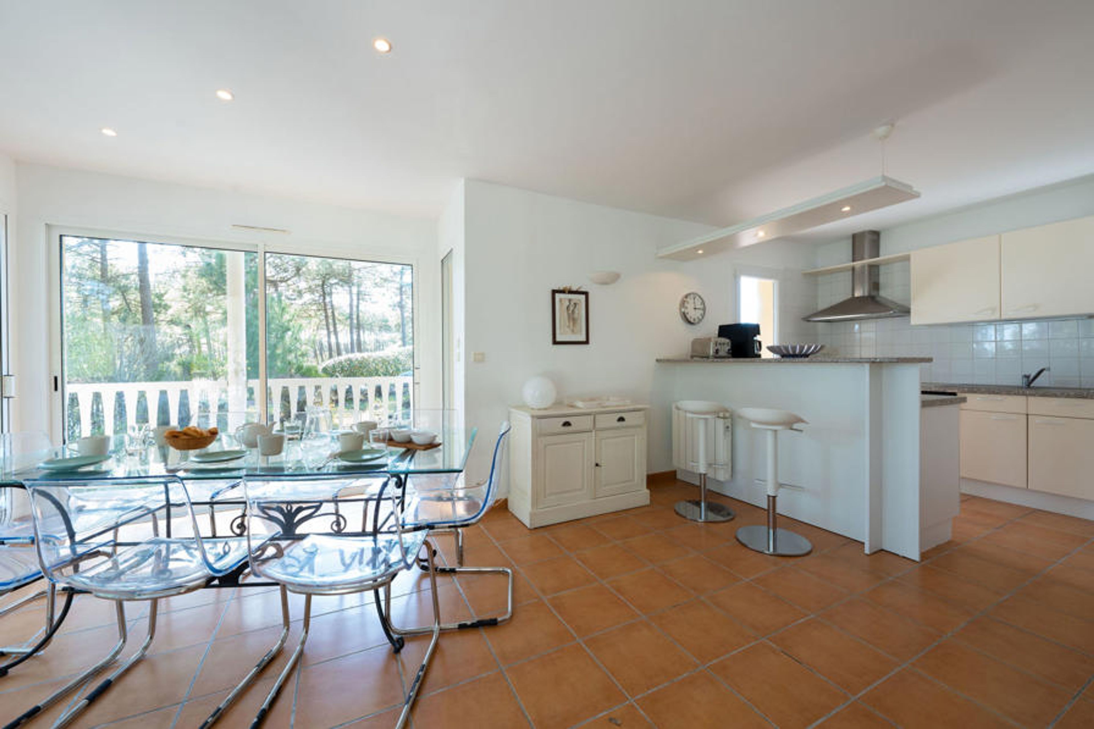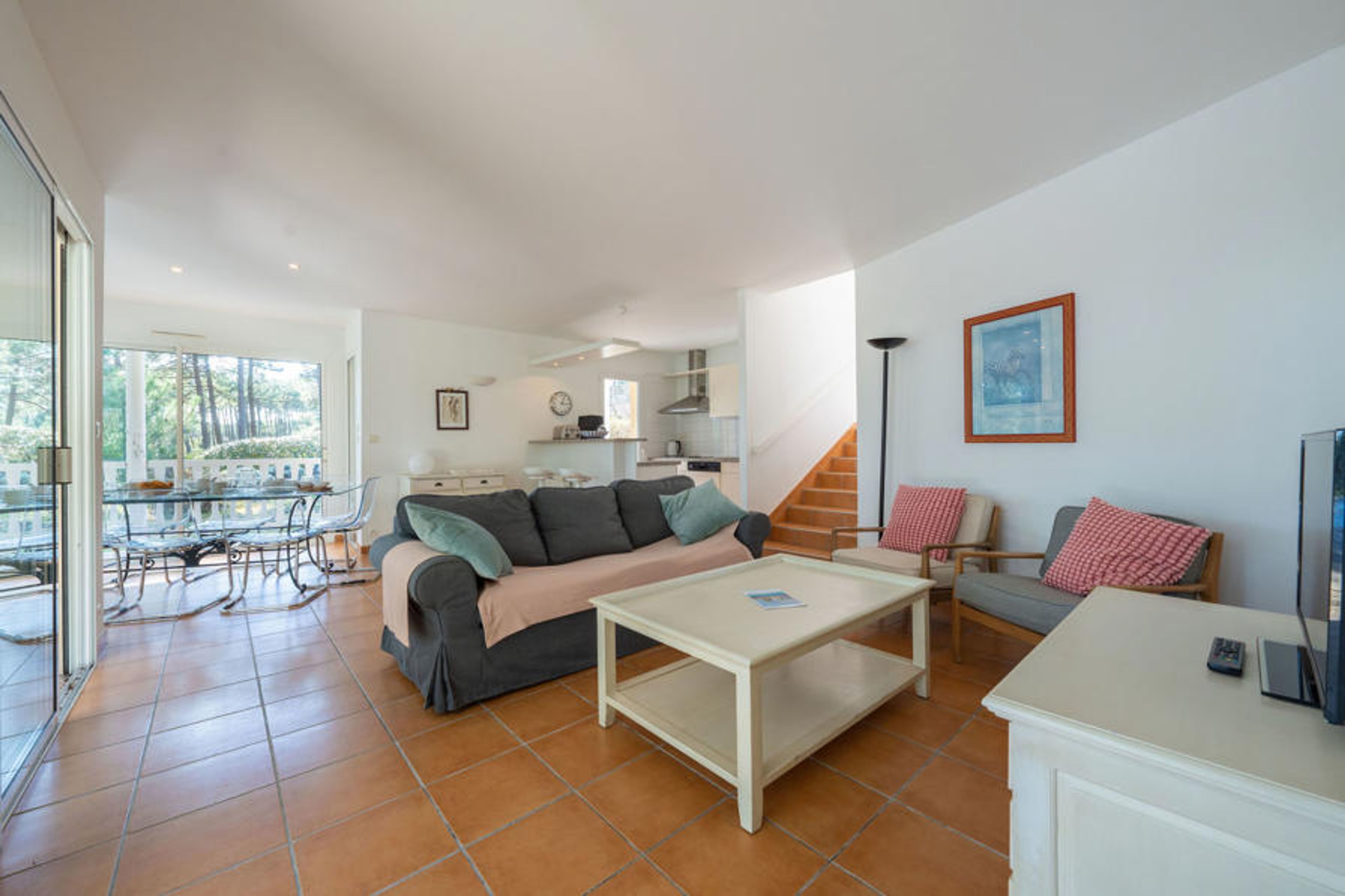 4-room villa 95 m2. Comfortable furnishings: living/dining room with TV (flat screen). Exit to the swimming pool. 1 room with 1 french bed (160 cm, length 200 cm). 1 room with 2 beds (80 cm, length 200 cm). 1 room with 2 beds (90 cm, length 200 cm). Kitchen (oven, dishwasher, 4 ceramic glass hob hotplates, toaster, kettle, microwave, electric coffee machine). Bath/shower, shower, 2 sep. WC's. Heating. Terrace 60 m2, roofed, south facing position and, east facing position terrace 50 m2, south facing position and, east facing position. Terrace furniture, deck chairs (6). View of the swimming pool, the garden and the forest. Facilities: washing machine, dryer. Internet (WiFi, free). Parking (fenced). Please note: non-smokers only. Maximum 1 pet/ dog allowed. Smoke alarm. Offer by a private individual according to Art. 155, IV of CGI.