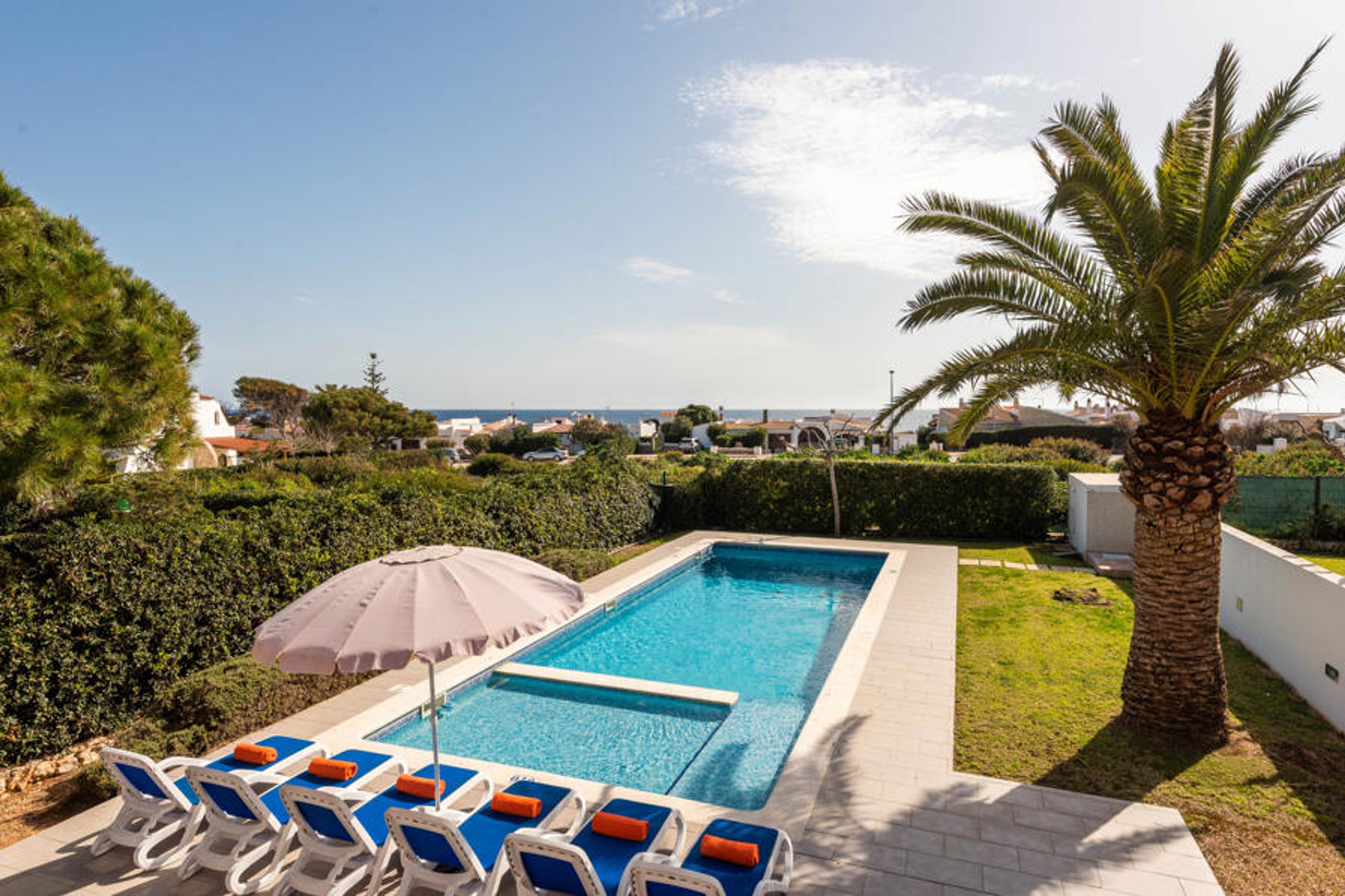 Villa Emily is a villa with a modern style inside while maintaining its classic features. The villa has a double bedroom and two bedrooms with two single beds each. The villa has air conditioning in the living room and in the bedrooms. It has two complete bathrooms, one with a bathtub and the other with a shower, the living-dining room has a television with international channels and DVD, a fully equipped kitchen with a ceramic hob, dishwasher, microwave, electric oven and fridge. It has a laundry area with washing machine and clothesline. The terrace is fully furnished to spend pleasant summer nights. The villa can accommodate up to 6 people with a private pool and barbecue.