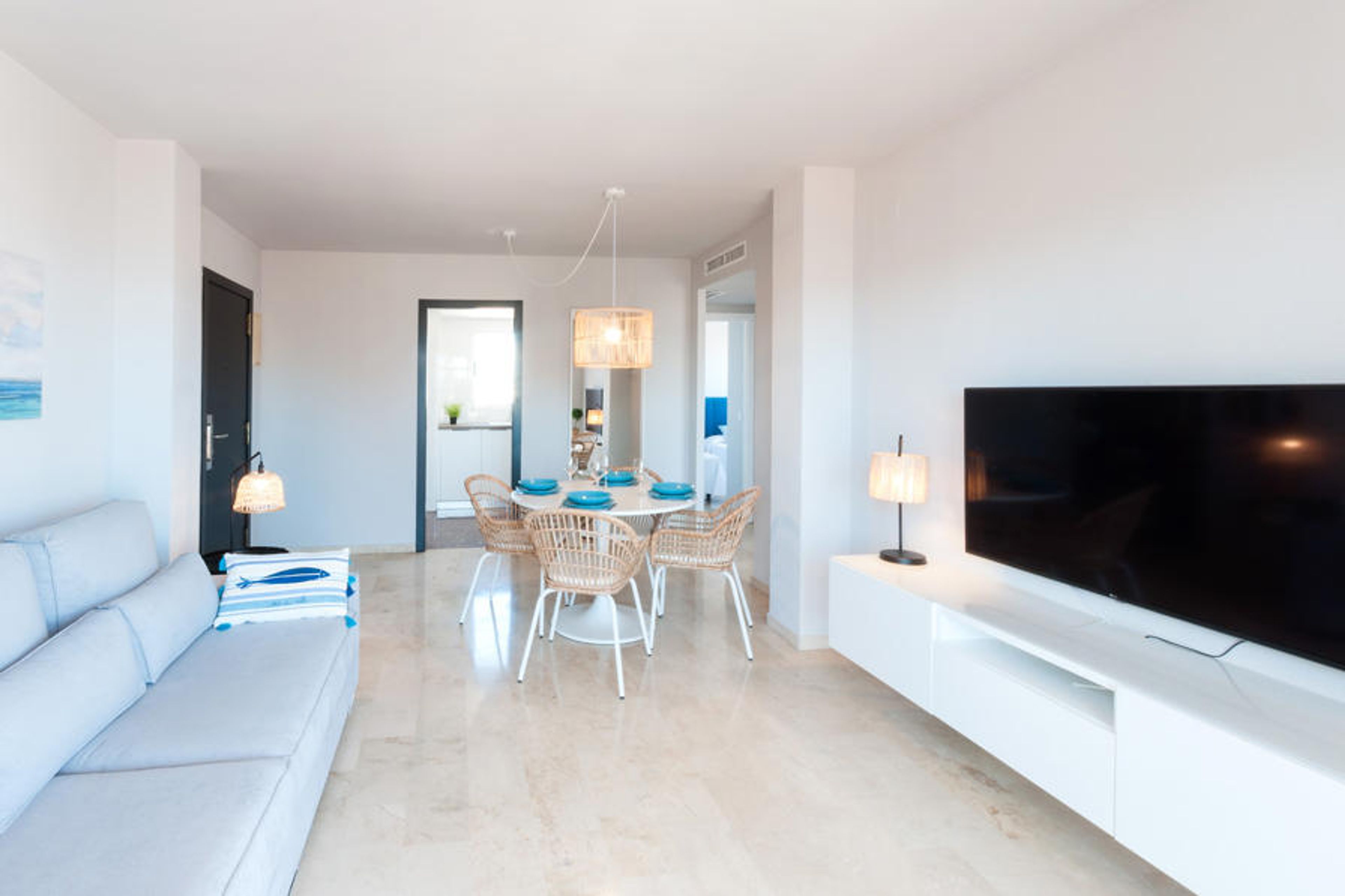 When we open the door of the apartment we find the living room, an open and spacious area where you will be very comfortable. It´s got a sofa of 2.80m large and with of 110cm where a child could sleep (it is not a sofa bed). In front of the sofa, a 49 "television with international satellite channels (Languages: Spanish, English, German, French, Russian).