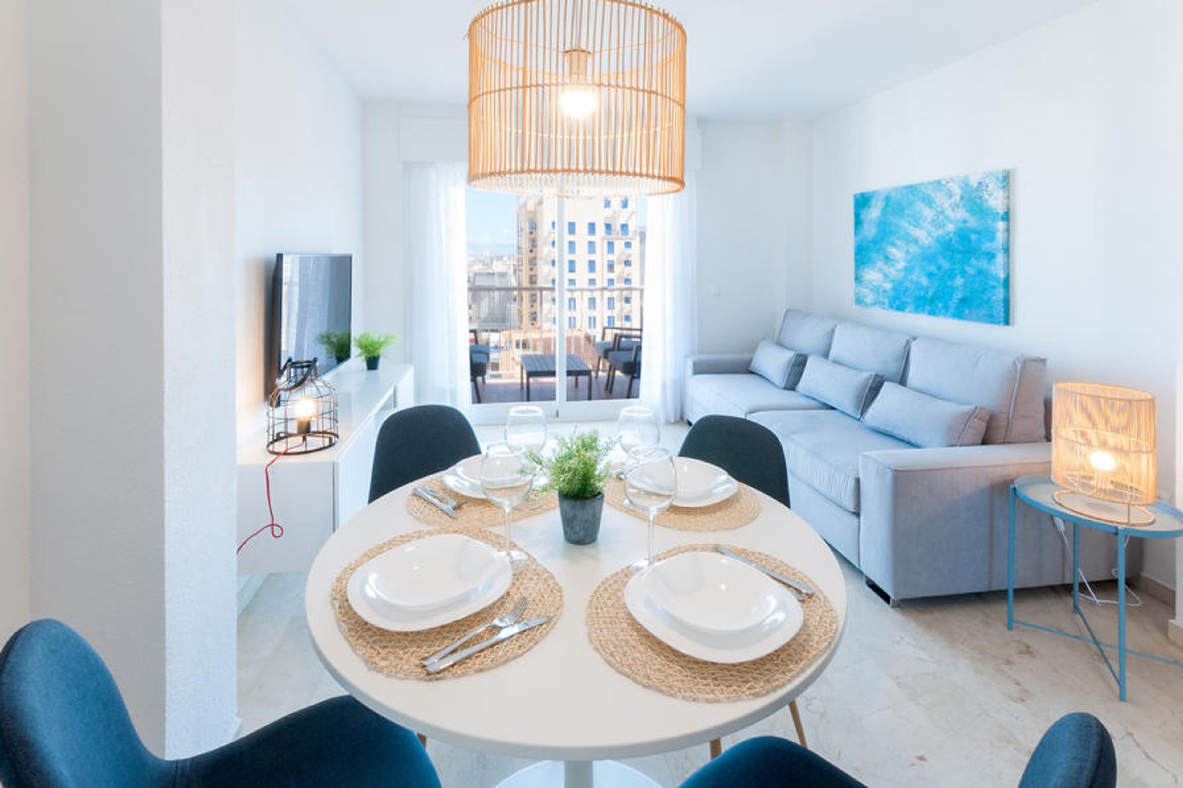 When we open the door of the apartment we find the living room, an open and spacious area where you will be very comfortable. It´s got a sofa of 2.80m large and with of 110cm where a child could sleep (it is not a sofa bed). In front of the sofa, a 49 "television with international satellite channels (Languages: Spanish, English, German, French, Russian).