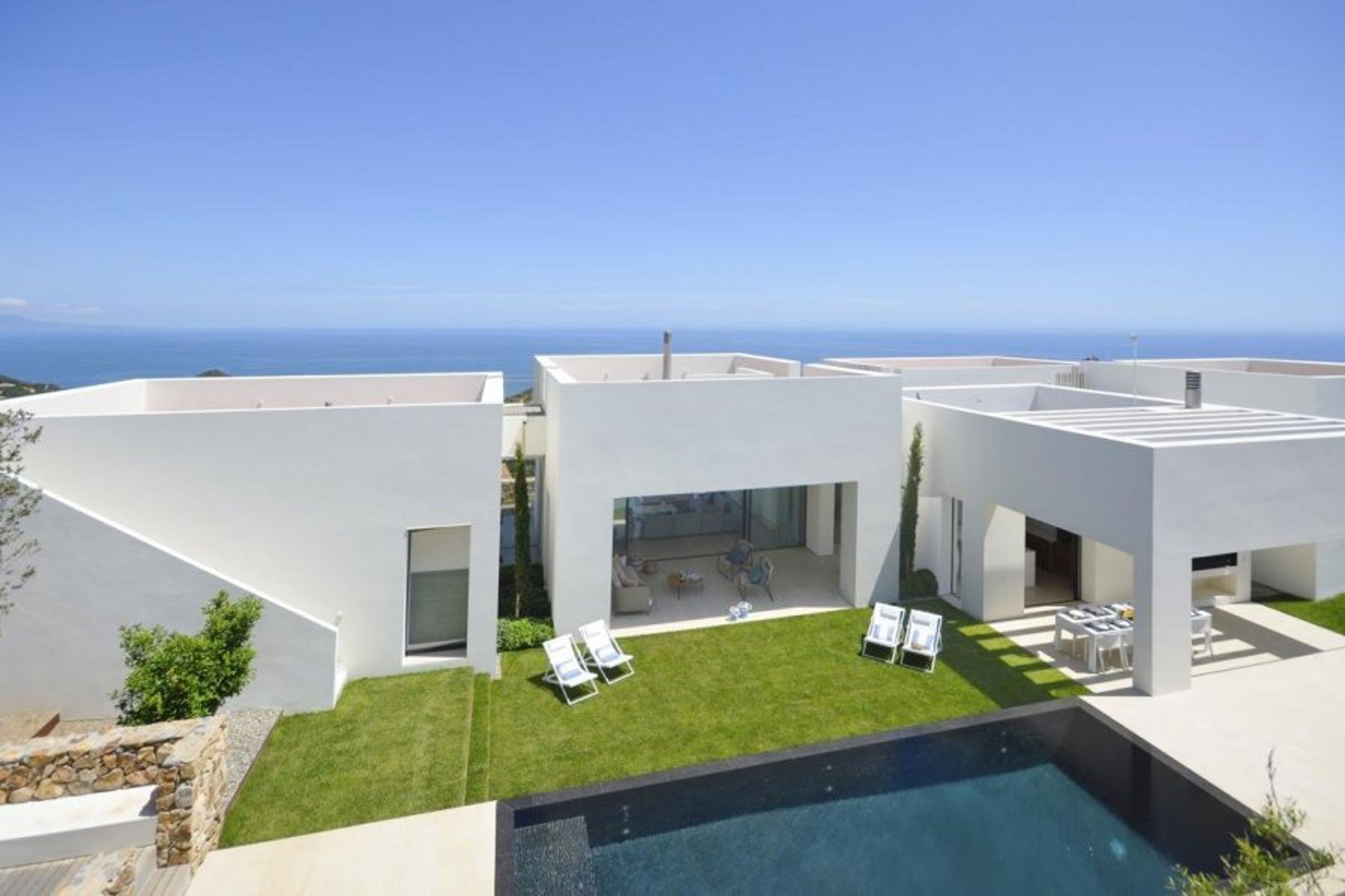 Starting with the garden and outdoor areas, immediately drawing any attention is the vast outdoor pool. The clear waters glinting in the sunlight are just daring you to make a splash. From the pool you really get a feel for the entire area, surrounded by gorgeous natural beauty ranging from the nearby hillside to the beautiful sea view. The best view is from the living area, which has been cleverly built as a dual living area, with one half being enclosed by the poolside separated from the inner property simply by a large sliding glass door. The inner living area is simply breath taking, the sea facing wall has been nearly entirely replaced by floor to ceiling glass windows. Beyond that, is a stunning panoramic view of the Mediterranean horizon. You can absorb this wonder from the luxurious sofa or, you can simply stay in the pool and look through the room!