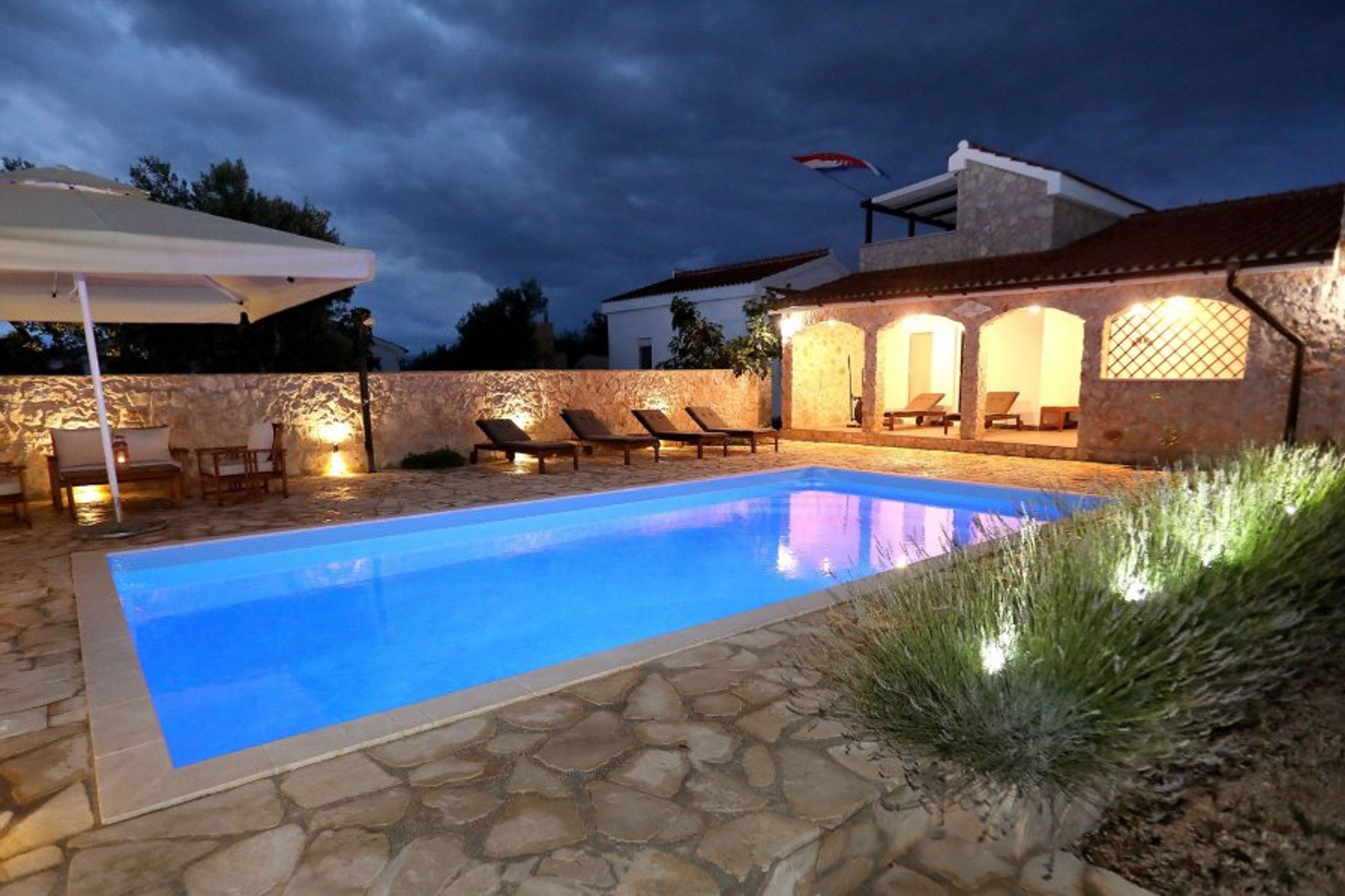 House with a swimming pool on the island of Drvenik Mali, a beautiful, and peaceful place. The house is about 150 meters from the beautiful sea. It consists of three bedrooms, a living room with kitchen and a dining room and two bathrooms. The best part of the house is the covered terrace with an open fireplace and stone grill. You will surely enjoy spending your evenings there!