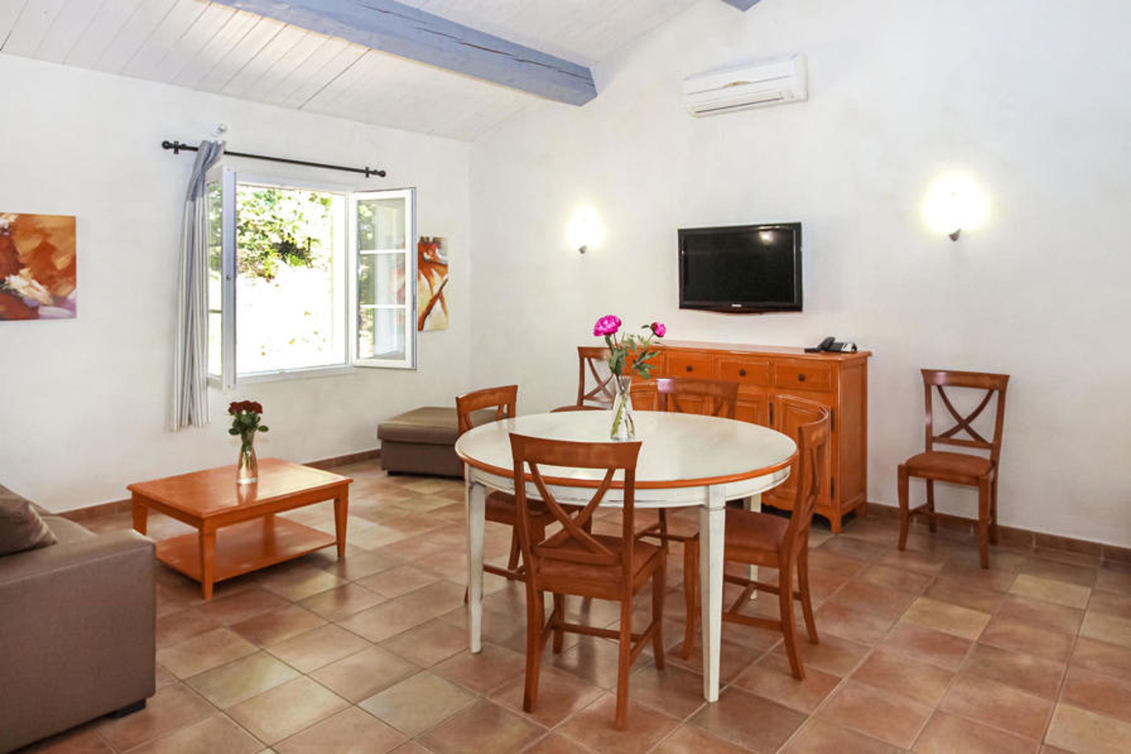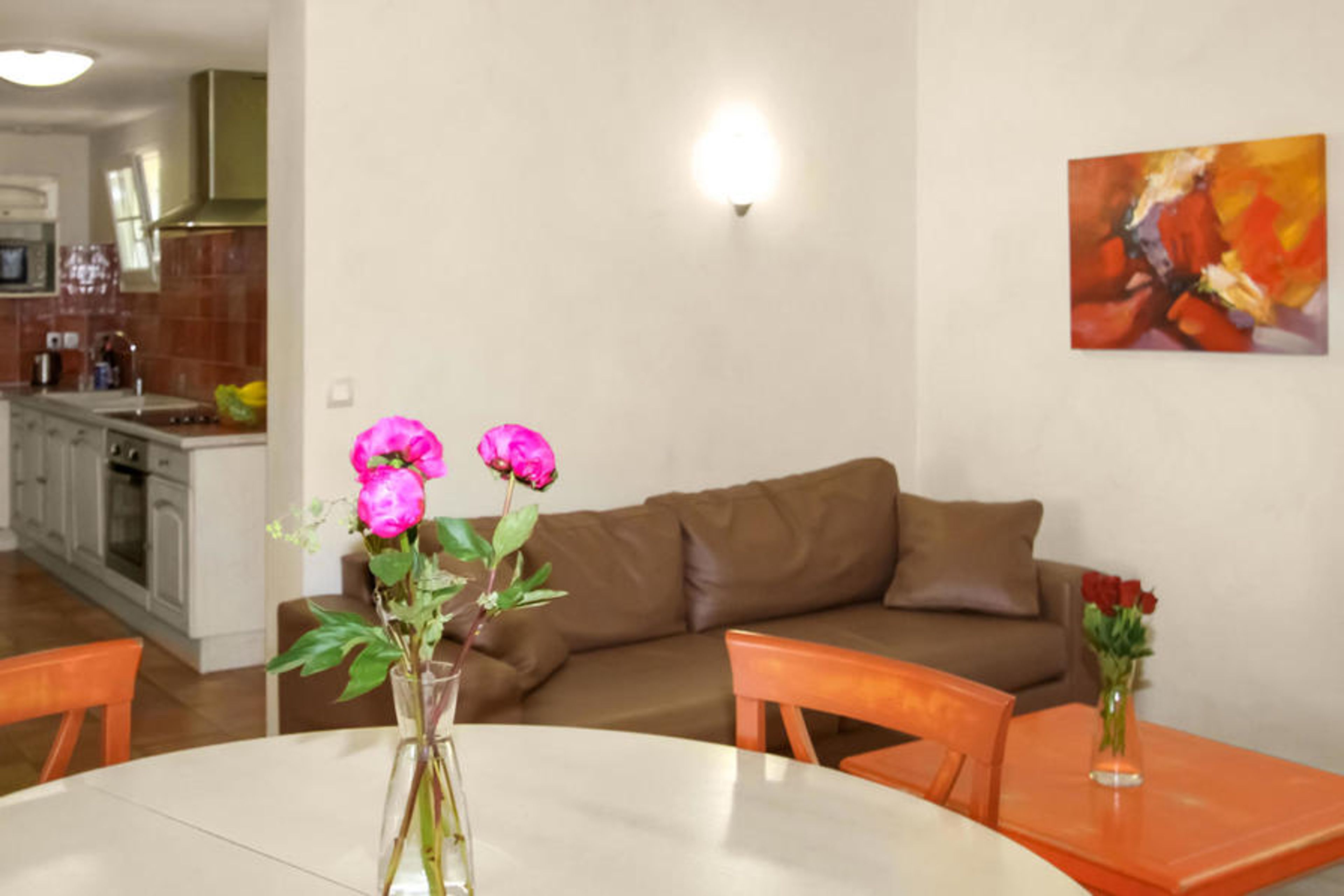 The attractive house welcomes you in a dreamlike panoramic location, perfect for undisturbed vacation relaxation in Provence. The vacation home enchants in the bright rooms with a tasteful interior in friendly colors. Enjoy here to the fullest your time together in a stylish ambience. Keep the vacation pounds at bay in the fitness room and settle down on comfortable sofas in the evening to sit together in comfort for a long time after an active day and chat late into the evening.
