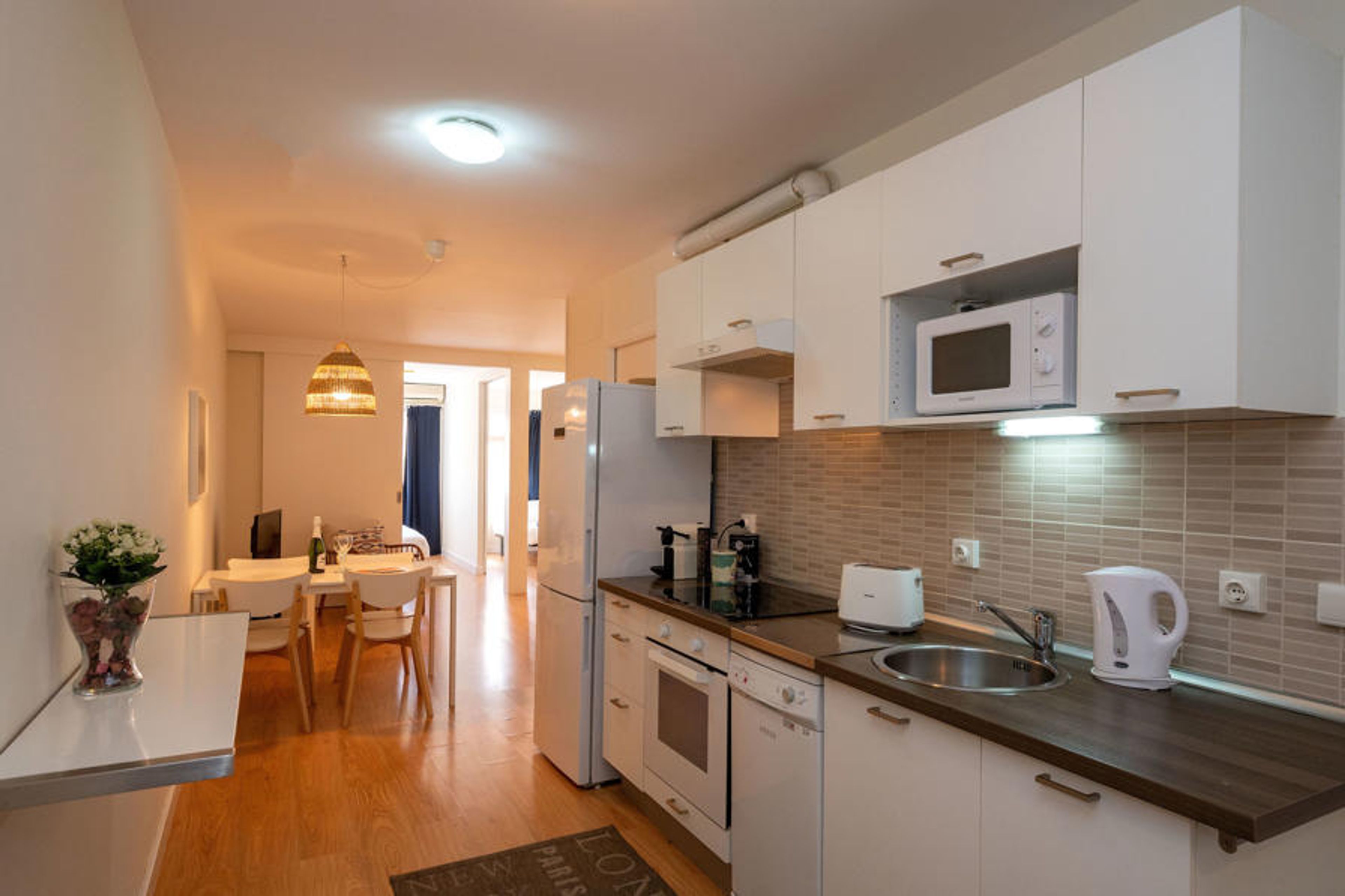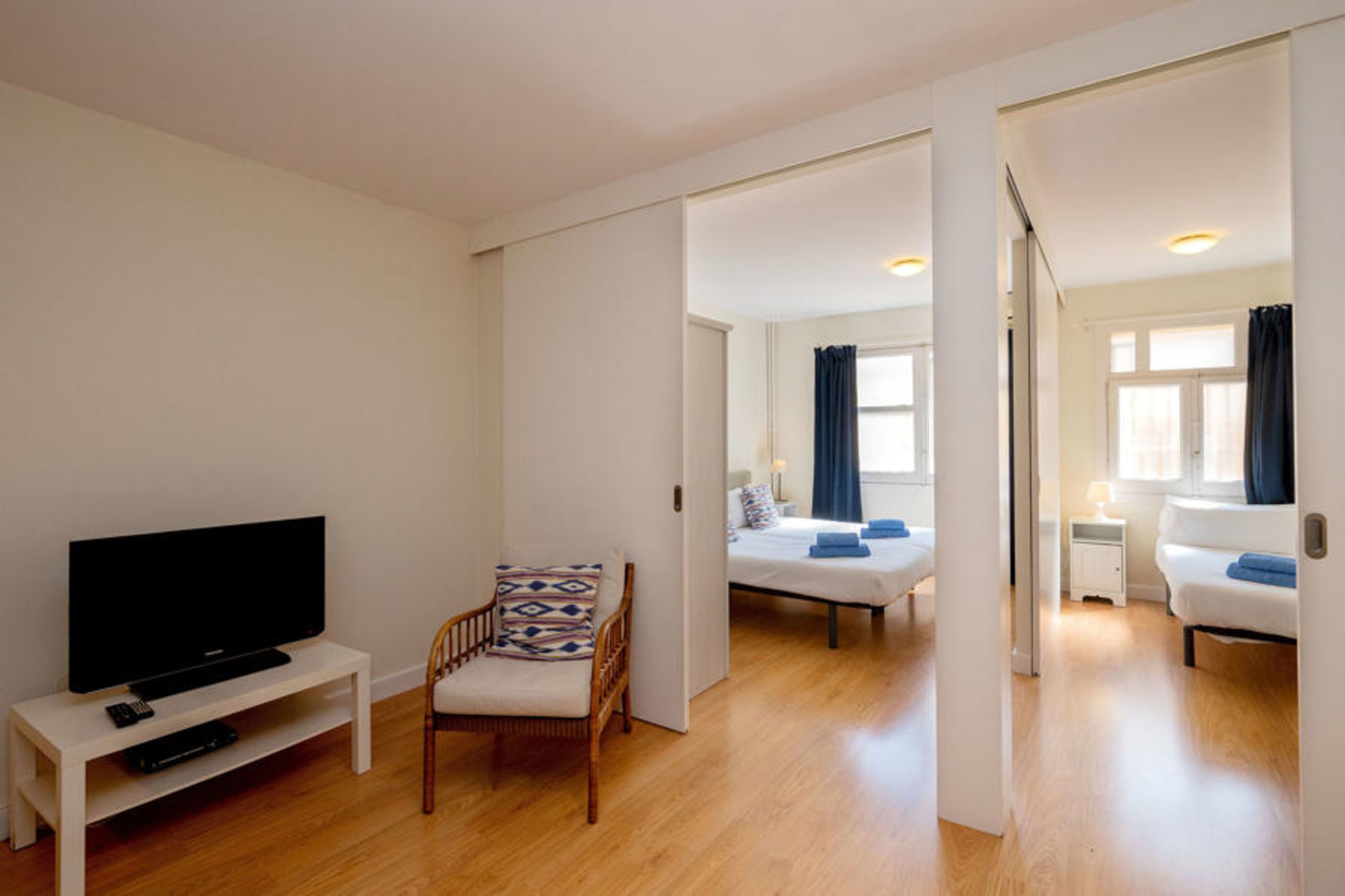 "Sagrada Familia: Rossello", 3-room apartment 54 m2 on 1st floor. Practical and modern furnishings: living/dining room with 1 double sofabed (150 cm, length 200 cm), dining table, digital TV and electric heating. 1 room with 2 beds (90 cm, length 190 cm), electric heating and air conditioning. 1 room with 1 bed (90 cm, length 190 cm). Open kitchen (oven, dishwasher, 3 induction hot plates, toaster, kettle, microwave). Shower/WC. Facilities: washing machine, iron, hair dryer. Internet (WiFi, free). Suitable for families. HUTB-002103 // Reg. Nr.: ESFCTU00000807300005783300000000000000000HUTB-0021032
