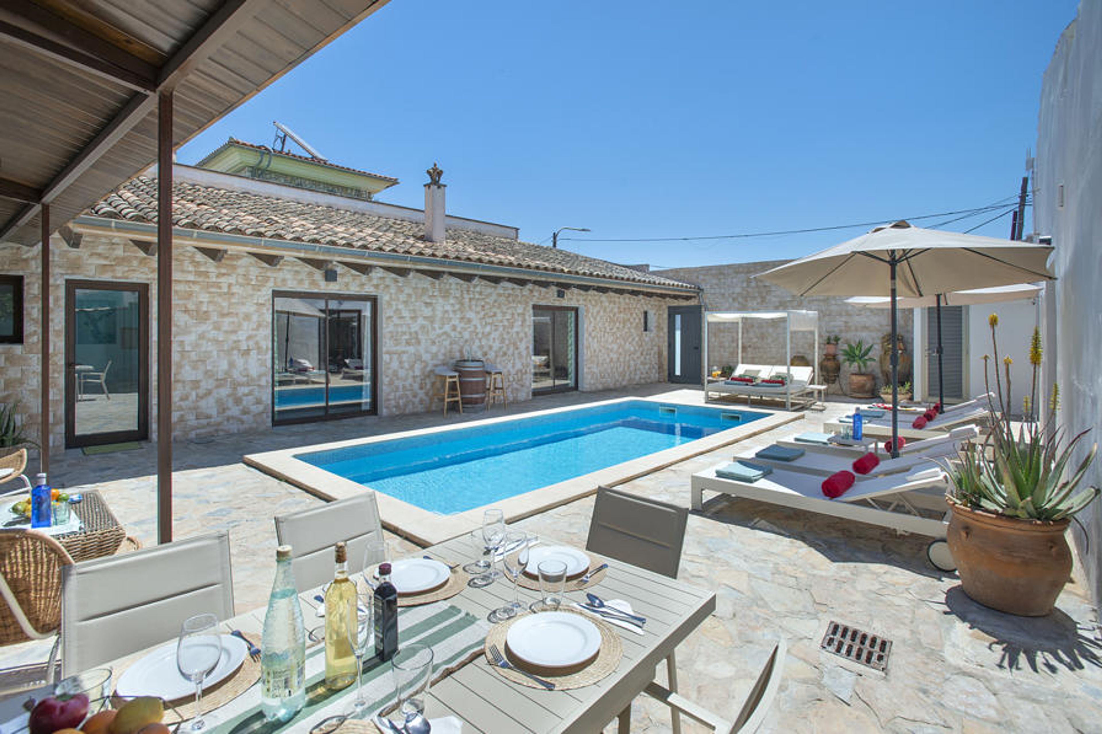 Villa Frida is a spacious village villa with a large terrace and swimming pool, perfectly combining modern design with historic charm. Located just 11 minutes by car from the beautiful beaches of Alcudia and Playa de Muro, and 12 minutes from the old town of Pollensa, it is undoubtedly a unique option for enjoying unforgettable holidays.