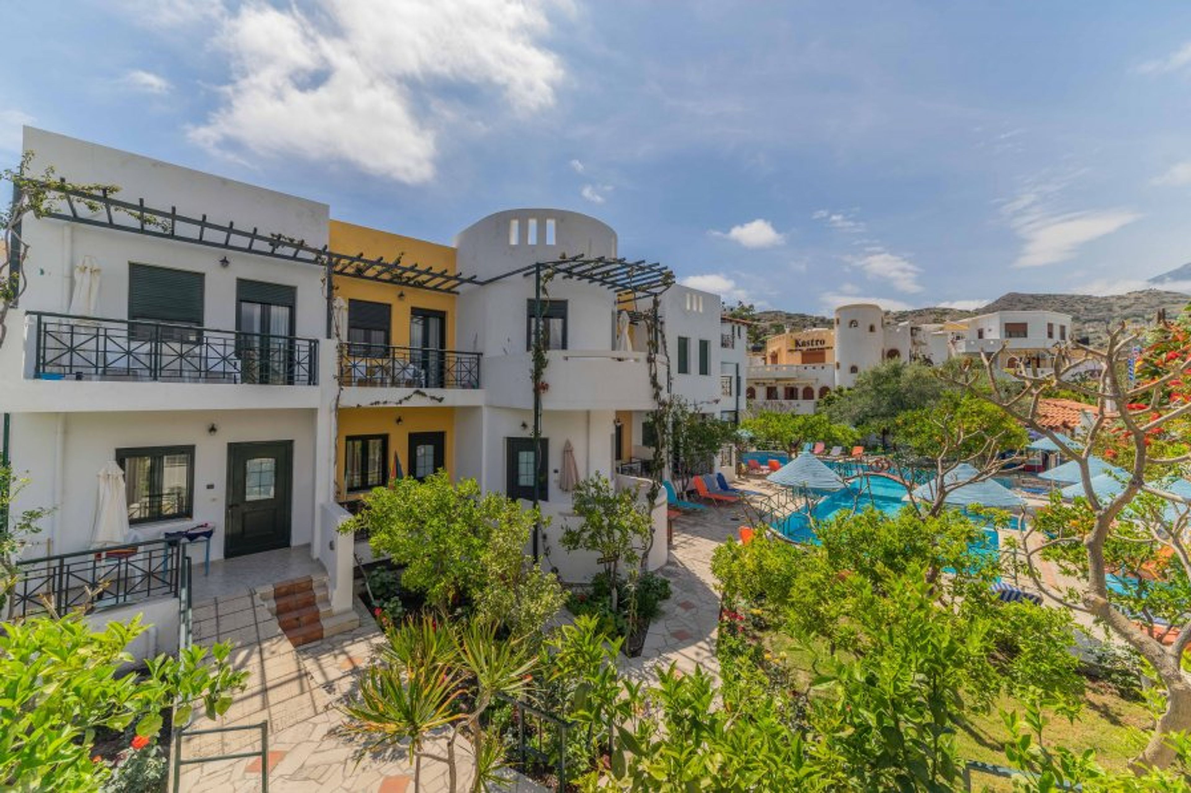 KASTRO studios & apts is a block of furnished apartments which has been built, by hack value, among a 2000 square metres beautiful garden at the edge of the village, 150m from the sea. It consists of 3 buildings,2 traditional and 1 modern.