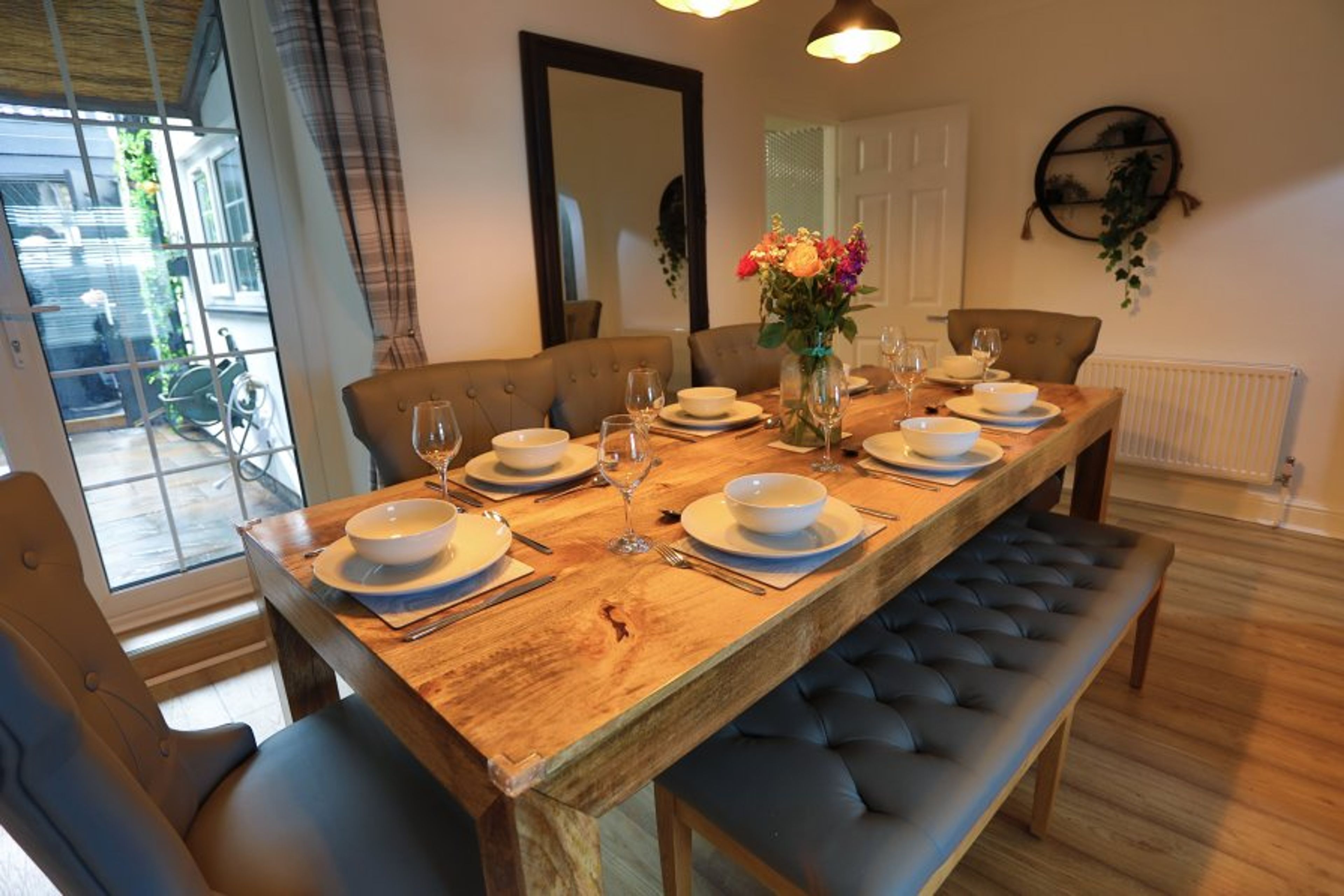 Upon arrival, you’ll be greeted by a cosy, inviting living space. The lounge features a range of wooden units in keeping with the traditional style of the cottage, comfortable sofas, a Smart Tv & a large dining area for your party to enjoy spending time together while making those precious memories. Our kitchen is fully equipped for those who want to share their culinary delights, or you can order food from next door at Café creations and let them do the hard work for you. Our dining area is the perfect space for entertaining, whether that be sharing a meal or enjoying our collection of board games with something for the whole family. Our large luxury dining table comfortably seats 8 guests, so whatever the occasion, Meadowview has it all. You will also find that our accessible modern family bathroom and rainfall shower are on the ground floor.