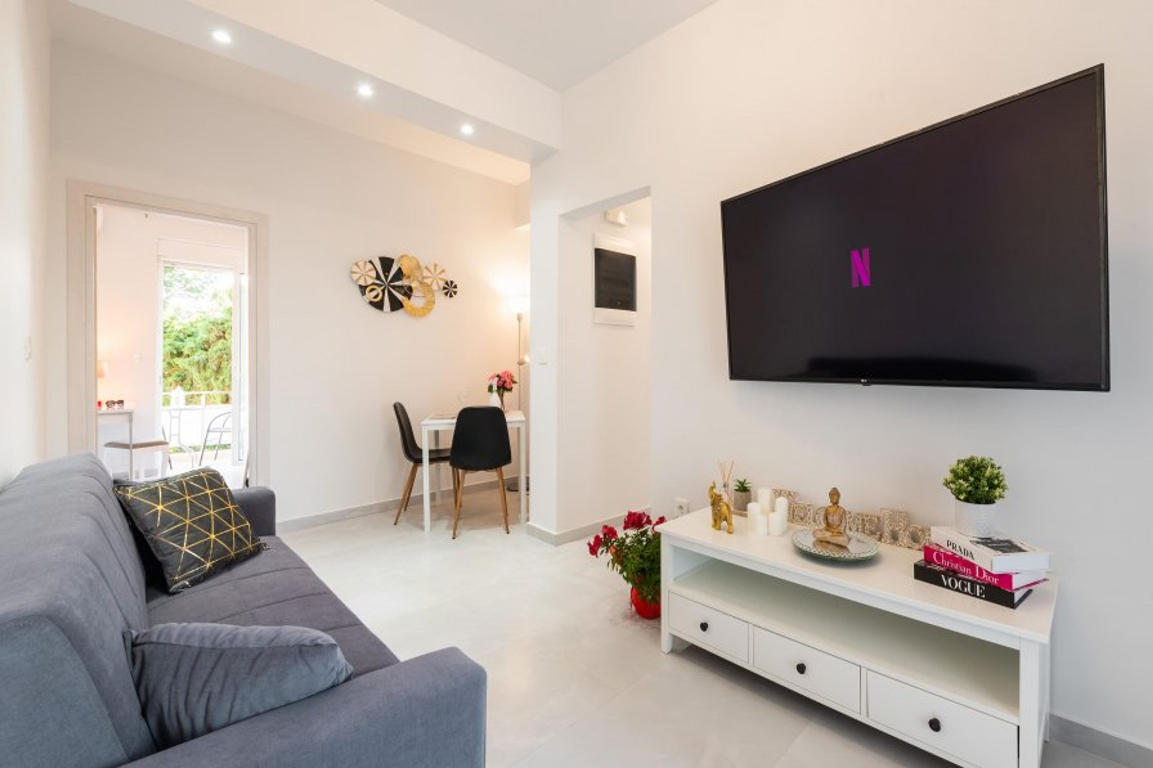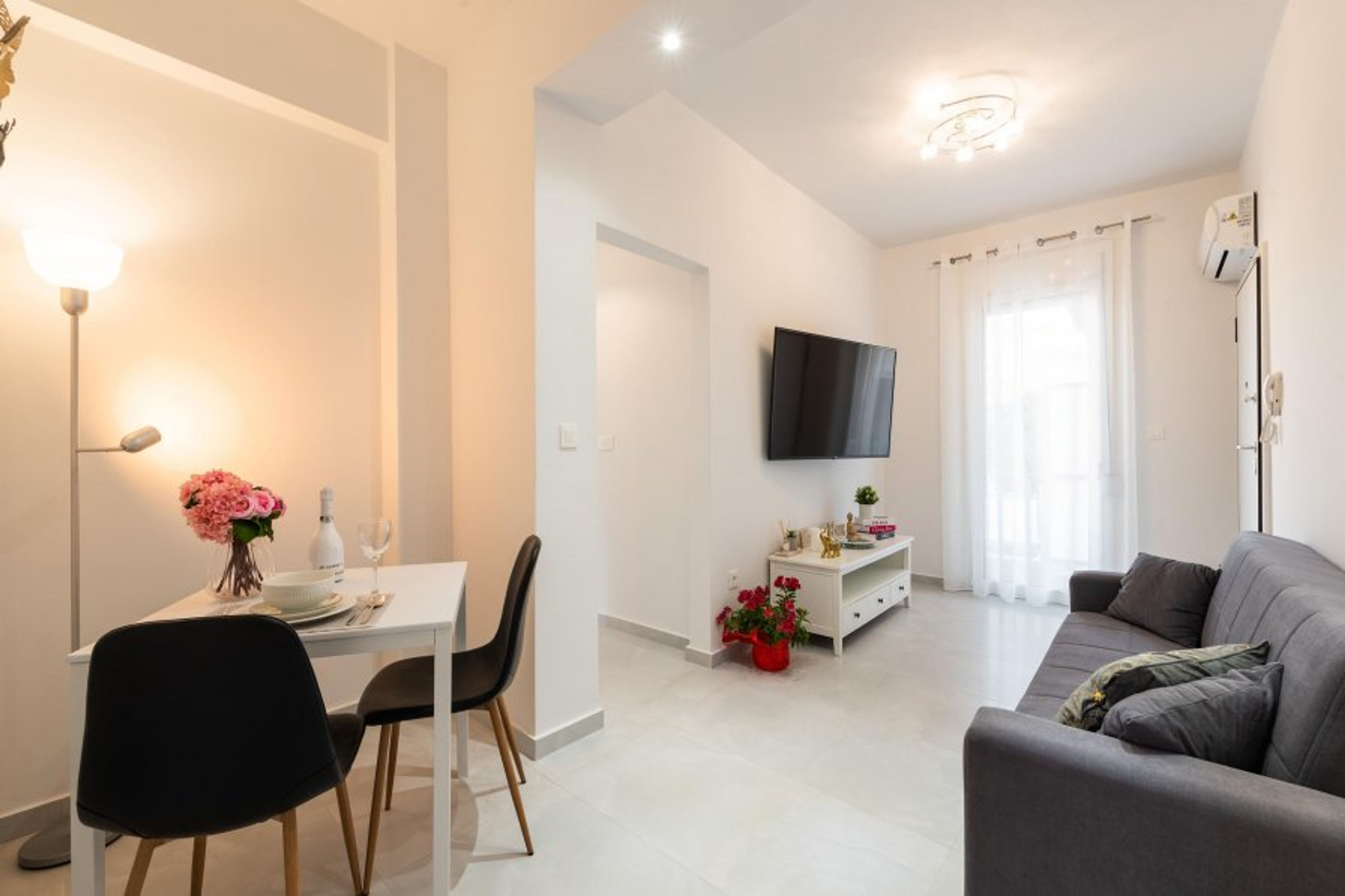 The amazing Sweet dream Apartment is located on the first floor and accommodates up to 5 guests. It has 2 modern bedrooms. One of the bedrooms offers a double bed and the other bedroom offers a single sofa bed that opens up and reveals another single bed. Both bedrooms offer a balcony. Also, there’s a comfy single sofa bed in the living room. There’s a bathroom with a shower. All bedrooms and the living area are fully air-conditioned and one of them has a smart TV. Also, there’s free WIFI access throughout the property and a smart TV in the living room. The apartment has a fully equipped kitchen that is suitable for any meal preparation as well as a sitting area. There’s a comfy living room as well as outdoor furniture, where you can relax while you’re preparing for your next outdoor activities.
