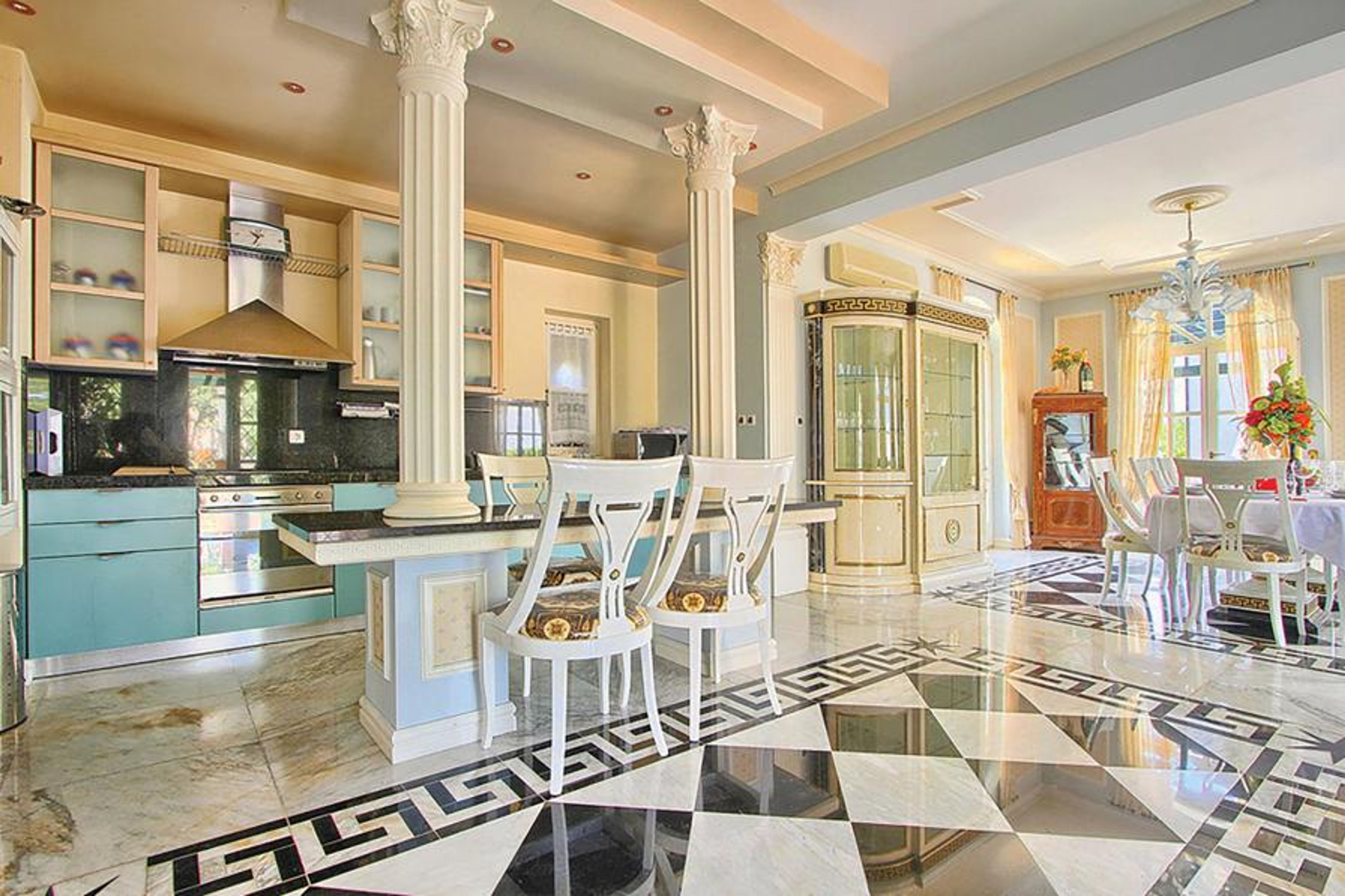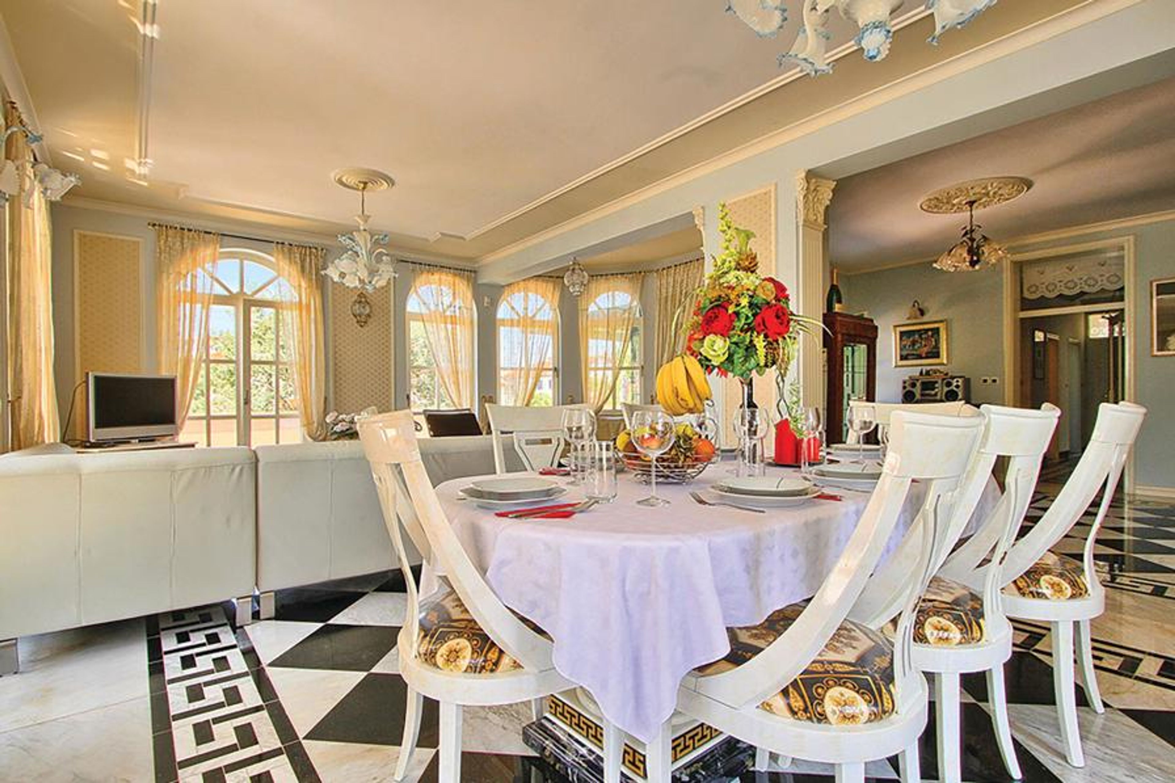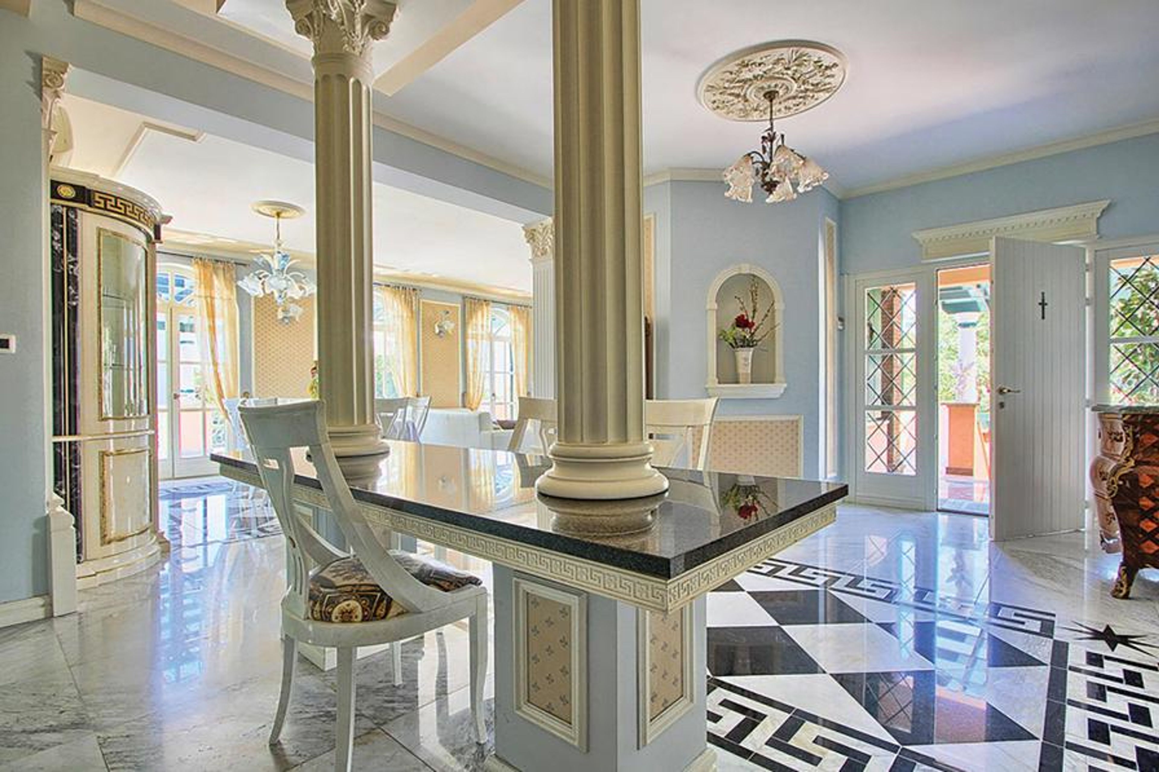 Welcome to the luxurious house that welcomes you in an exclusive residential area. High, bright rooms, the comfortable furnishings, decorative columns and well-kept mosaic floors as well as modern furniture form the framework for a successful time out here. Relax in a stylish ambience, eat together at the long dining table and make yourself comfortable in the sofa area after an eventful day, perhaps with a good movie.