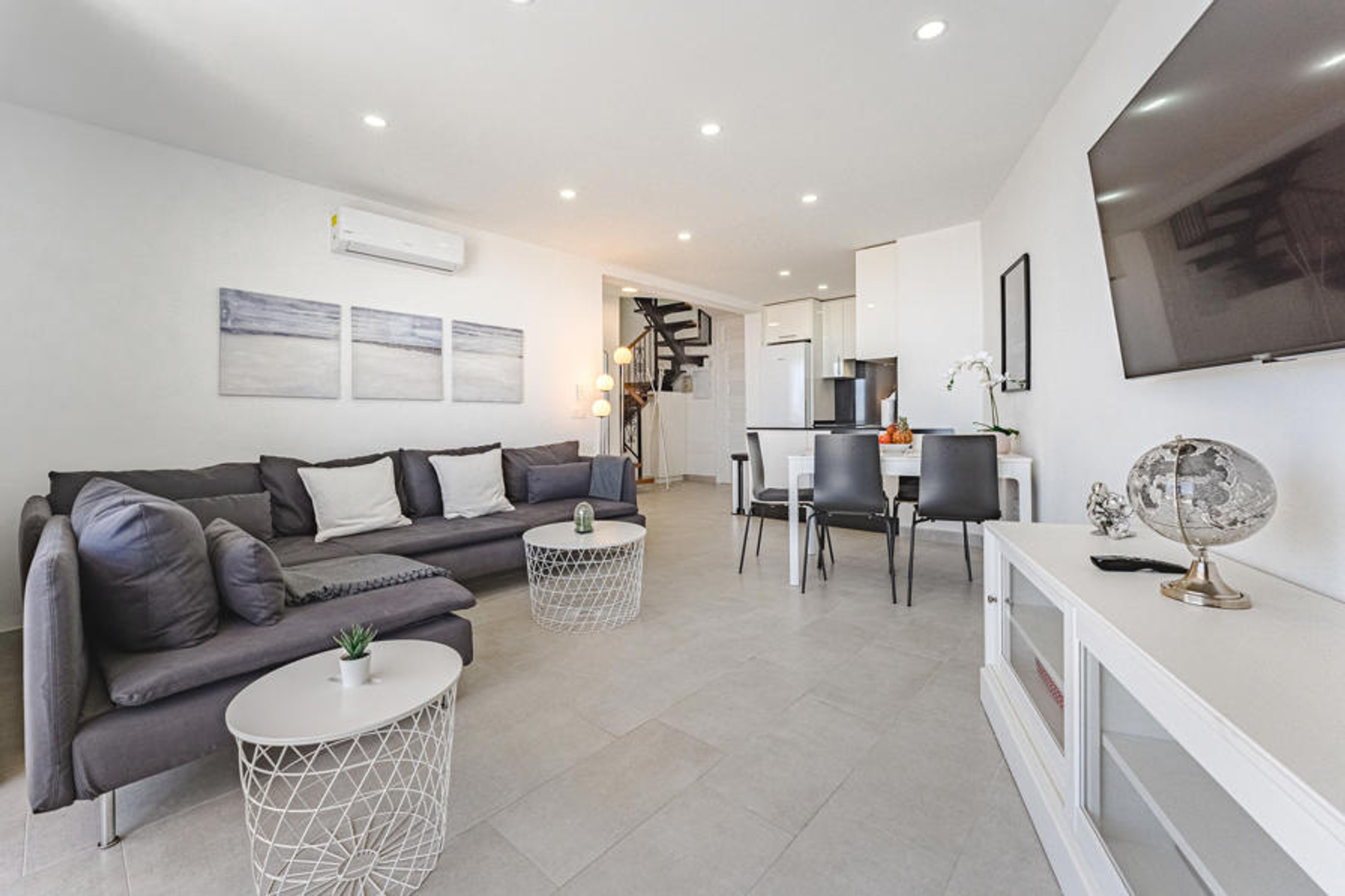 Luxury penthouse suite in a prime location in the tower of the popular Parque Santiago 1 complex, spread over two floors. The apartment has been completely redesigned to a very high standard and is now luxurious, with 3 bedrooms (each with 1 television and 1 air conditioner), 2 bathrooms, 1 living room with a fully equipped American kitchen, fast internet on both levels and a huge terrace with one of the most beautiful views in the south of the island. Heated communal pool in the complex. Please note: We would like to inform our guests that the lift is currently being renovated to make your future stay even more comfortable. During the modernisation, which is expected to last until mid-November, the lift will be temporarily unavailable.