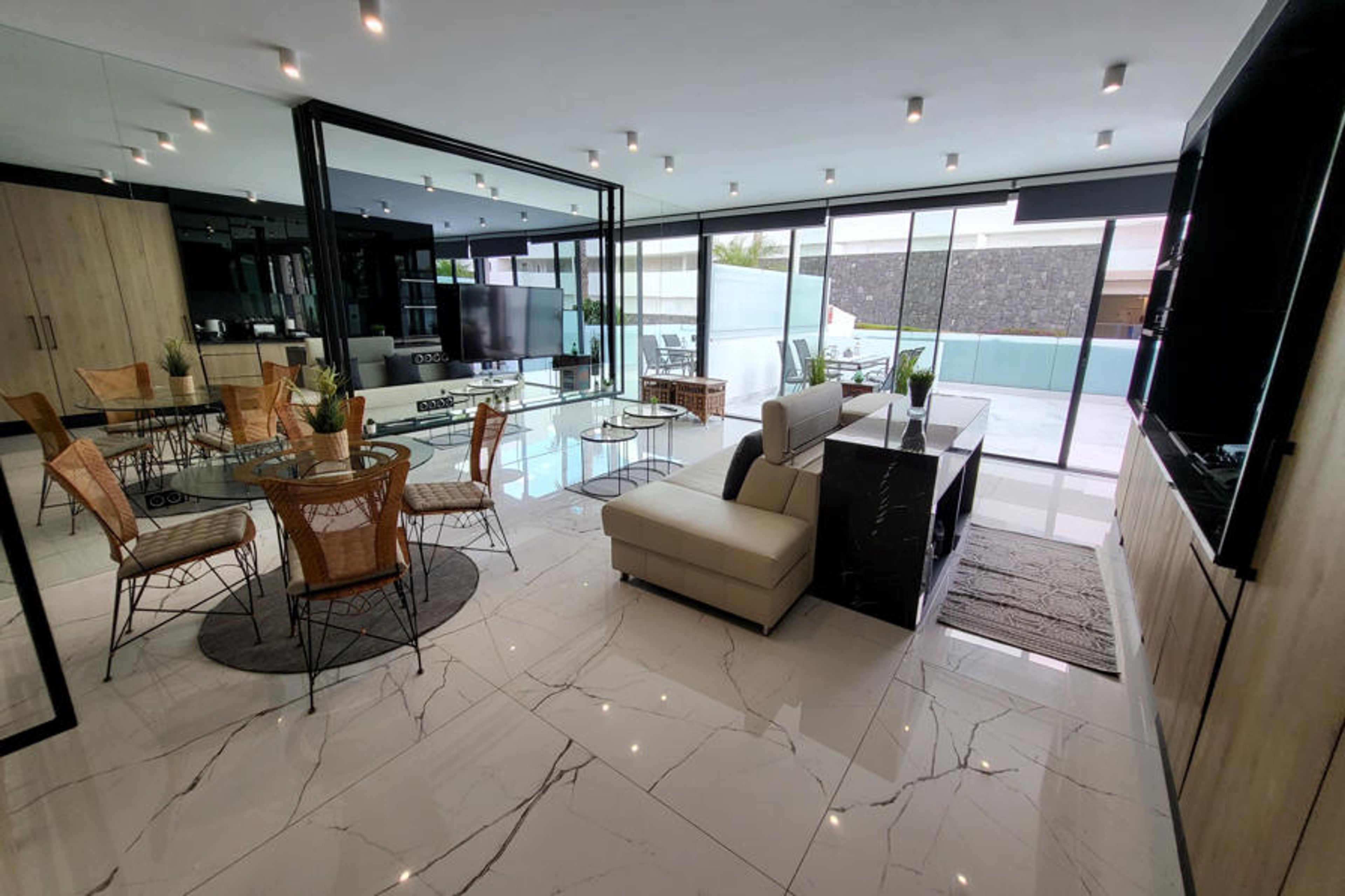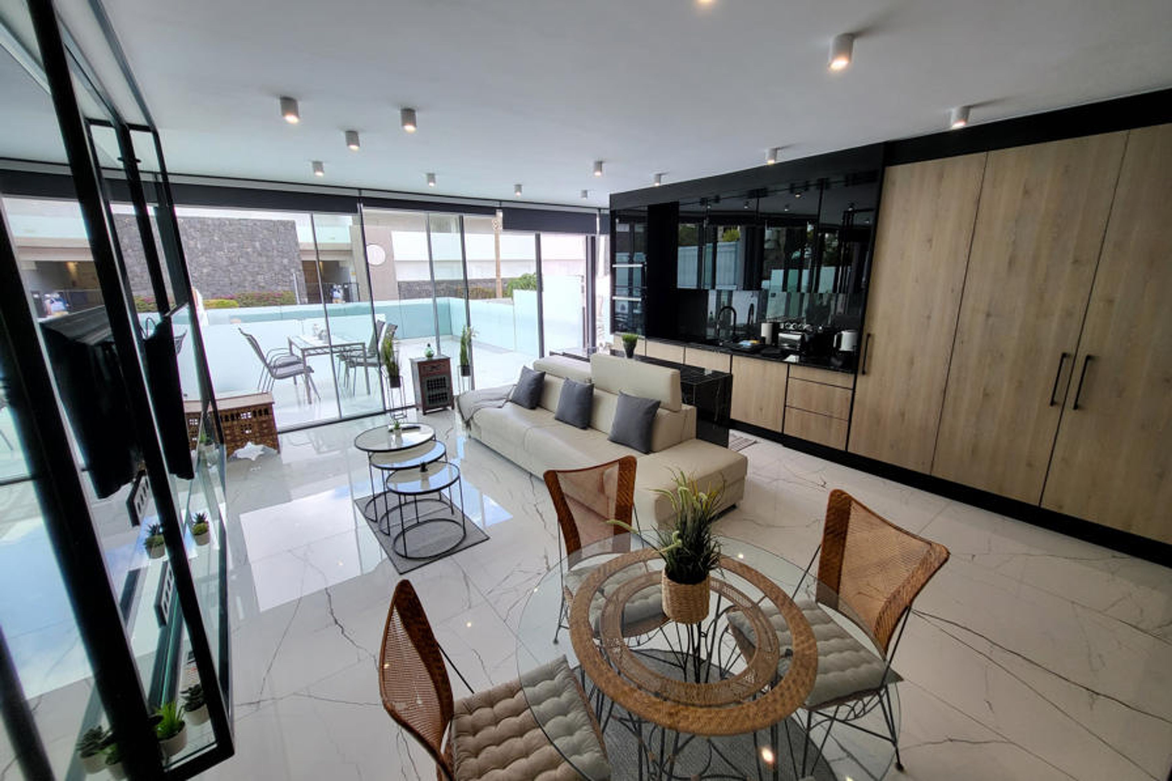 The property is located 1 m coffee shop "Cafe la Bahia", 650 m the restaurant "La NUB Restaurant", 800 m supermarket "Spar, Mar Bella Shopping Center", 1 km supermarket "HiperDino Express C.C. Duke", 1 km the restaurant "La Torre del Mirador", 1 km the restaurant "La Fuente del Mirador", 1 km the restaurant "Restaurante la Nonna", 1 km sand beach "Playa del Duque", 2 km rock beach "Playa de la Enramada", 2 km sand beach "Playa de Fanabe", 4 km supermarket "Lidl, Adeje", 4 km supermarket "Mercadona, CC X-Sur,", 4 km water park "Aqualand", 5 km golf course "Golf Costa Adeje", 5 km hospital "Quirónsalud Hospital Costa Adeje, Lugar Urbanizacion San Eugenio, s / n, 38660 Costa Adeje, Santa Cruz de Tenerife", 6 km bus station "ESTACIÃN COSTA ADEJE", 6 km water park "Siam Park", 7 km hospital "Hospital Universitario Hospiten Sur", 19 km airport "Aeropuerto de Tenerife Sur (TFS)", 42 km nature reserve "Parque National del Teide" and it is located in a a family-friendly zone and next to the sea.