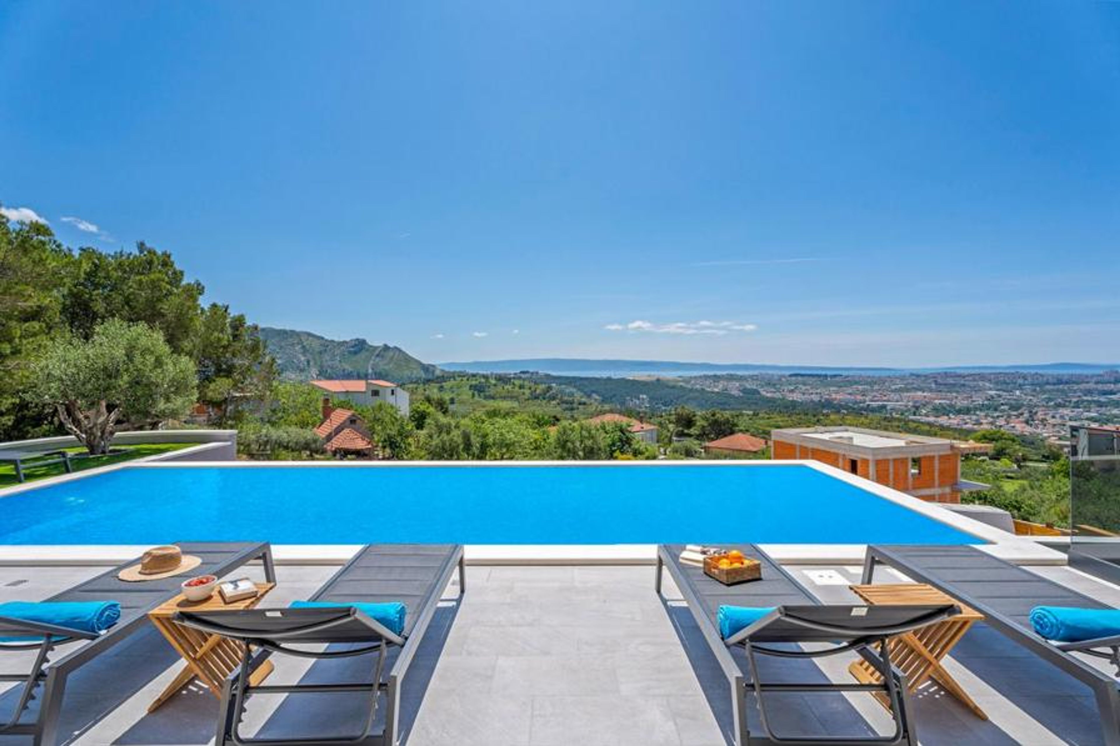Begin each morning with a refreshing dip in the villa’s private swimming pool before sipping a cup of coffee and unwinding on a sun lounger as you admire the breathtaking views of nearby Split and the Adriatic Sea. When evening comes, gather everyone to enjoy a delicious barbecue at Villa Flo’s covered outdoor dining area, complete with a modern summer kitchen, a Dalmatian grill and a flat-screen TV. The outdoor lounge on the first-floor balcony is the perfect place to take in the sunset as you enjoy a glass of excellent Croatian wine.