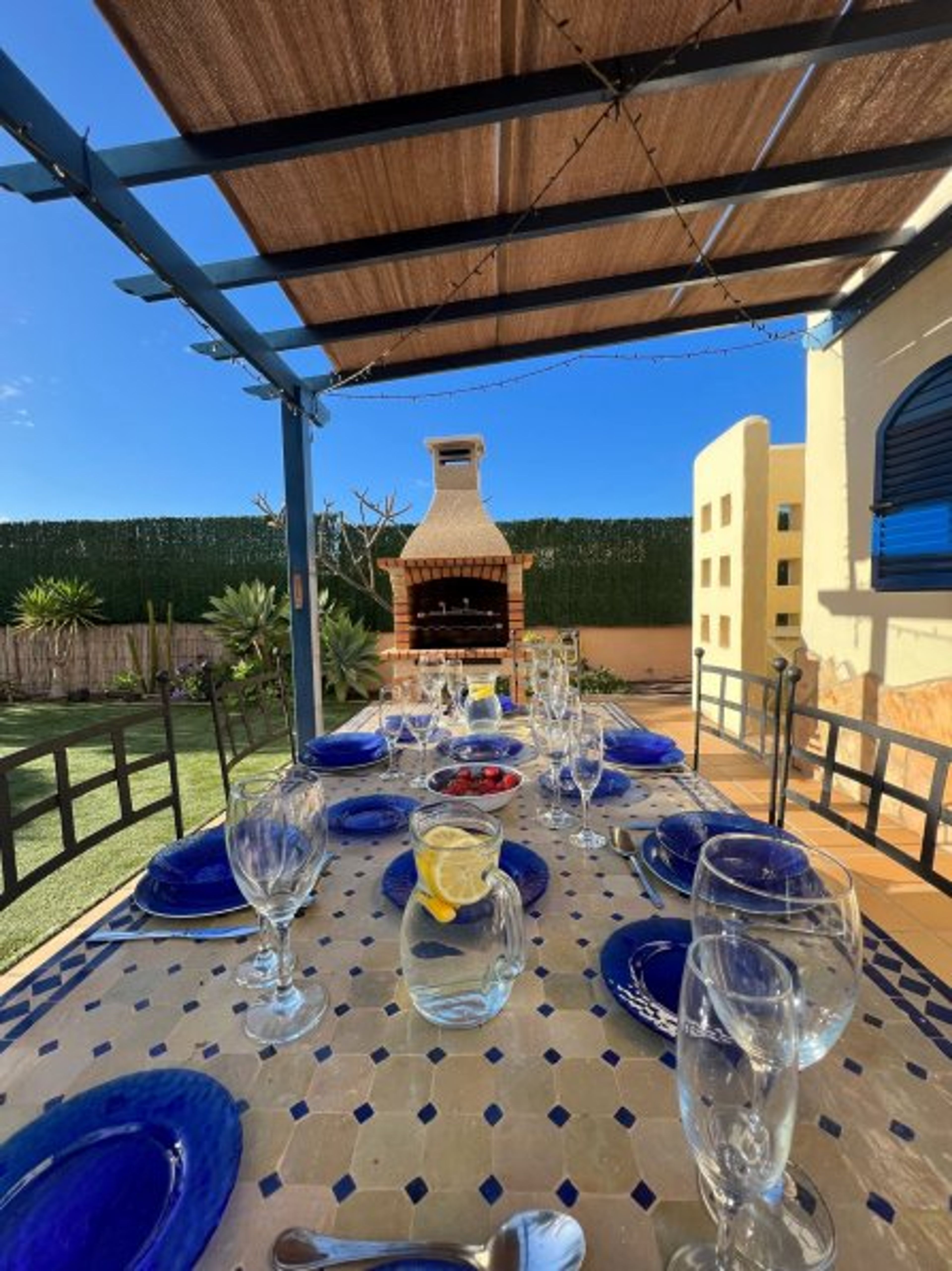 Built in Traditional Moroccan style this unique stylish detached villa sets standards that others can only follow, the property boasts spacious accommodation over 2 floors. Outside the villa boasts large private gardens with luscious plants and shrubs and a large soft synthetic lawn ideal for children and toddlers to play safely and have fun. The large mosaic tiled pool has steps with a handrail and is surrounded by a large private terrace with pool lights for evening entertaining and is heated (22/23 degrees) in the winter months at no extra cost.