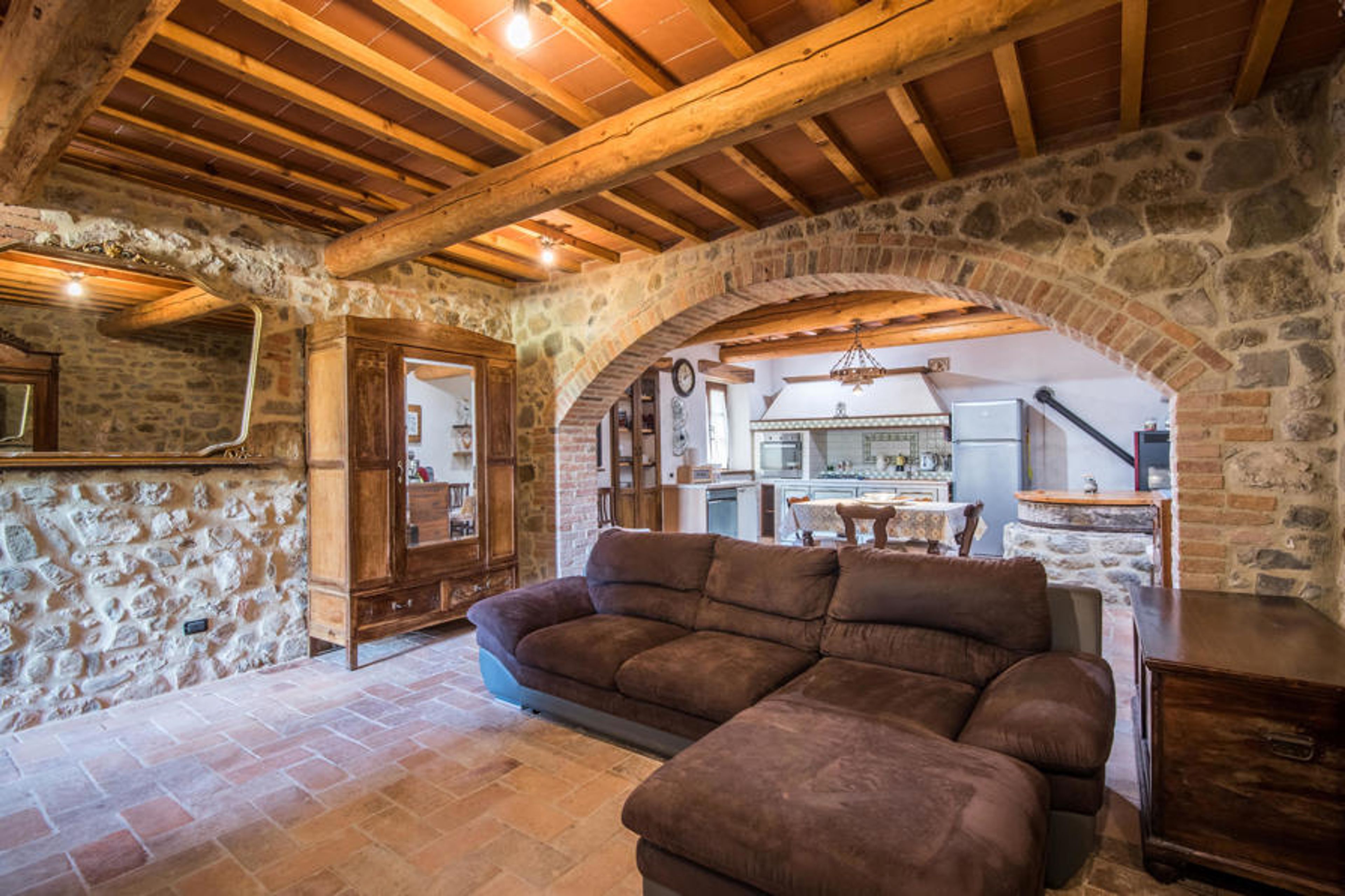 In the pastoral countryside between Siena and Livorno this charming vacation home welcomes you. Inside you can expect well-equipped rooms that make a rustic impression. Prepare your delicacies in the atmospheric kitchen and spend sociable evenings with your loved ones at the dining table. Look forward to carefree vacation days in an authentic atmosphere.