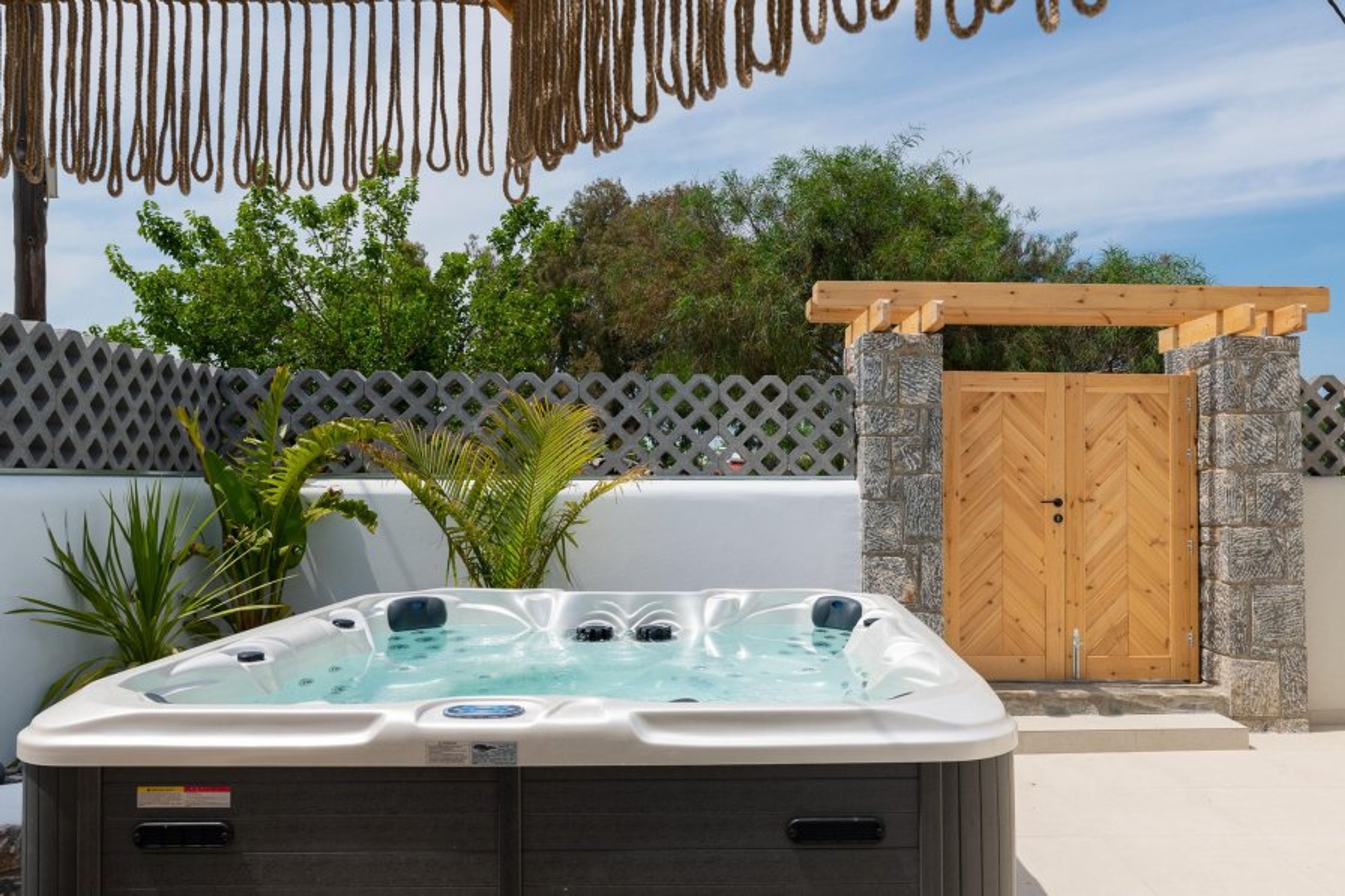 Aqua villa has 2 modern annex buildings with separate entrance for each one. The one building has 2 incredible bedrooms with double beds and a bathroom with a shower. Both bedrooms are fully airconditioned and have smart TVs. Also, there is a fully equipped kitchen and a living area. On the other annex building there is a comfortable bedroom with a double bed that is airconditioned and has a smart TV. Also, this annex as well has a kitchen and a living area. Also there is a bathroom with a shower. There is free WIFI access throughout the property. Outdoors, is as beautiful as the inside. There’s an incredible private swimming pool as well as an amazing heated jacuzzi. Also, there are outdoor furniture and BBQ facilities where you can prepare a tasty meal and enjoy a gathering with your loved ones. Choose Aqua Villa Faliraki for an unforgettable holiday experience, where comfort, luxury, and convenience seamlessly blend together.