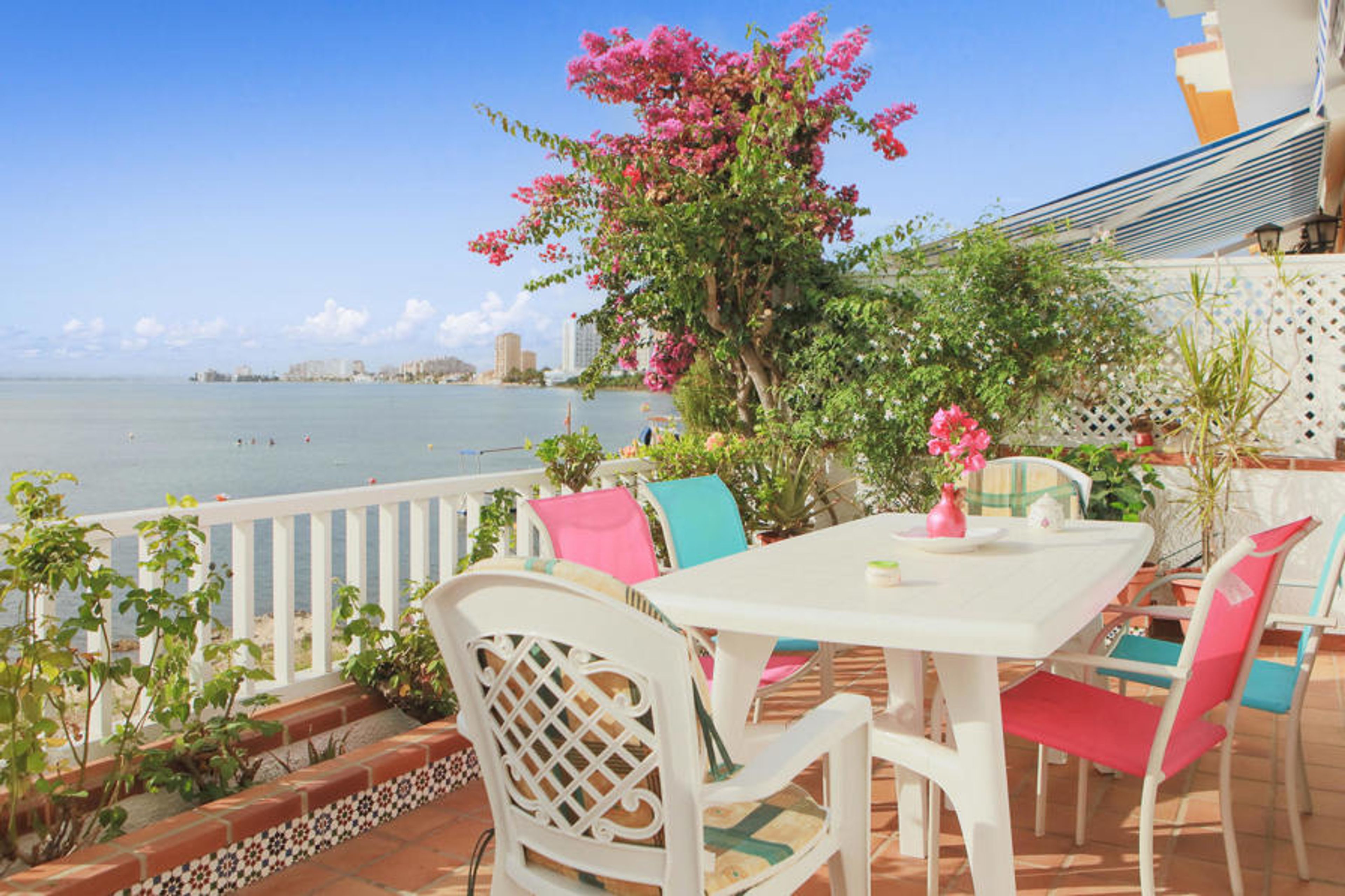 Welcome to this colourful and inviting terraced house in La Manga del Mar Menor. You couldn't wish for a better location, as your home is right next to the beach promenade. Enjoy socialising on the two floors of the house, where you can relax, play together and enjoy the view from the balcony or terrace. If you prefer the pool to the sea, you will find a great communal pool in a fantastic location.