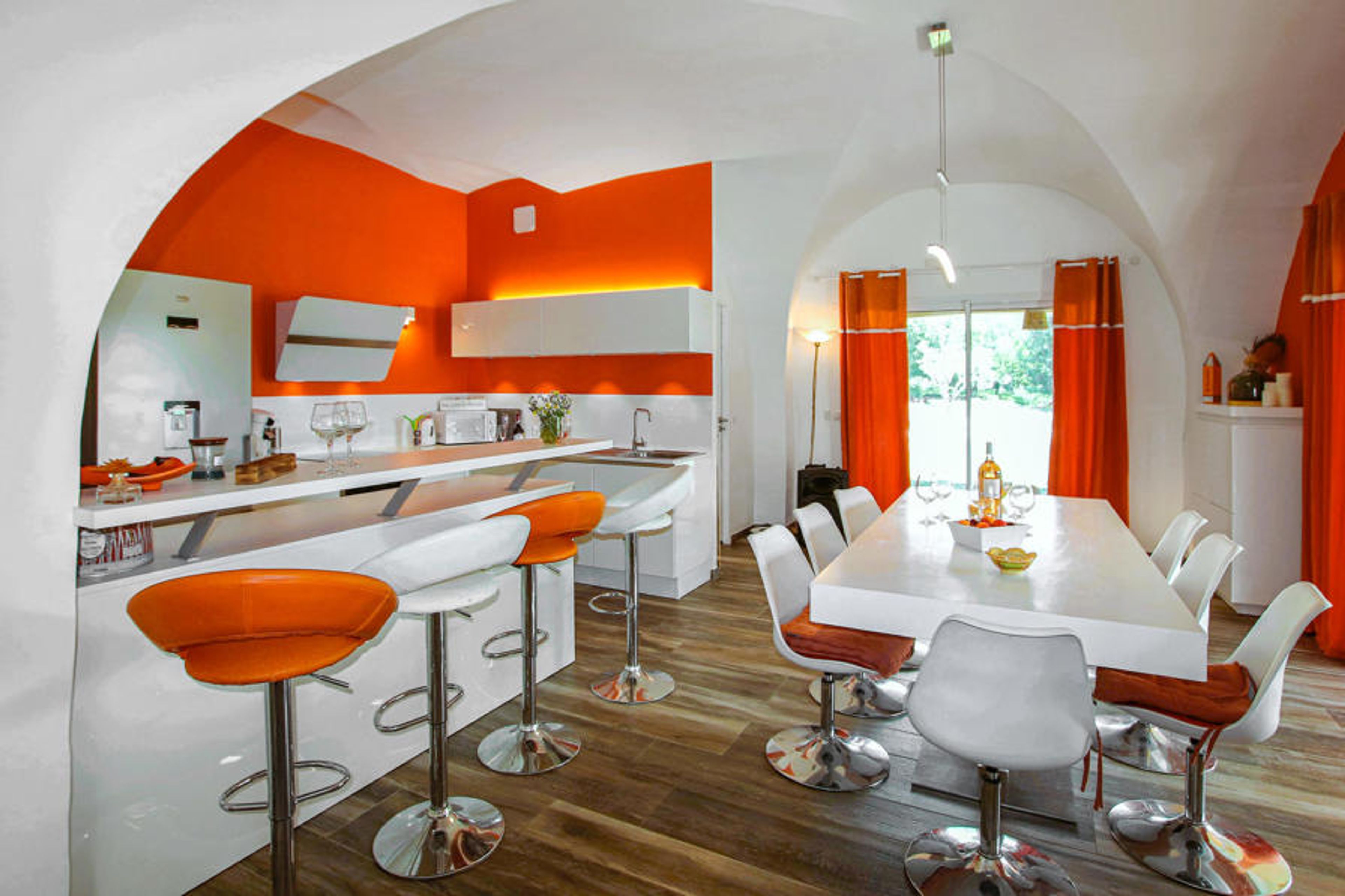 Enjoy your meals on the spacious, charming and sunny front yard or on the shaded terrace. Nestled in a green, romantic park, you can refresh yourself in the out-of-sight swimming pool on warm summer evenings and spend long hours together grilling outdoors under the many romantic lights of the terraces and boules court.
