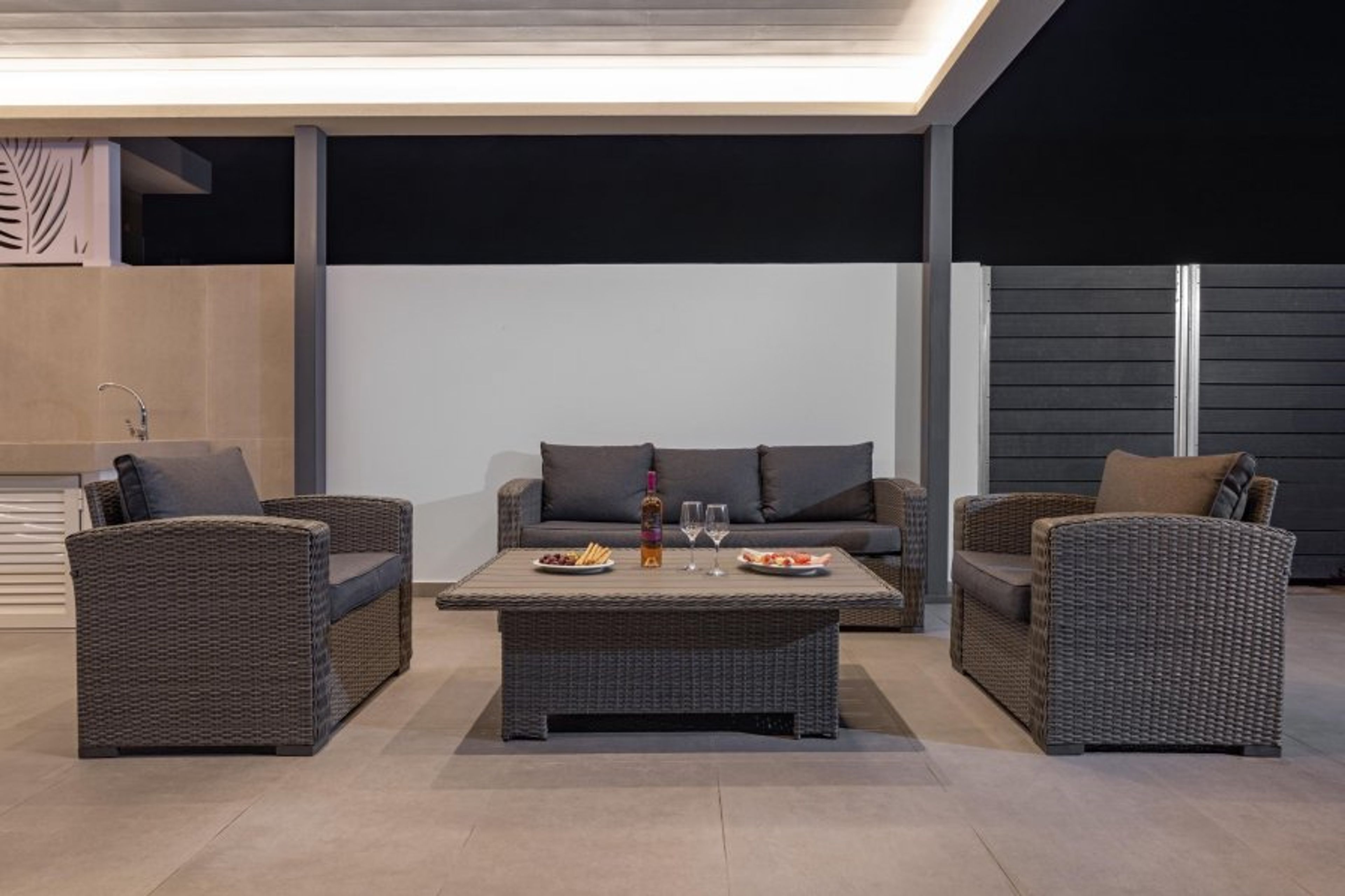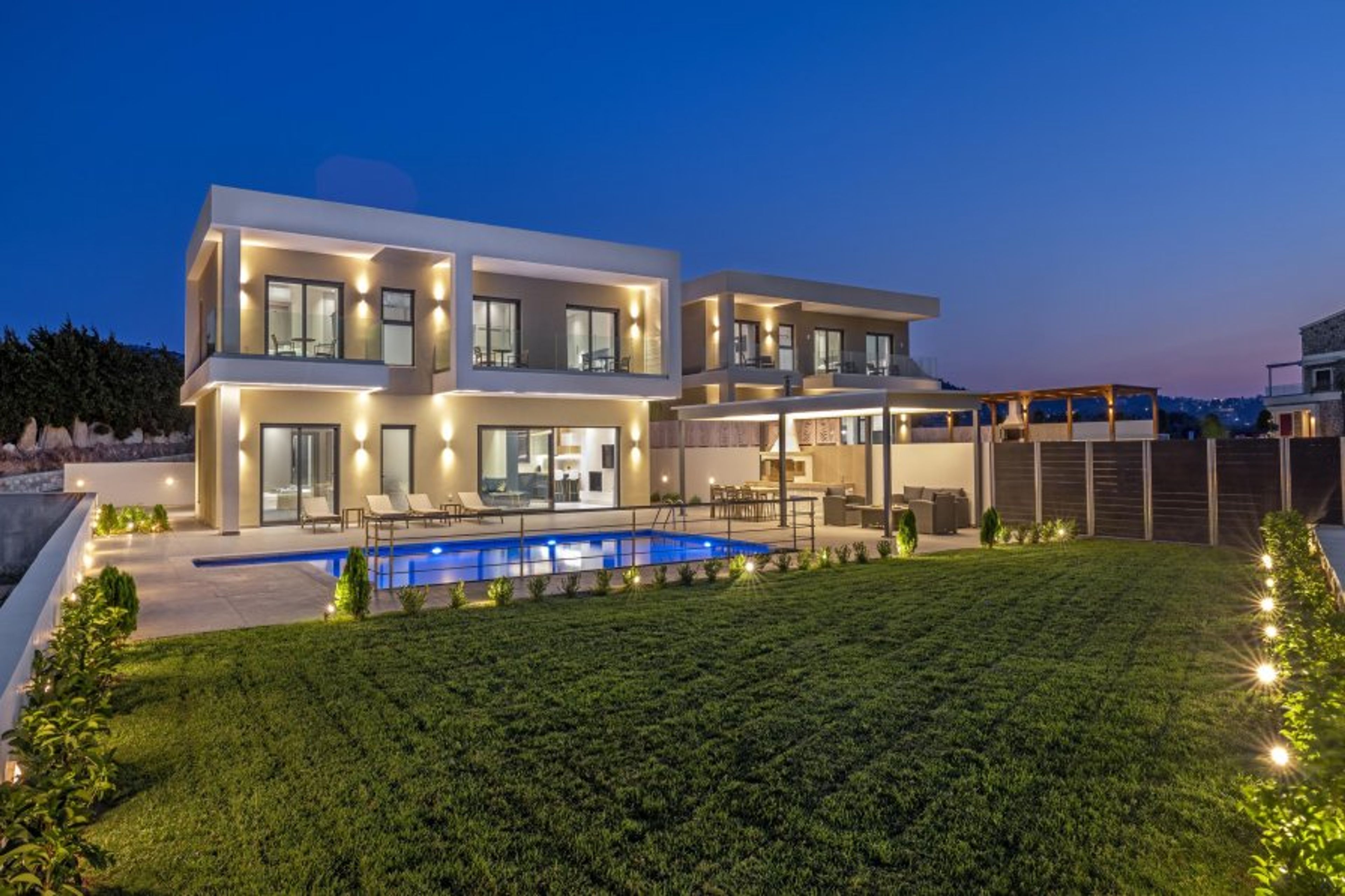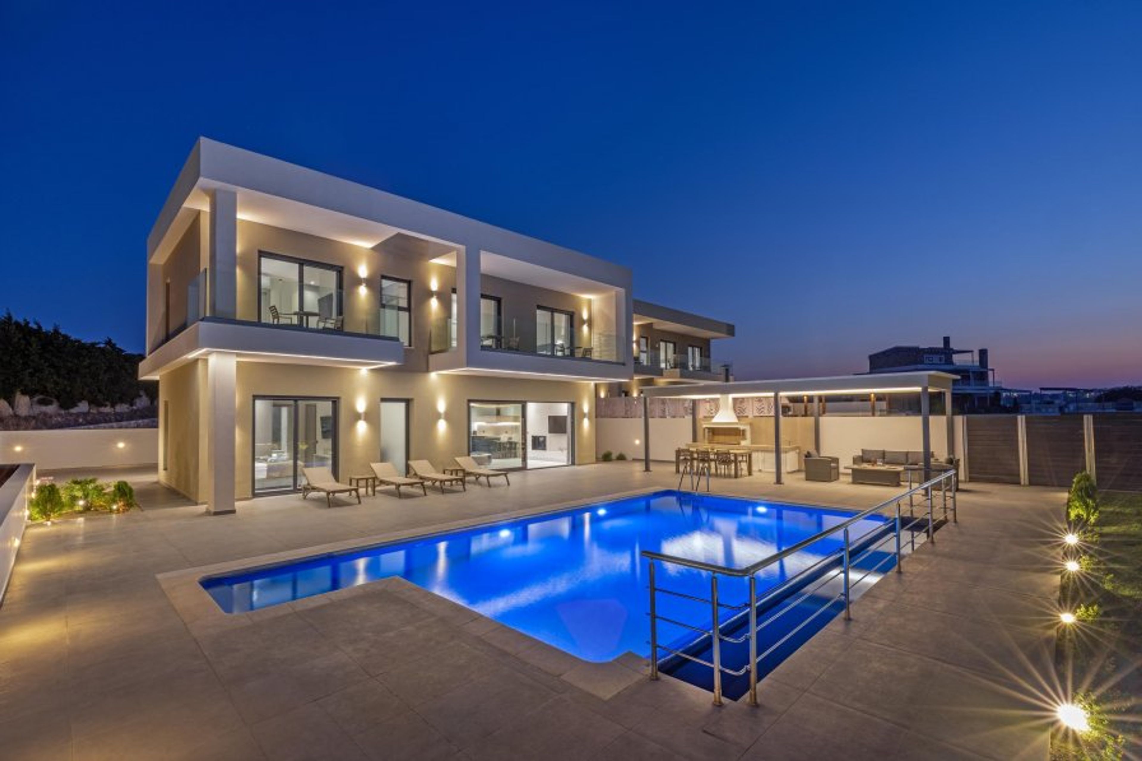 This magnificent villa features large interior spaces with peaceful design, as well as exceptional outdoor spaces with lots of amenities. The villa has 4 fully air-conditioned bedrooms, 2 of the with double beds and 2 of them with twin beds. There are 4 stylish bathrooms, 3 of them with a shower and one with a bathtub. Also, there’s a wc. There are is an open plan fully equipped kitchen, suitable for any meal preparation, accompanied from the living room and the dining area. The incredible interior aesthetic will immediately give you peace. There are many amenities and features such as the smart TV. Also, there’s free Wi-Fi access throughout the property. Outdoors, the villa is equally impressive as indoors. The magnificent pool area is equipped with sun beds, creating the perfect setting for a relaxed time under the golden rays of the Rhodian sun. The villa offers a pergola with an incredible BBQ installation with a seating area where guests can enjoy a truly unique outdoor gathering. Also, there’s a table tennis for endless fun moments.