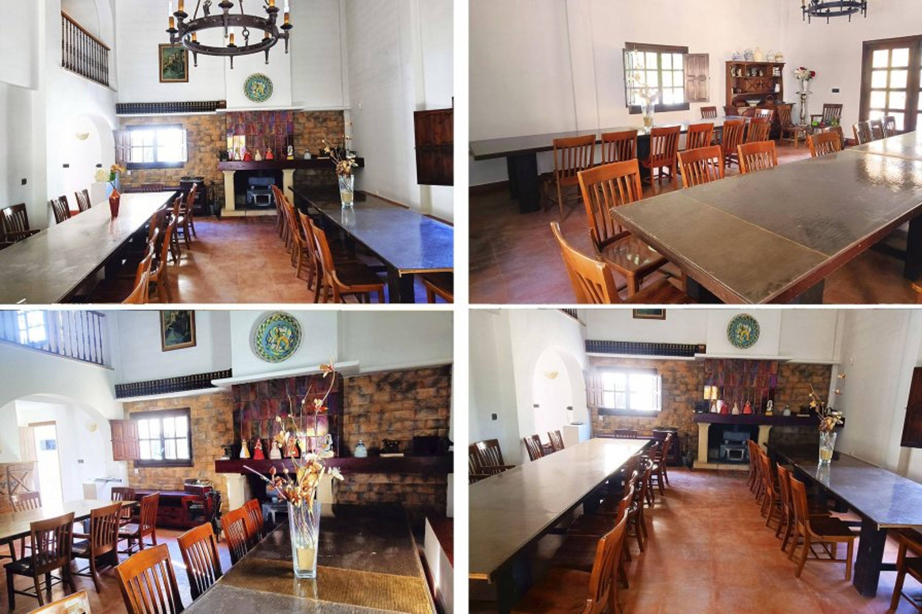 1,100m2, for large groups, weekends, holidays, suitable for family vacations, bachelorette parties, business celebrations, retreats, family reunions. Great 80m2 pool, covered barbecue with dining room, fridge, freezers, sinks and wooden tables, Mediterranean garden, chillout furniture in the garden, tables on the porch and sun loungers, chillout beds, giant table football, 2 pingpong tables. Parking for about 20 vehicles. Main room of 50m2 in which there are 6 sofas, bar cabinet, armchairs, flat TV, dining room with fireplace, Jaima for meditation and relaxation in the garden